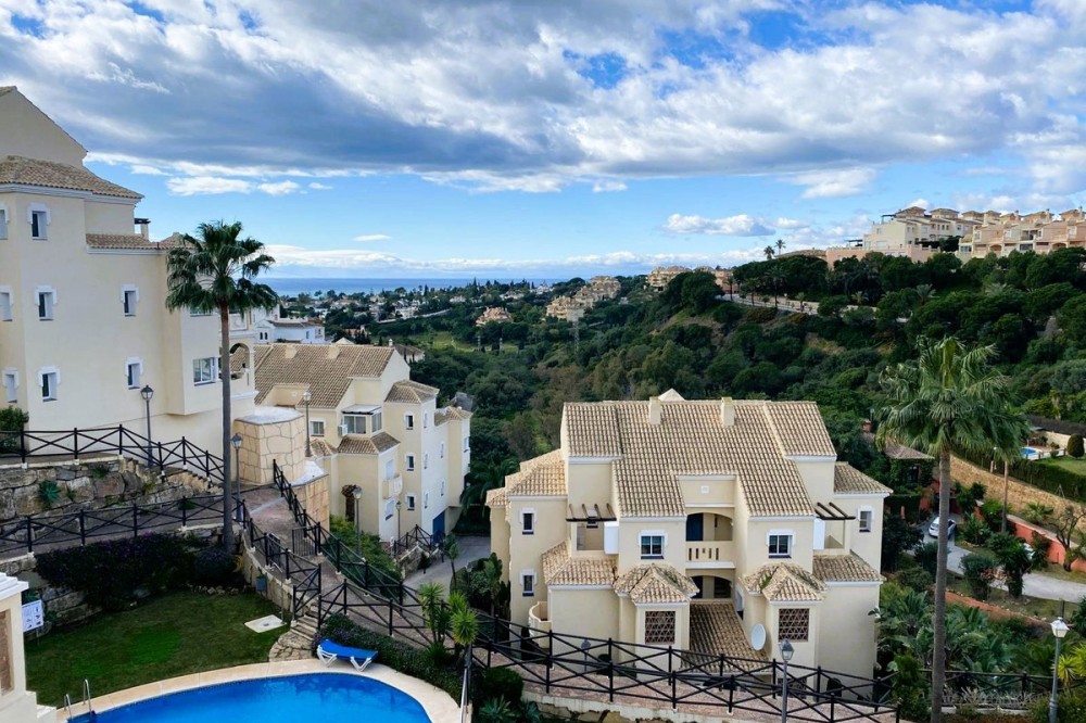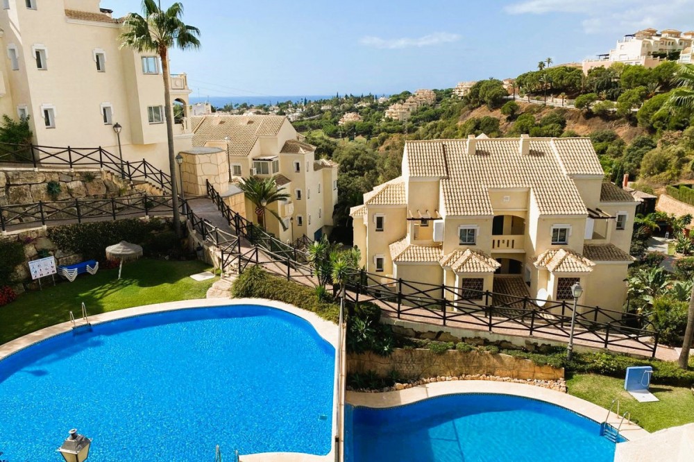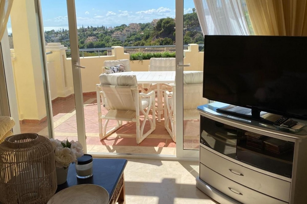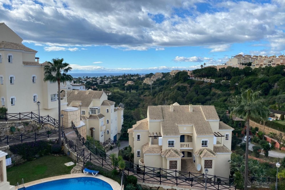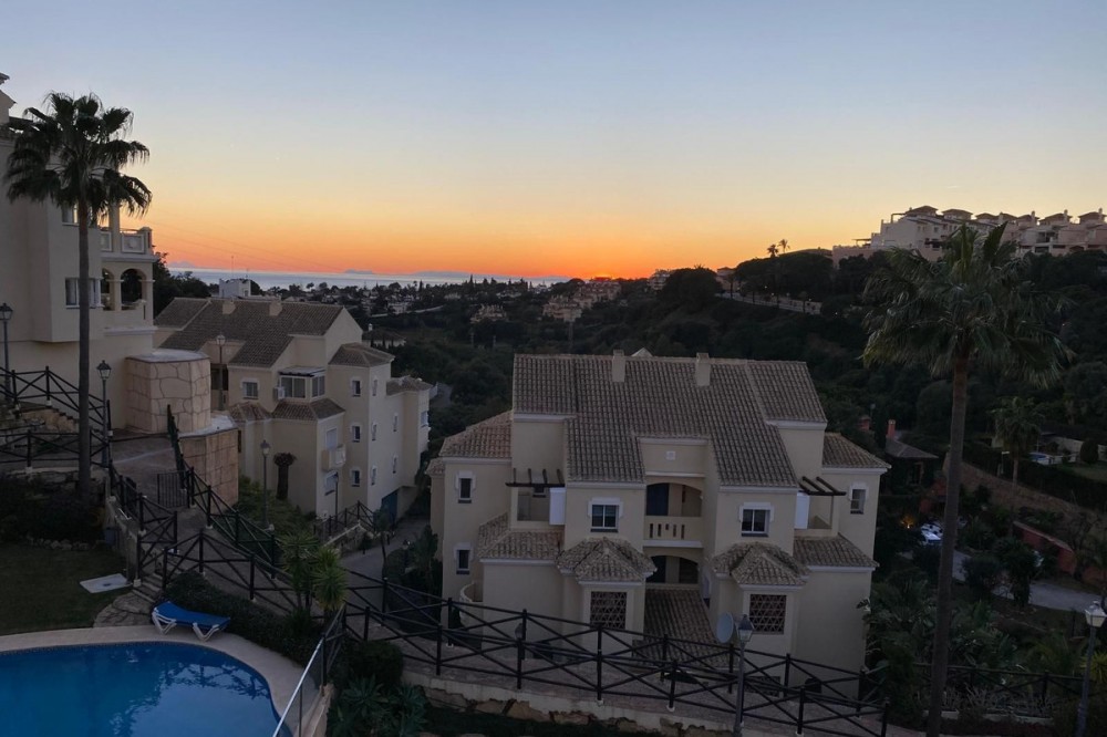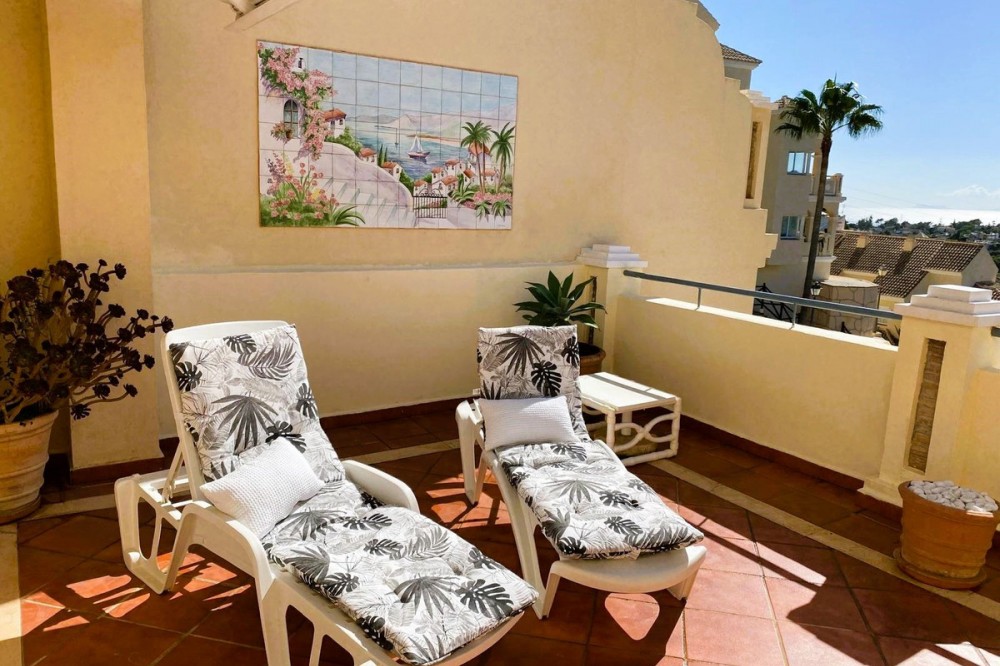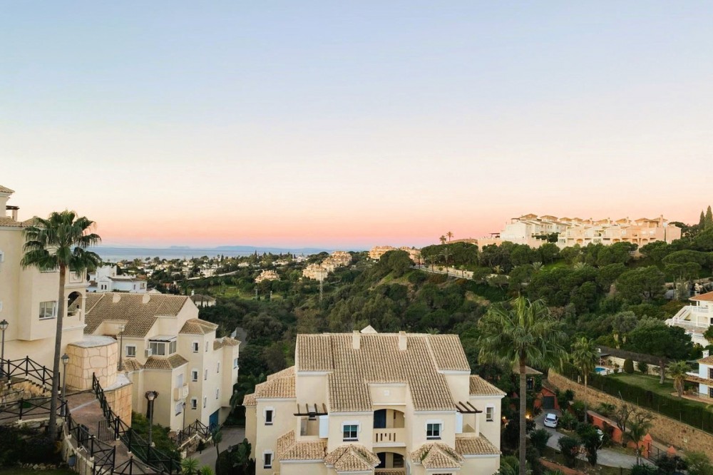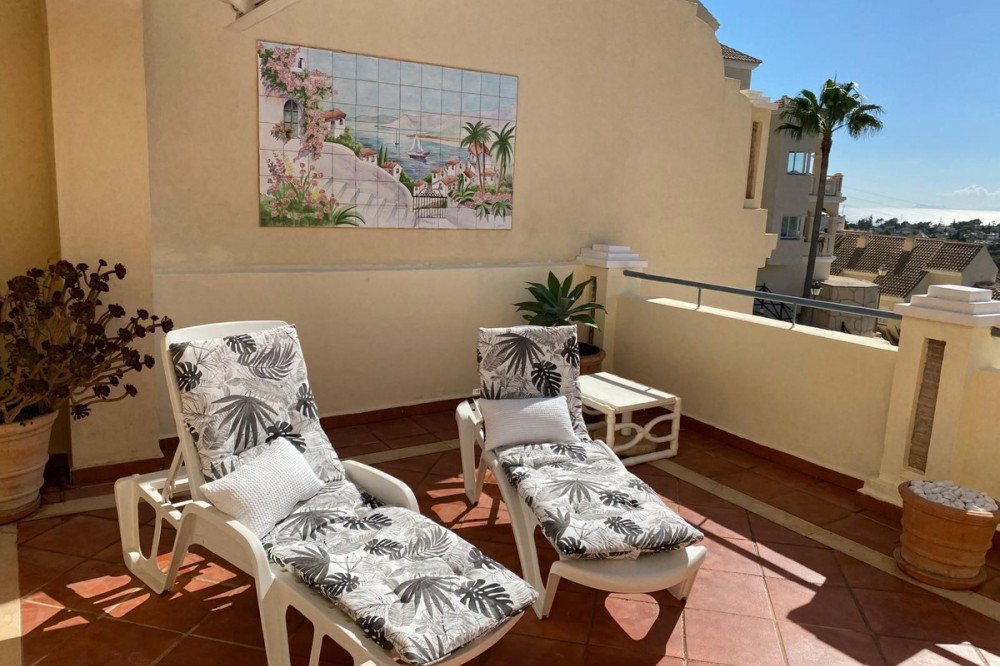 - Beautiful duplex penthouse in the upper part of Elviria, the most desirable area of Marbella East. Gated community with 24/7 security cameras. Well-maintained tropical gardens. Two swimming pools, one for children and the other infinity pool. It has an elevator, and the private underground parking provides direct access to the penthouse. This penthouse is distributed over two levels. On the lower level, there is a spacious living-dining room with a fireplace and a fully equipped kitchen, with direct access to a large terrace with sea and mountain views. Upstairs, there are two bedrooms and two en-suite bathrooms. With a terrace and sea views, the house is sold with a private parking space and a storage room. We are a 4-minute drive from the commercial center of Elviria, restaurants, and bars. We are five minutes from the 10-km-long dune beach. 40 minutes from Malaga Airport. 10 minutes from the center of Marbella. 5 minutes from the shopping center, with its Cerrefour supermarket, restaurants, and bars. Nikki Beach and the Don Carlos Hotel are five minutes away. It's an ideal choice for investing on the Costa del Sol and making this part of Marbella your second home.