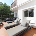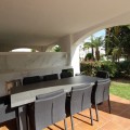- We are delighted to offer for sale this stunning newly listed corner garden apartment in the exclusive and first line development Las Adelfas on San Pedro Alcantara. The property has been totally renovated to the highest level using only the finest materials and boast 4 bedrooms, 3 luxury bathrooms, spacious lounge dining area with state of the art open plan kitchen with breakfast bar, marble tiled flooring throughout, air conditioning hot and cold, new double glazed windows with electric security shutters, spacious terraces that surround the apartment with built in marble bar area including fridges and wine coolers for the ultimate entertaining. The terraces are very private with beautiful hedging and lead to the communal gardens and pool areas which are meticulously maintained for your relaxation and enjoyment. The development is gated with 24 hour security, first line to the wonderful beaches and mediterranean sea where you will find many top quality restaurants and bars to relax with family and friends. The apartment also enjoys a secure underground parking space with storage room and direct lift access to the property. If you are searching for the ultimate apartment in the best location then we can highly recommend viewing this amazing home as you will not be disappointed.