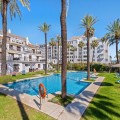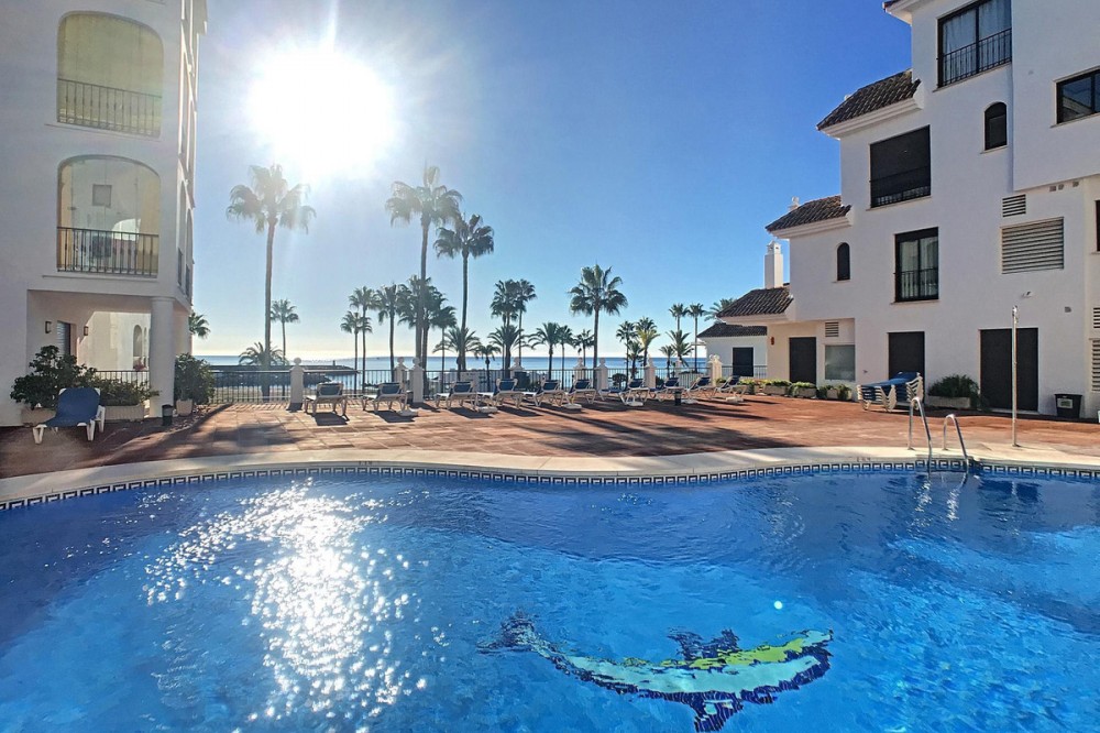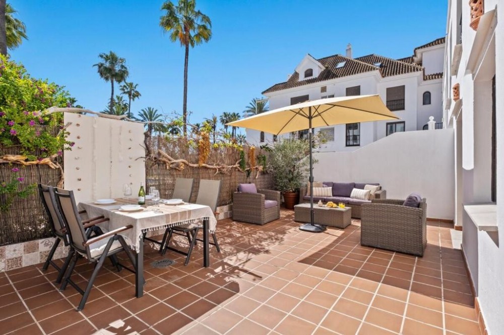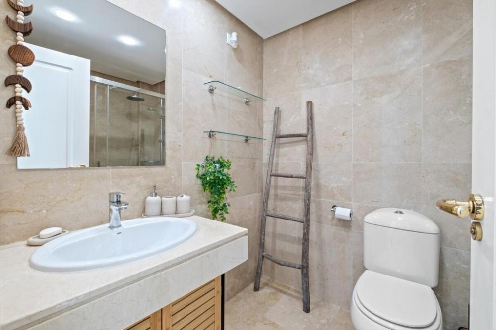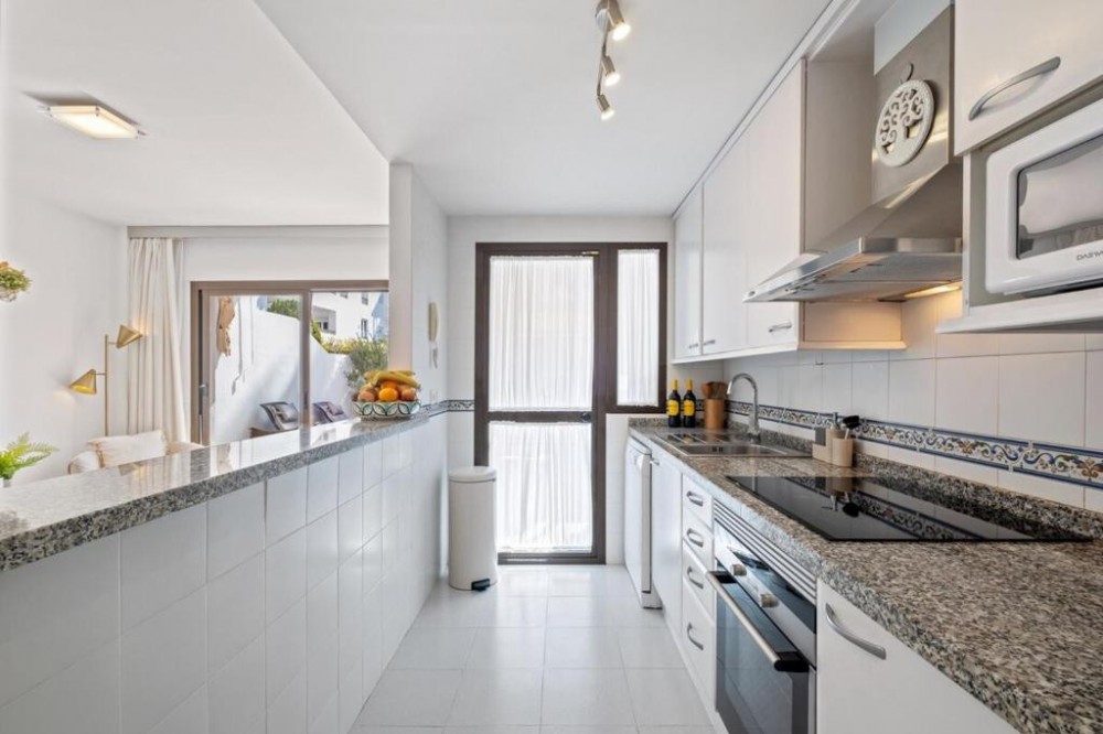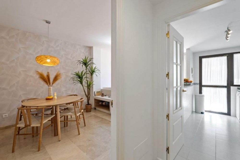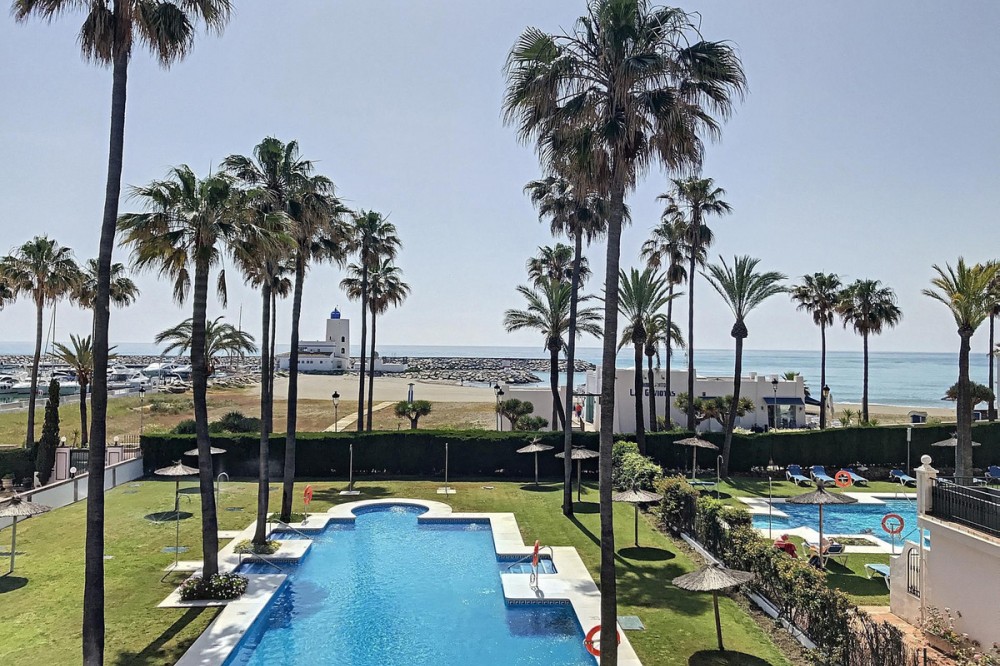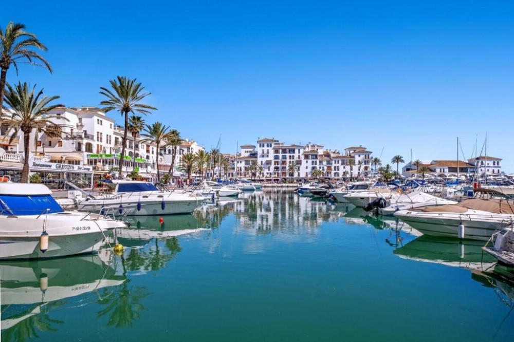 - This frontline port apartment stands out for its complete renovation, modern comfort, and unique location. The interior features two spacious bedrooms, two fully equipped bathrooms, a functional kitchen with adjoining laundry area, as well as a bright living room that opens onto a large terrace. This terrace, remarkable for its size, provides a true outdoor living space, ideal for dining, relaxing, or entertaining guests. Although located on the seafront, the surrounding greenery preserves a private and tranquil atmosphere, adding freshness and peace. The apartment also comes with reversible air conditioning and an underground parking space, particularly valuable within the residence. The gated complex, with 24-hour security, offers two large swimming pools and direct access to the beach, perfect for enjoying the Mediterranean climate all year round. Located directly in Puerto de la Duquesa, you benefit from immediate proximity to restaurants, bars, and shops. Estepona is just ten minutes away by car, Sotogrande five minutes, as well as La Duquesa Golf Course. An exclusive property that combines modernity, comfort, and a privileged setting in one of the most sought-after marinas on the Costa del Sol.