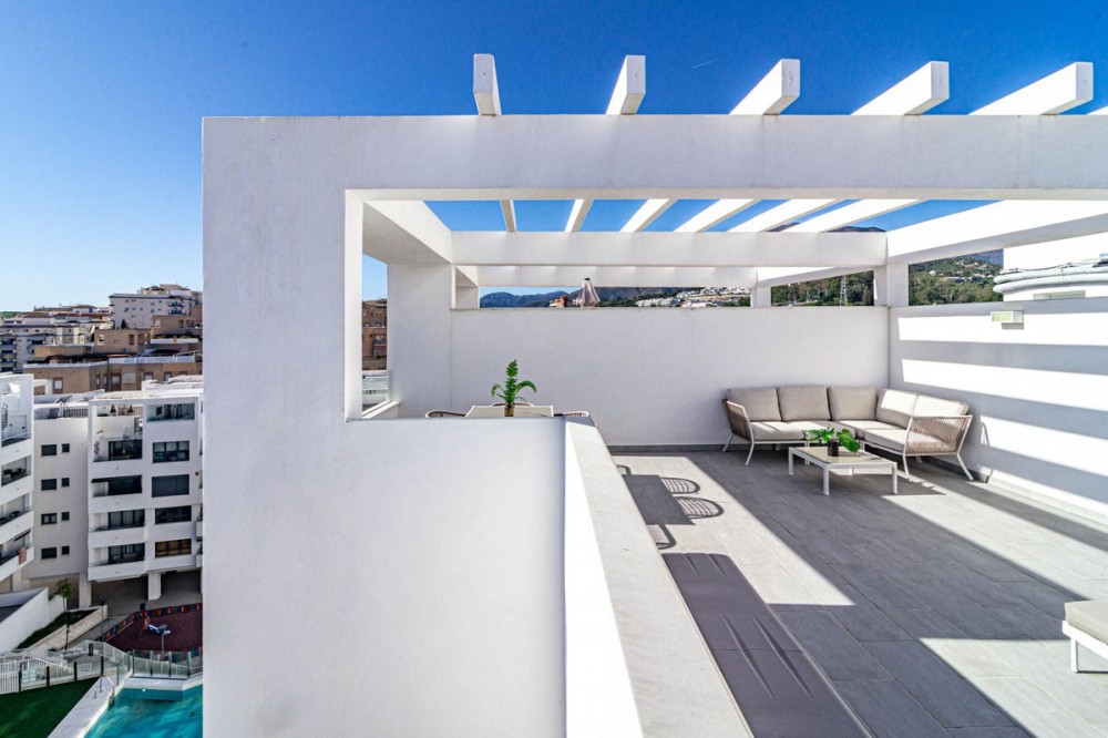 - Welcome to this penthouse in Estepona Gardens, a modern residential complex completed in 2023 and located right in Estepona center. From here, you can easily walk to the Old Town, shops, restaurants, and the beach, everything you need is just a short stroll away. Despite the convenience of a private garage space and storage room, you’ll find that daily life here can be comfortably car-free. Supermarkets and cafés are only a couple of minutes away, the charming Old Town is about an 8-minute walk, the beach around 12 minutes, and Estepona’s marina just a bit further. The area is lively all year round, with many full-time residents ensuring that shops and restaurants stay open even outside the summer months. The penthouse enjoys pleasant views over the surroundings, giving it a bright and open feel. Estepona itself is known for its authentic Andalusian charm, with flower-lined pedestrian streets, reduced traffic in the center, and an inviting promenade along the beach that encourages walking and outdoor living. It’s a family-friendly town with several playgrounds close to the sea and an Old Town that has been beautifully restored. Estepona Gardens was developed by one of Spain’s largest builders and offers excellent communal facilities, including a swimming pool and a children’s play area. The apartment is ideal both as a permanent home or as a lock-up-and-leave holiday property, thanks to its central location, easy maintenance, and an active, valid tourist license. Inside, you’ll find a separate kitchen and an adjoining utility room with a washing machine and water heater. The bedrooms feature built-in wardrobes, and the interiors are finished with light, high-quality materials. Perfect for the one seeking an modern easy maintained apartment in the centre.
