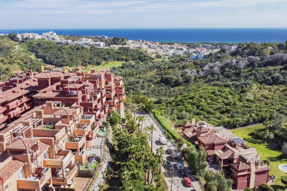 - Refurbished Penthouse near Marbella with panoramic views and 24hr Security Discover the allure of elevated living in this exceptional penthouse, ideally located close to Marbella (15 min drive to towncenter). Offering open views from lower terrace and upper terrace and the peace of mind of 24-hour security, this property is a haven of tranquility.. The apartment has an new open kitchen and perfectly refurbished bathroms and orientated to the west with extra solarium on upper level of 55 m2. As it is a penthouse it boasts with light. The aircondition is individual for each room! It consists of two levels: Lower level: Bright living area, with access to the lower terrace with beautiful open views to the mountains and the urbanisation, open new kitchen, 2 bedrooms and 2 bathrooms one of them ensuite. Upper level: access through a staircase on the terrace to a huge solarium- ample sitting area and space for sunbeds- you could use it as well as barbecue area. On the upper solarium space its possible to close a certain space with glass curtains to add another closed area. The apartment has 113 m2 plus aprox. 71 m2 terraces and comes with a garage (16 m2) and a storage (8 m2) ! The compound offers several pools- you can use all of them- further one restaurant on site! The walking distance to a bus station and the next supermarket is aprox.15 min walking distance. Imagine soaking in the stunning vistas from your expansive terraces, perfect for al fresco dining, entertaining, or simply unwinding while enjoying the Mediterranean sunshine. While enjoying a sense of serenity, you'll be within easy reach of Marbella's vibrant atmosphere, including its renowned beaches, upscale boutiques, exquisite restaurants, and lively nightlife.