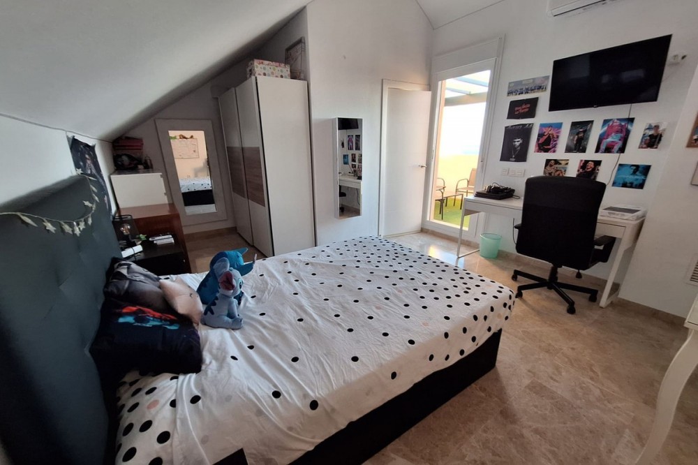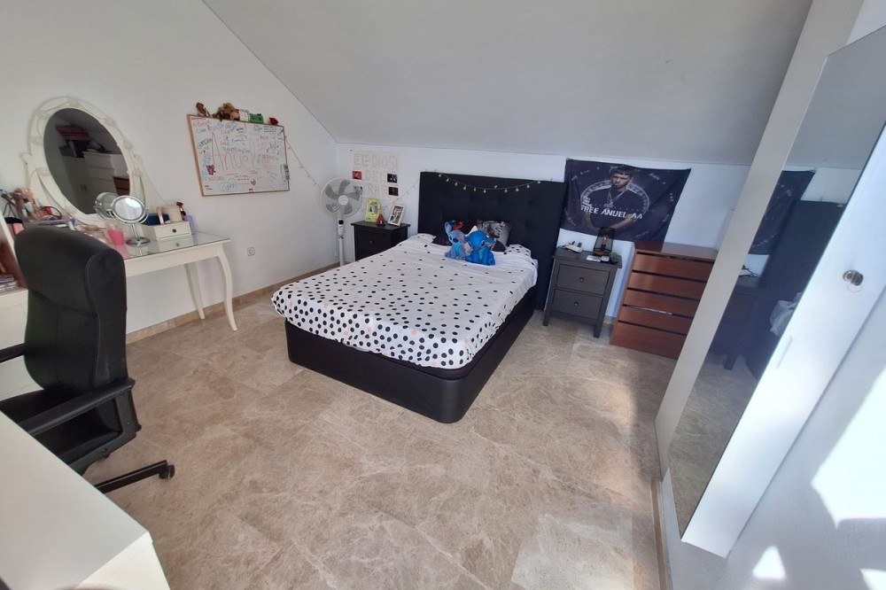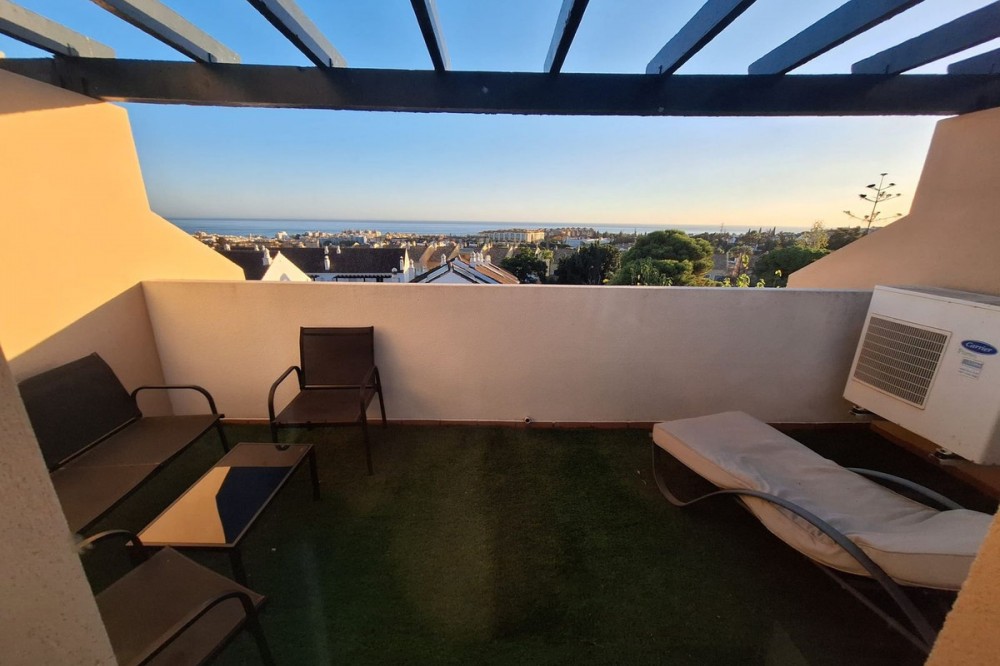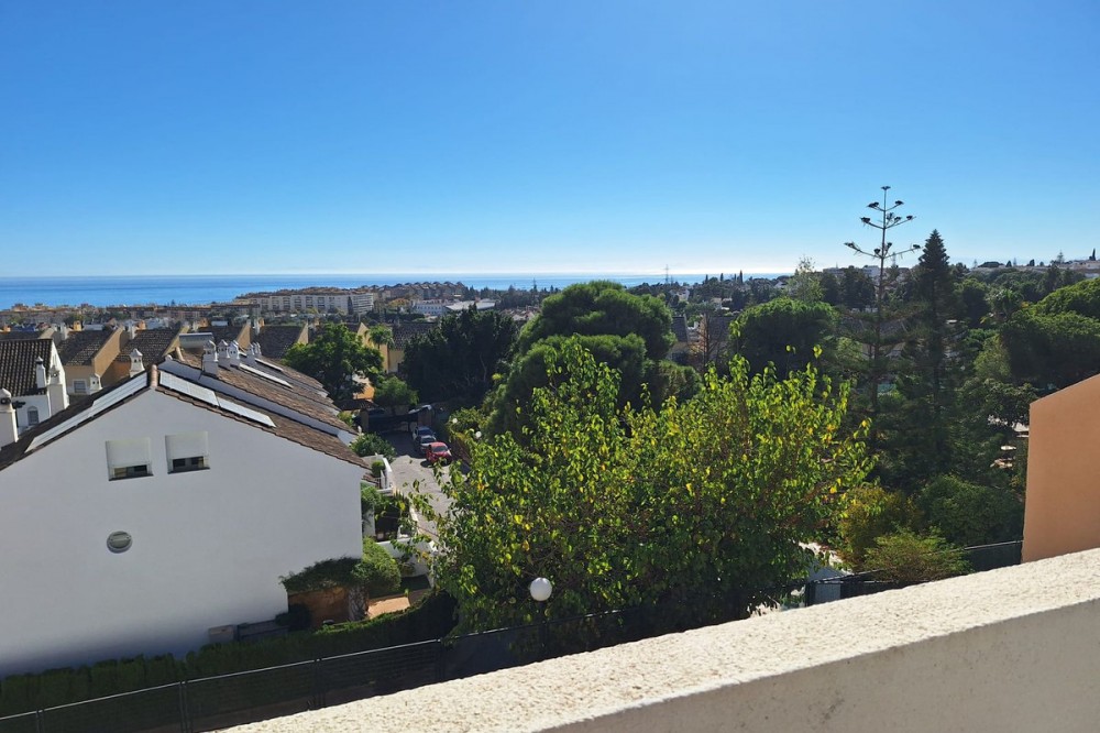 - Discover unparalleled coastal serenity in this magnificent semi-detached townhouse within the prestigious Sierramar III urbanisation, a secure gated enclave in Marbella's exclusive Huerta del Prado-La Montúa district, nestled against the foothills of the iconic La Concha mountain on the renowned Costa del Sol. This family-friendly haven—boasting lush communal gardens, two sparkling swimming pools (one for adults, one for children), a paddle tennis court, and 24-hour security—offers the perfect fusion of tranquillity and convenience. Just a short stroll from local amenities like pharmacies, bars, restaurants, and schools, it's a mere 600 metres from the city bus station with direct links to Málaga Airport, and only 5-10 minutes' drive from Marbella's vibrant centre, golden beaches, and the glamour of Puerto Banús. Embrace the microclimate of over 300 sunny days a year, with easy access to hiking trails, international schools, and world-class golf courses. Spanning four expansive levels across 208 m² of built space—including a versatile 64 m² basement/garage—this south-facing gem floods with natural light, delivering breathtaking, unobstructed sea views from every vantage. The ground floor welcomes with a cosy living-dining room anchored by a charming fireplace, flowing seamlessly to a private rear garden ideal for barbecues or lazy afternoons. A fully equipped kitchen and guest cloakroom complete this level's everyday elegance. Upstairs, four generous bedrooms (one with en-suite) offer fitted wardrobes and serene retreats, served by two full bathrooms and a versatile third. The crowning attic level unveils a delightful 17 m² rooftop terrace, a sun-drenched solarium perfect for al fresco dining or stargazing over the Mediterranean horizon, complemented by a balcony for added outdoor charm. Enhanced by air conditioning throughout, included garage parking, and meticulously maintained communal grounds, this quiet idyll is tailor-made for discerning families seeking a peaceful lifestyle without sacrificing Marbella's luxuries. A rare opportunity in a sought-after market—enquire today to claim your slice of paradise.