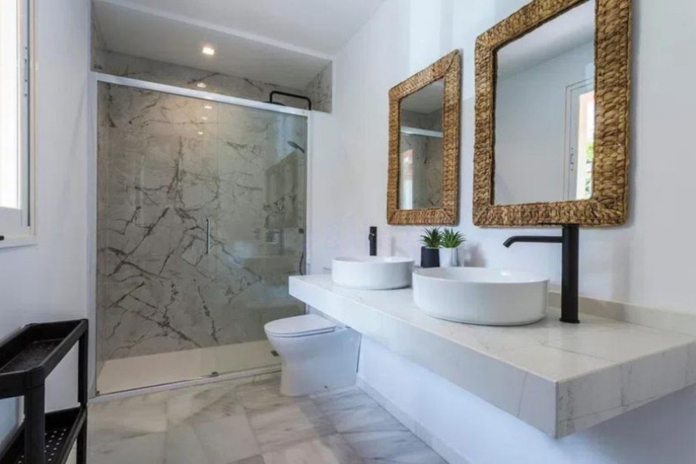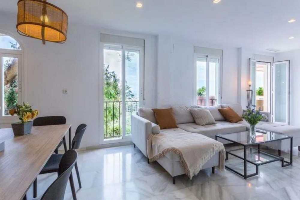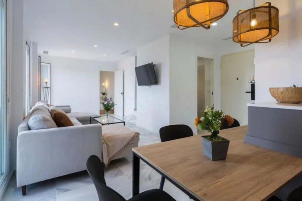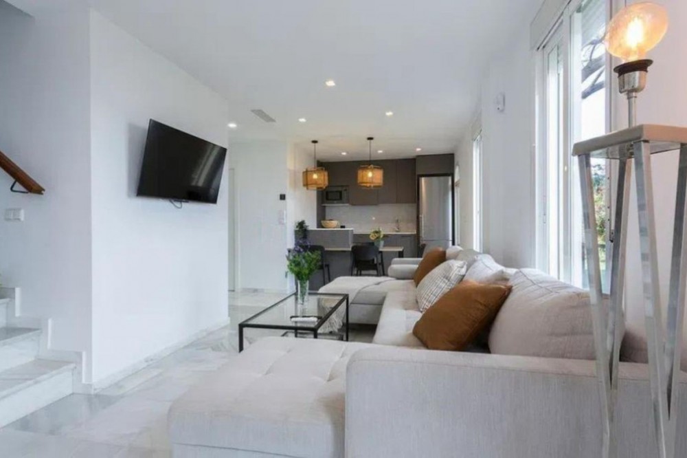 - Spectacular duplex for sale in the Las Brisas Urbanization, Manilva. Completely renovated designer home, ready to move in. It has 3 spacious bedrooms, 2 bathrooms, and a large terrace with stunning views of the golf course and the sea. In addition, it has a tourist license, ideal if you are looking to invest and make it profitable during vacation seasons. The urbanization offers a communal pool and a quiet environment perfect for enjoying the climate of the Costa del Sol. Ground Floor Apartment, Manilva, Costa del Sol. 3 Bedrooms, 2 Bathrooms, Built 100 m², Terrace 25 m². Setting : Urbanisation. Orientation : South. Condition : Excellent, Recently Renovated, Recently Refurbished. Pool : Communal, Children`s Pool. Climate Control : Air Conditioning, Hot A/C, Cold A/C, Fireplace. Views : Sea, Golf, Panoramic. Features : Covered Terrace, Fitted Wardrobes, Private Terrace, WiFi, Ensuite Bathroom, Access for people with reduced mobility, Double Glazing, Fiber Optic. Furniture : Fully Furnished. Kitchen : Fully Fitted. Garden : Communal. Security : Gated Complex. Parking : More Than One, Communal. Category : Resale.