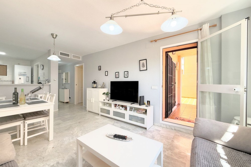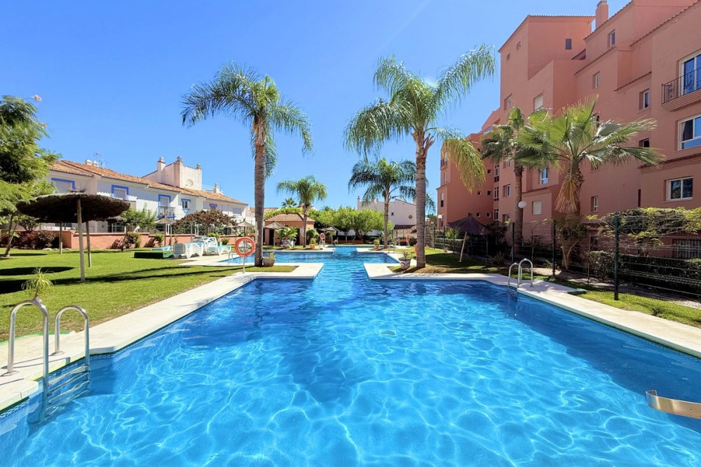 - Beautiful Apartment with Spacious Terrace and Private Patio in La Duquesa With a privileged location just 400 meters from the beach and surrounded by everything you need for day-to-day living. Supermarkets, restaurants, a gym, and services are just steps away, while in only 3 minutes by car you can enjoy the charming marina of La Duquesa and in 5 minutes the prestigious Sotogrande port, both perfect for strolling by the sea and experiencing the unique atmosphere of the Costa del Sol. A location that combines peace and quiet with the convenience of having everything close at hand. This bright and welcoming ground-floor property offers a large terrace alongside a generous private patio with a barbecue area—perfect for enjoying pleasant evenings outdoors all year round, thanks to the area’s exceptional microclimate. Facing south, it receives abundant natural light, creating a warm and comfortable atmosphere. It features two bedrooms and two bathrooms, stylishly presented and in excellent condition, ready to move into or enjoy as a holiday home. The charming residential complex, full of potential, is a small oasis of relaxation with a spectacular communal pool, beautifully maintained gardens, and a children’s play area. In addition, the property has a valid tourist license and an excellent rating on vacation rental platforms, making it an attractive option both for those seeking a second home and for those wishing to continue with a profitable investment. Don’t miss the opportunity to visit and discover for yourself all the advantages that make this a unique choice on the Costa del Sol.