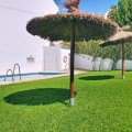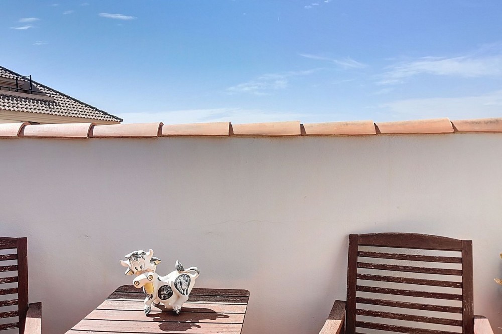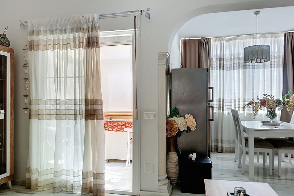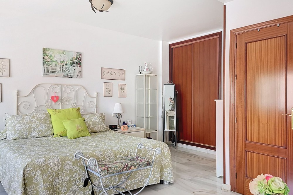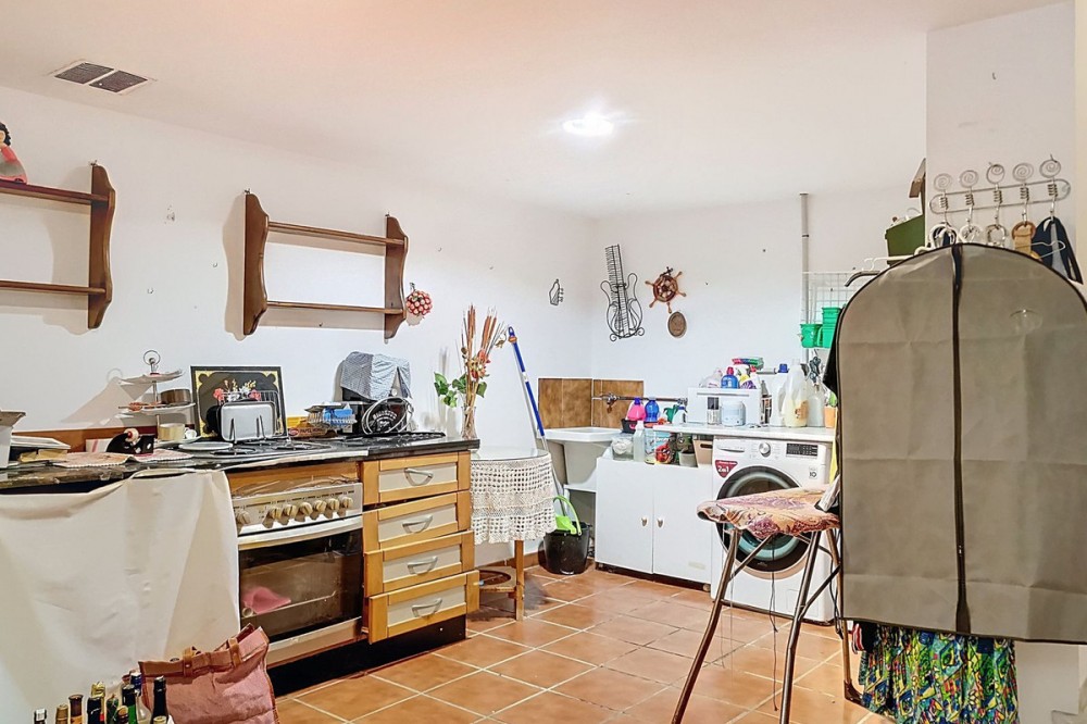 - Corner townhouse in the quietest area of Los Pacos, a residential complex of 16 high-quality townhouses built in 2006. The property has a floor area of 244 m2, distributed over the ground floor, which has an entrance porch-patio, a separate fitted kitchen with appliances, toilet, spacious living-dining room and a small room that can be used as a separate bedroom. On the first floor there are two bedrooms (previously 3), one of which is very large with an en-suite bathroom, and a full bathroom with shower in the hallway. Upstairs there is a spacious attic that could be another bedroom, with a terrace. In the basement there is an open-plan area with a kitchen and a garage for two cars. The property has a communal area with a swimming pool and green area. Ideal property for families, monthly community fees: €60. Annual property tax: €650.