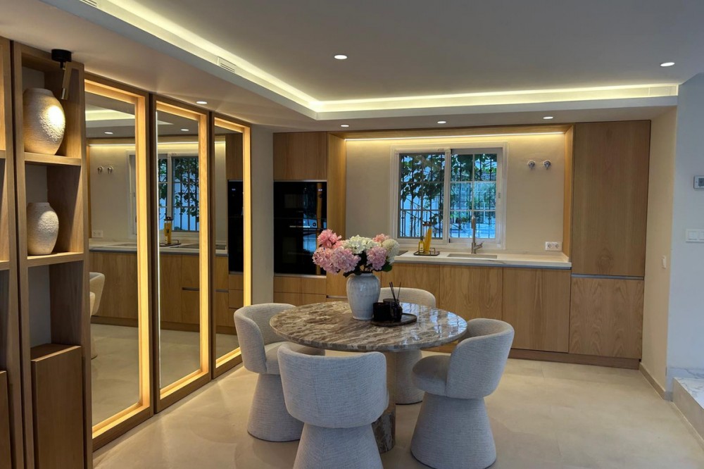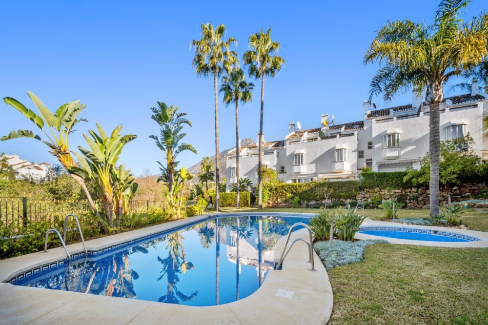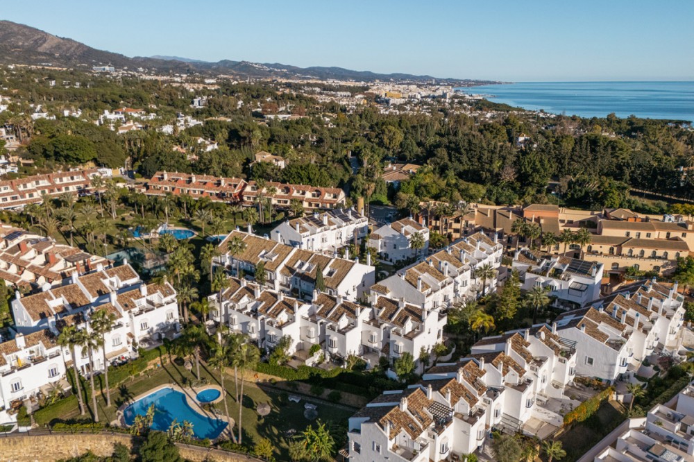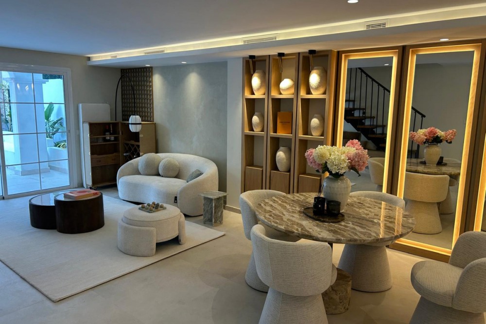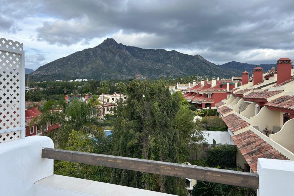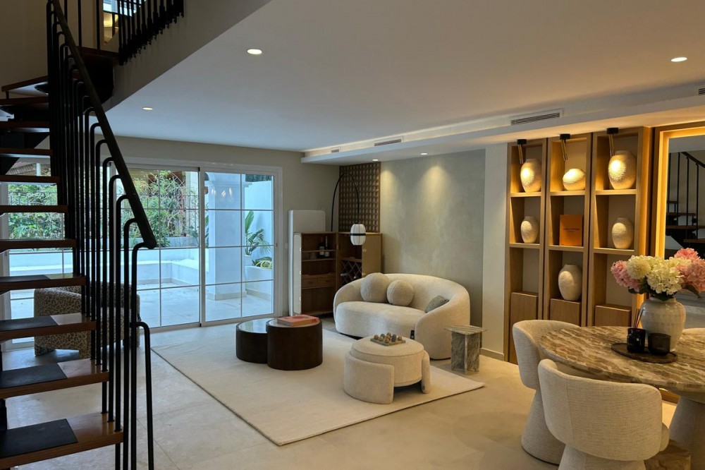 - Modern Townhouse in Arco Iris, Golden Mile Located in the charming gated community of Arco Iris, this fully renovated townhouse offers a rare blend of modern comfort and unbeatable location. Just a short stroll from the Puente Romano Resort, Marbella Club, and sandy beaches, the property places you at the heart of the Golden Mile lifestyle while maintaining privacy and tranquility. The home spans 150 m² of beautifully finished interiors, with three generous bedrooms and three elegant bathrooms. Each suite combines functionality with comfort, featuring both shower and bathtub options. A private terrace of 21 m² extends the living space outdoors, perfect for morning coffee or relaxed evening dining, while the upper floor boasts panoramic views of the iconic La Concha mountain. At the heart of the house is a bright, open-plan living area that flows seamlessly between lounge, dining, and kitchen. High-quality finishes and meticulous design elevate the interiors, creating a stylish yet welcoming atmosphere ideal for both everyday living and entertaining. Practical features complement the lifestyle appeal: two secure parking spaces (24 m²) and a separate storage room (4 m²) provide convenience, while residents enjoy beautifully maintained communal gardens and swimming pools. With the renovation completed in summer 2025, the property is delivered in turnkey condition, allowing immediate enjoyment without the need for upgrades. Arco Iris is renowned for its charm and accessibility, with Marbella town centre and Puerto Banús both within a five-minute drive, and quick access to the motorway ensuring effortless connections along the Costa del Sol. This townhouse represents an ideal choice for those seeking a stylish residence or lock-up-and-go holiday home in one of Marbella’s most prestigious locations.