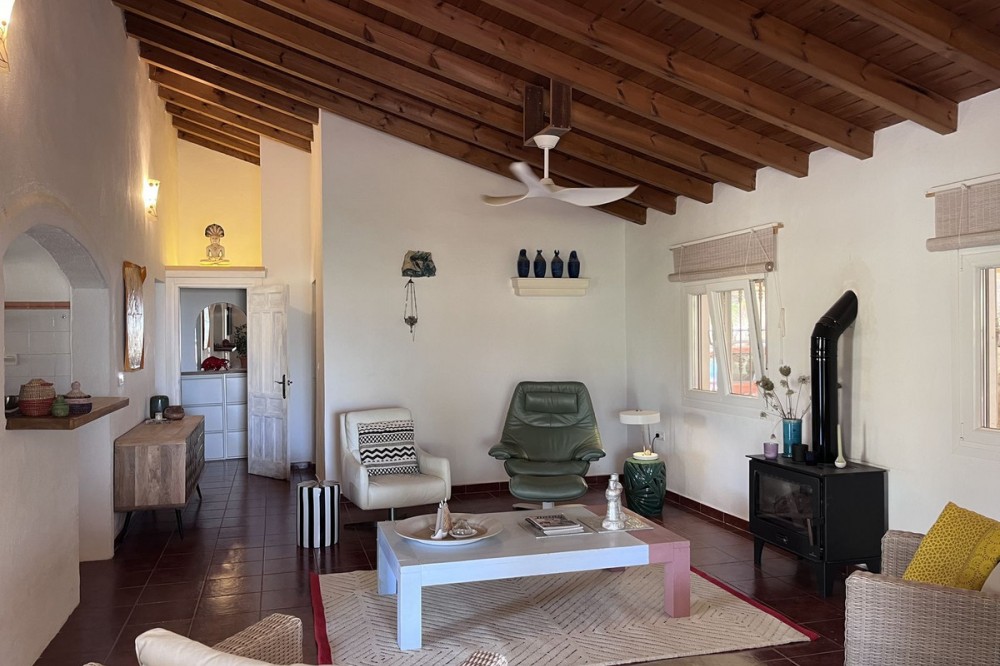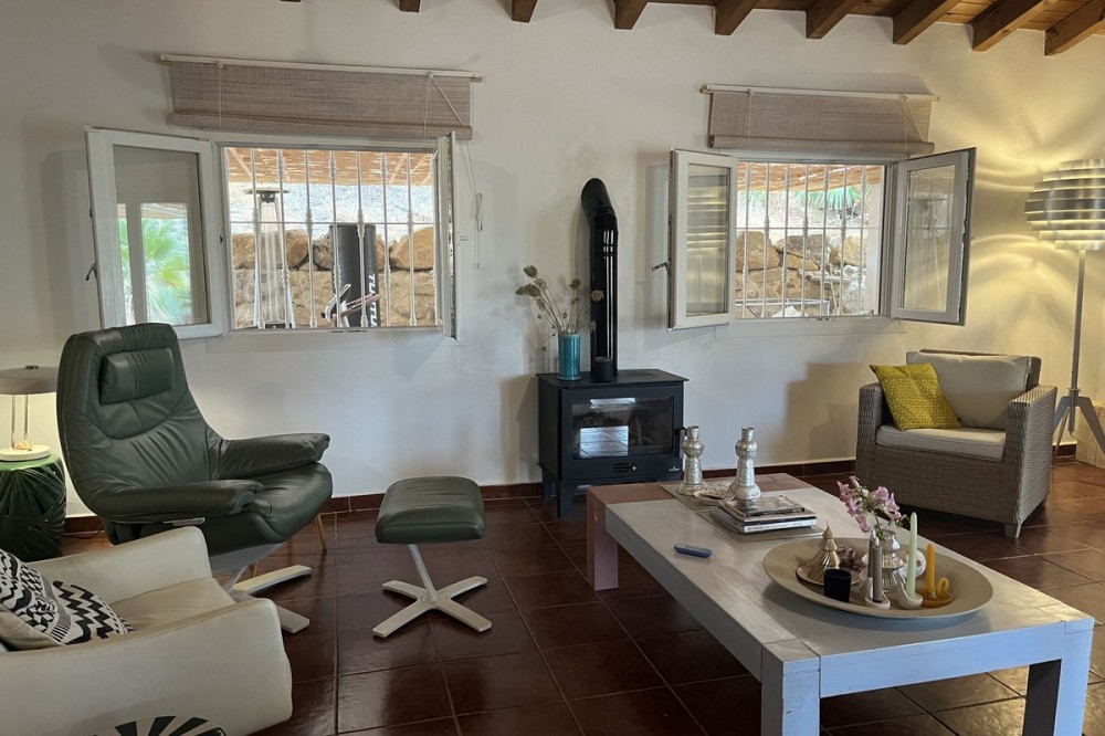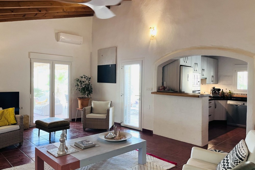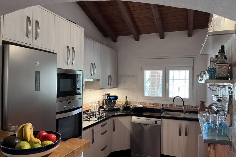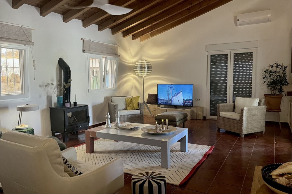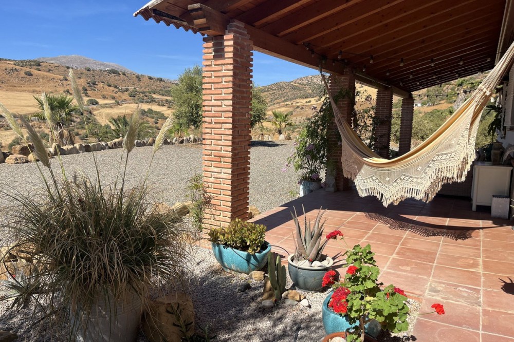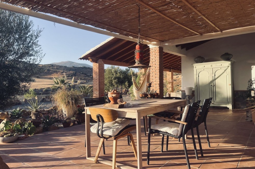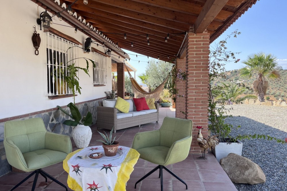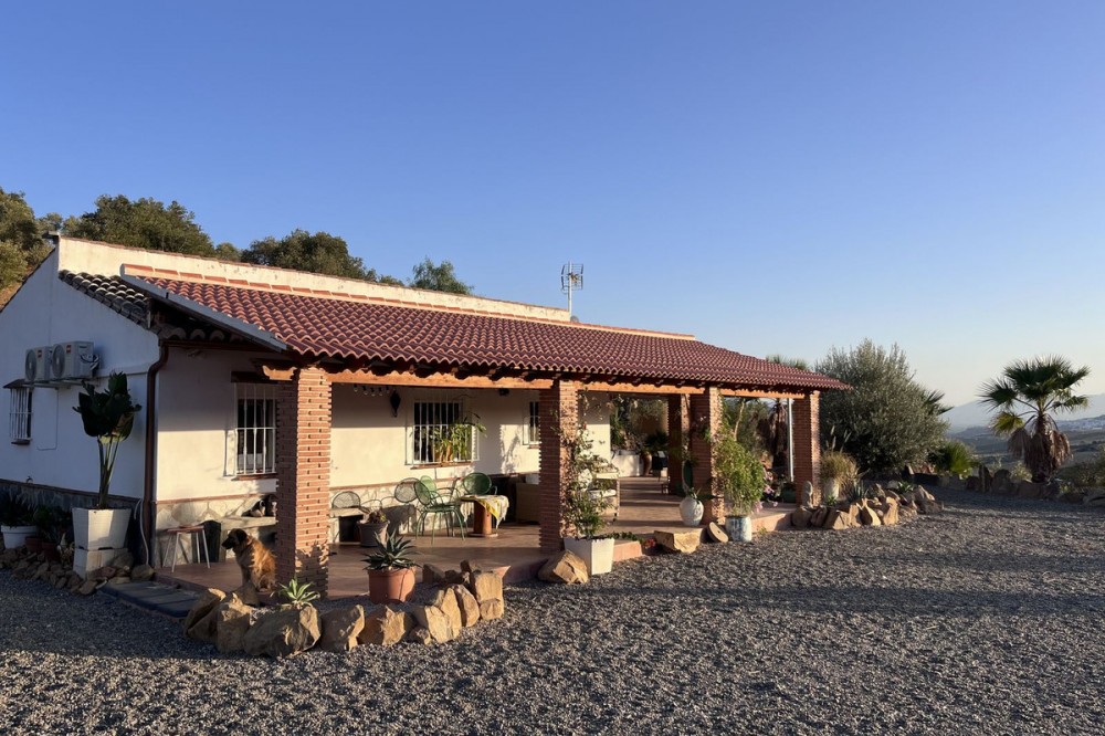 - This stylish, quality built, immaculately presented, 3 bedroom, 2 bathroom, country villa is located between the Andalucian pueblos of Álora and Valle de Abdalajis in Málaga province. Set within its private olive grove of 14,000m2, planted out with 300 productive olive trees. The total build size is 108m2 plus a glorious wrap around partially covered terrace of approx. 100m2. The accommodation is all on one level offering an open plan living room/ dining room/ kitchen, 3 double bedrooms, 2 bathrooms and an outside laundry room/ storeroom with WC. The property hosts vaulted wooden ceilings creating an atmosphere of light and space. The fitted kitchen benefits from integrated oven and microwave and gas hob and also dish washer. The 3 bedrooms are all doubles; one has fitted wardrobes and one enjoys an ensuite shower room. The finishes throughout the property are of a high standard including double glazed windows, energy efficient air-conditioning heating/cooling system and an energy efficient wood burning stove. This property enjoys particularly generous outdoor entertaining areas with wrap around expansive terraces ideal for " al fresco" dining. The property enjoys a rural location, enjoying fabulous views of the Andalucian countryside, with access via a very short track from a tarmac road. All local amenities including Álora train station are less than 15 minutes’ drive from the property. Mains electricity is connected and there are 2 private wells. The owner has established 25,000 litres water storage capacity. This property holds the coveted SAFO license and offers the opportunity to acquire a fully regularized country villa and a productive olive grove, less than 1 hour's drive from Malaga city and international airport.