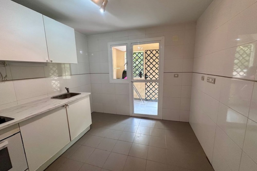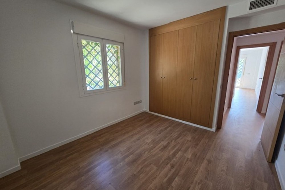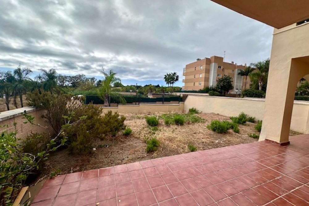 - Magnificent ground-floor apartment, completely renovated, in a superb location (New Golden Mile) in Estepona. Just a few minutes from Estepona town center and San Pedro de Alcántara (Marbella). Located in a private community with a communal pool and gardens. Apartment with a spacious entrance hall, a very bright living-dining room with access to a huge terrace and the main garden of the house (south-facing). The house has been completely updated, with floors, bathrooms, kitchen... It consists of 3 bedrooms and 2 bathrooms. The kitchen has a laundry area and a rear garden of also enormous size. The best thing about this house is that it has two garden areas, front and back (for a total of 105 m2), which is an ideal space to share with the family. We have contributed an ideal garden design to the photo shoot, allowing the garden of the house to look equally modern and harmonious. It comes with 2 parking spaces and 1 storage room. Don't hesitate to call us to schedule your visit. It's a magnificent home with outdoor spaces that are hard to find...