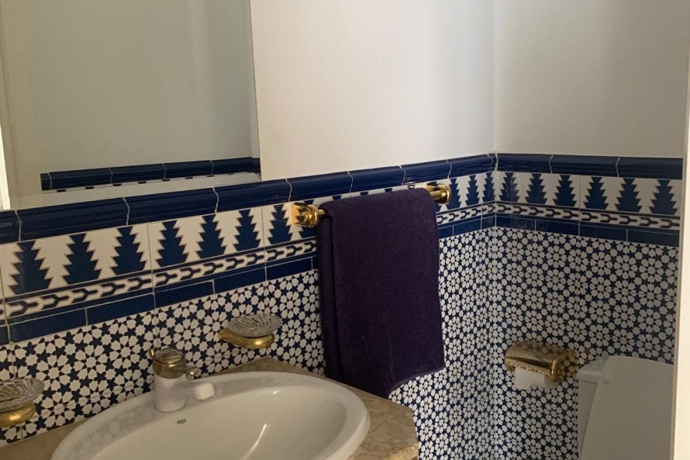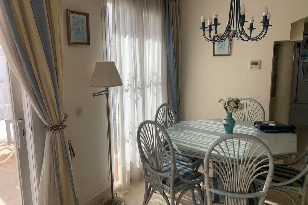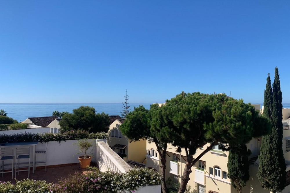 - Elegant 3-Bedroom Beachfront Penthouse in White Pearl Beach, Elviria, Marbella An exceptional 3-bedroom, 2-bathroom duplex penthouse situated in the exclusive White Pearl Beach complex, one of Marbella East’s most sought-after beachfront communities. Located just steps from the sand, this beautifully maintained home offers a rare combination of luxury, space, and proximity to the sea. The property spans approximately 160 m² of interior living space across two levels. The main floor features a bright open-plan living and dining area with a fireplace and direct access to a large south-facing terrace overlooking the tropical gardens and communal pool. A fully fitted kitchen, two generous bedrooms, and a family bathroom complete this level. Upstairs, the master suite includes an en-suite bathroom and a private terrace with partial sea views — perfect for relaxing or enjoying the sunset. White Pearl Beach is a gated, secure development with 24-hour security, immaculate tropical gardens, and communal swimming pools, including a heated pool for year-round enjoyment. Additional features include underground parking, lift access, air conditioning (hot/cold), marble floors, and double glazing. Perfect as a permanent residence or a luxury holiday home, this property offers peace, privacy, and unbeatable access to Marbella’s best beach clubs, restaurants, and local amenities.