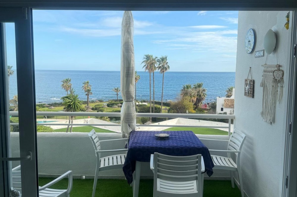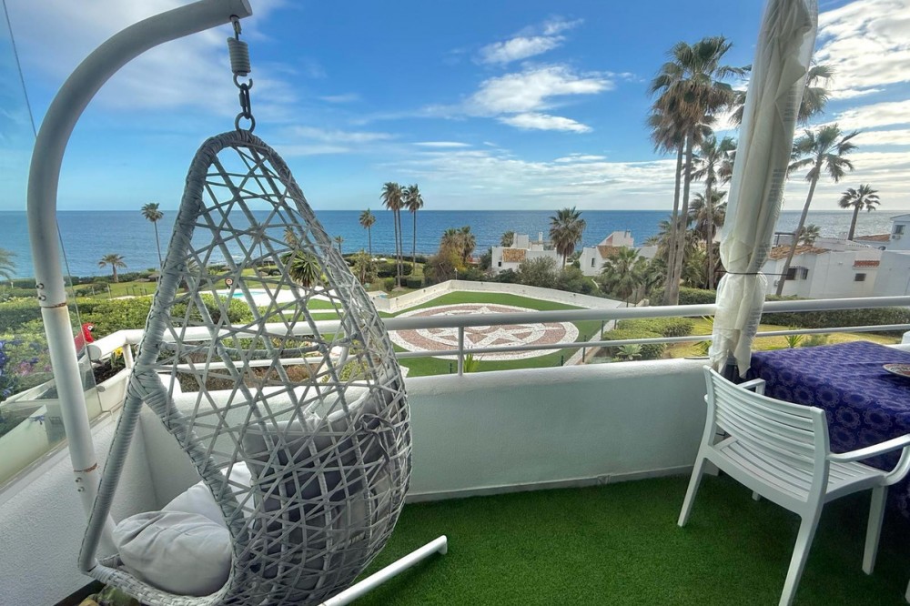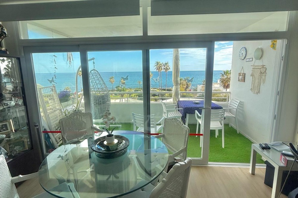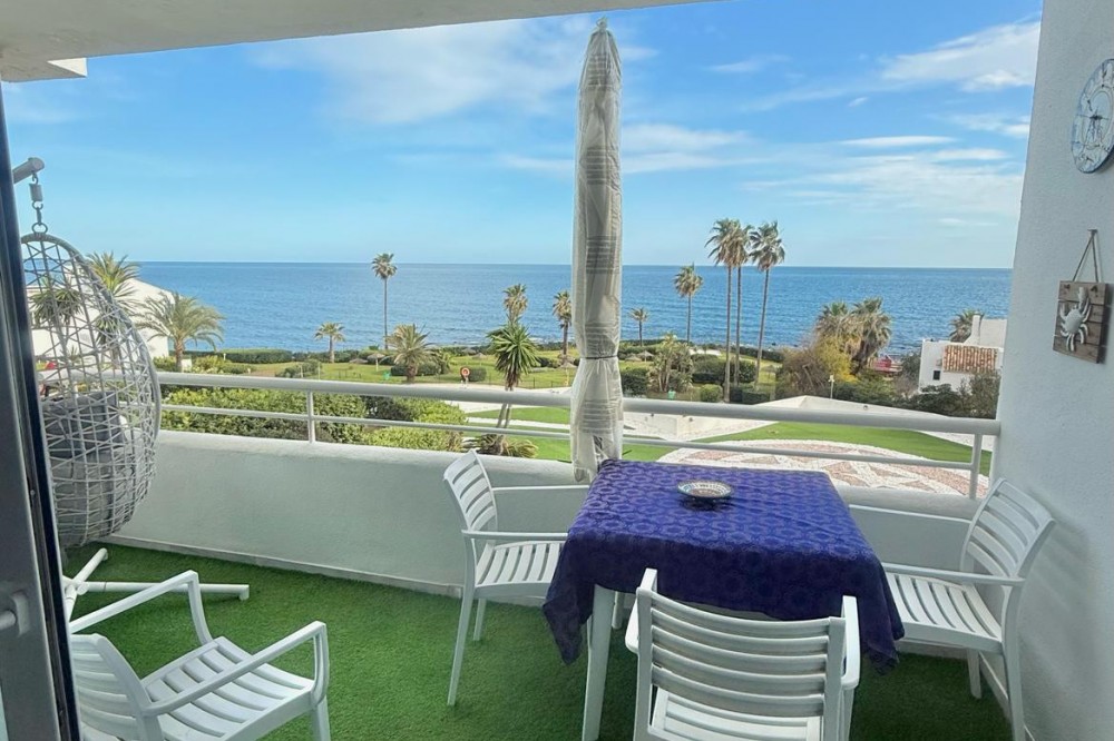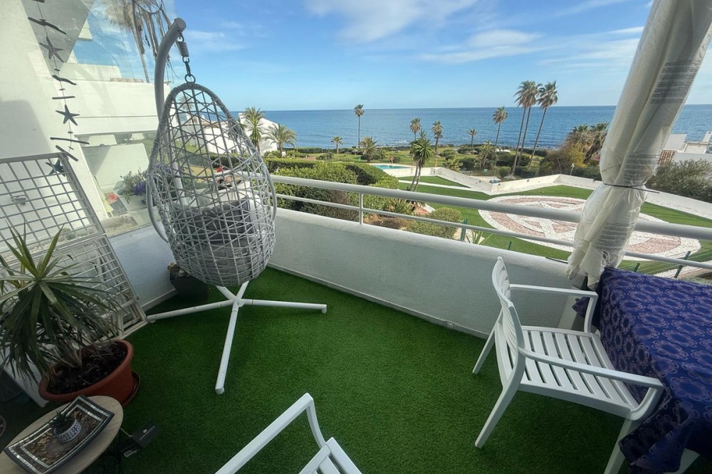 - Wake up to breathtaking, uninterrupted views of the sea from this stunning frontline beach apartment. Designed with an open-plan layout, the interior seamlessly connects the living space with the kitchen and terrace, creating a bright and airy ambiance. The terrace offers the perfect setting for outdoor dining while enjoying the spectacular coastal scenery. The master bedroom features its own private balcony with mesmerizing views, as well as a spacious en-suite bathroom for ultimate comfort. Set within an exclusive beachfront community, the residence boasts lush gardens surrounding a swimming pool and children's pool. Direct access to a scenic promenade makes it easy to explore the coastline, enjoy long walks, or visit the charming beachfront restaurants. Additional features include residents-only parking, double-glazed windows, air conditioning, and a secure video entry system. Whether as a dream holiday home or a lucrative investment, this exceptional property offers the best of beachfront living with outstanding rental potential. Contact us today for more details or to arrange a viewing.