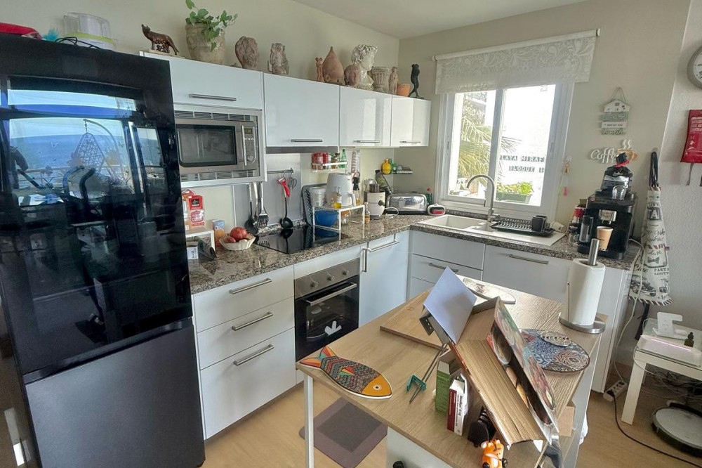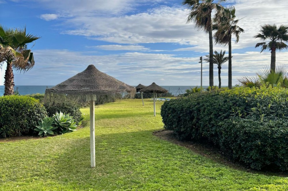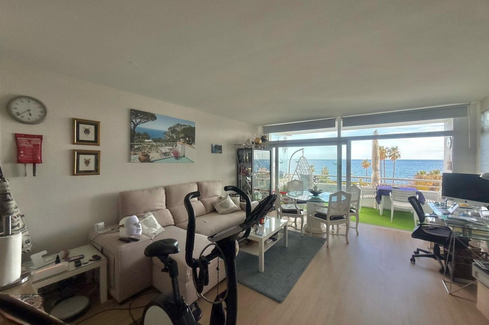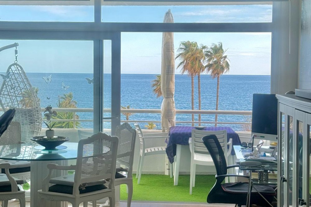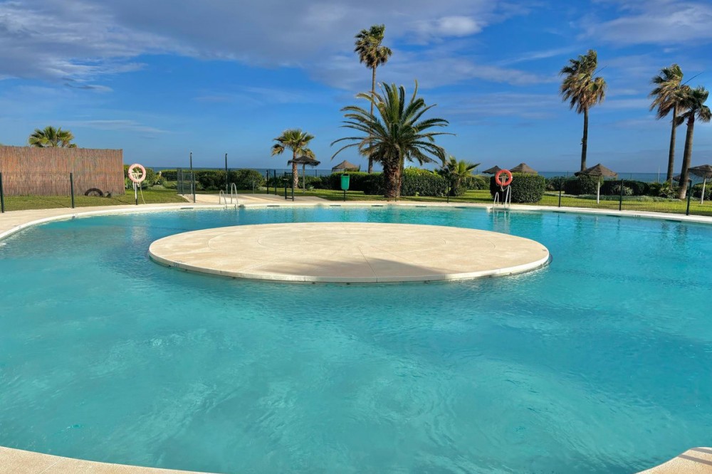 - Wake up to breathtaking, uninterrupted views of the sea from this stunning frontline beach apartment. Designed with an open-plan layout, the interior seamlessly connects the living space with the kitchen and terrace, creating a bright and airy ambiance. The terrace offers the perfect setting for outdoor dining while enjoying the spectacular coastal scenery. The master bedroom features its own private balcony with mesmerizing views, as well as a spacious en-suite bathroom for ultimate comfort. Set within an exclusive beachfront community, the residence boasts lush gardens surrounding a swimming pool and children's pool. Direct access to a scenic promenade makes it easy to explore the coastline, enjoy long walks, or visit the charming beachfront restaurants. Additional features include residents-only parking, double-glazed windows, air conditioning, and a secure video entry system. Whether as a dream holiday home or a lucrative investment, this exceptional property offers the best of beachfront living with outstanding rental potential. Contact us today for more details or to arrange a viewing.