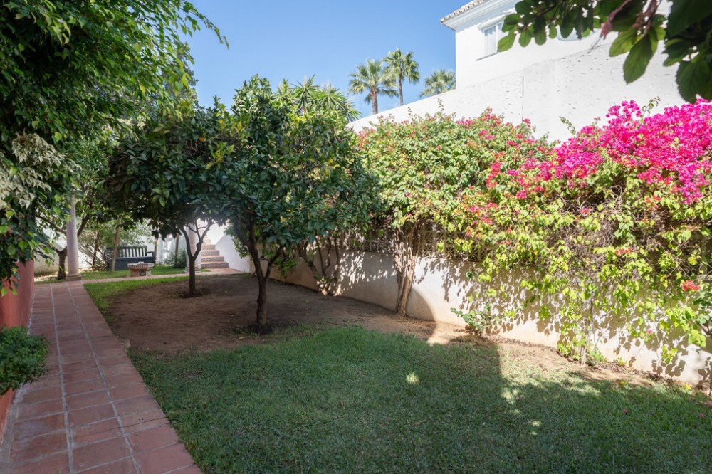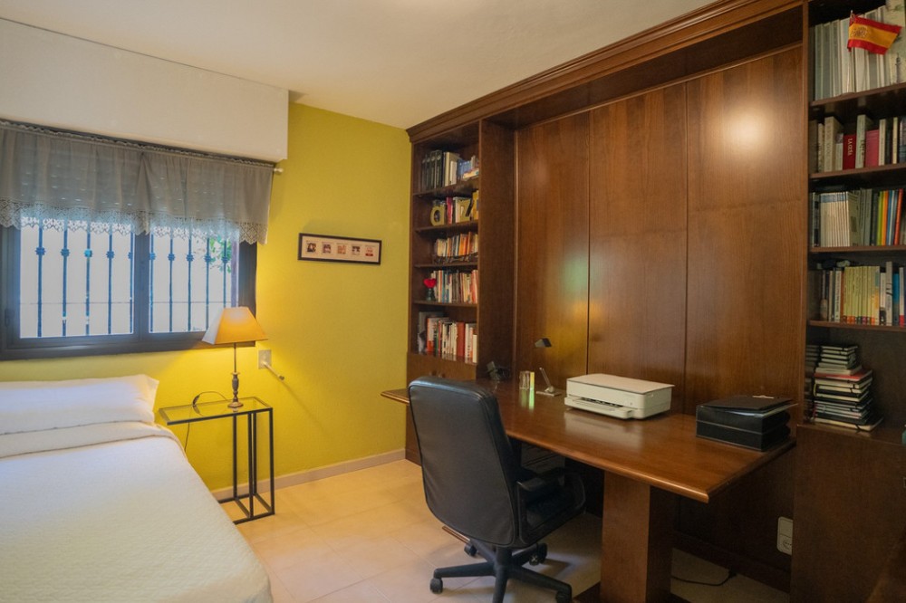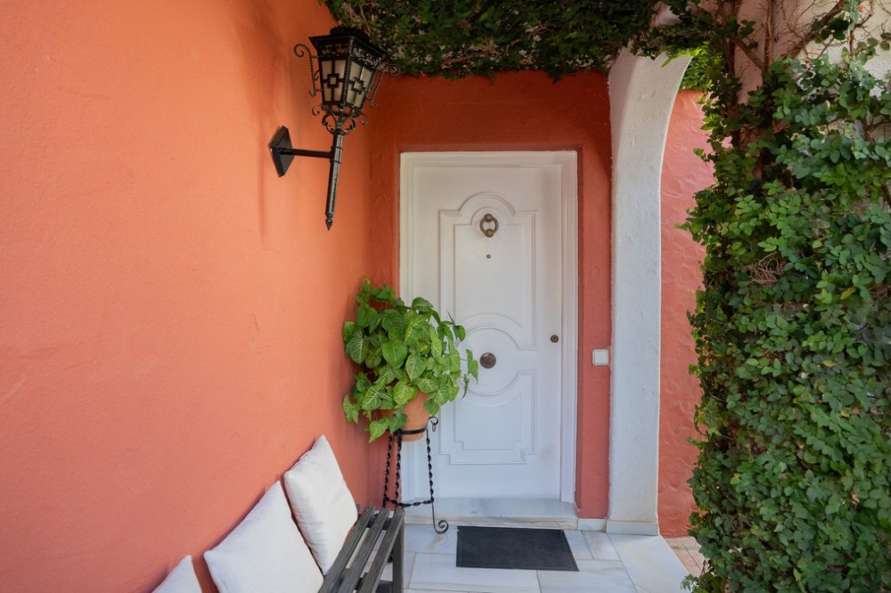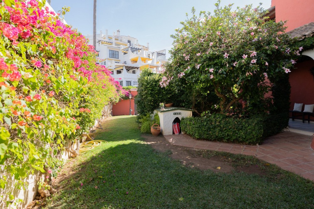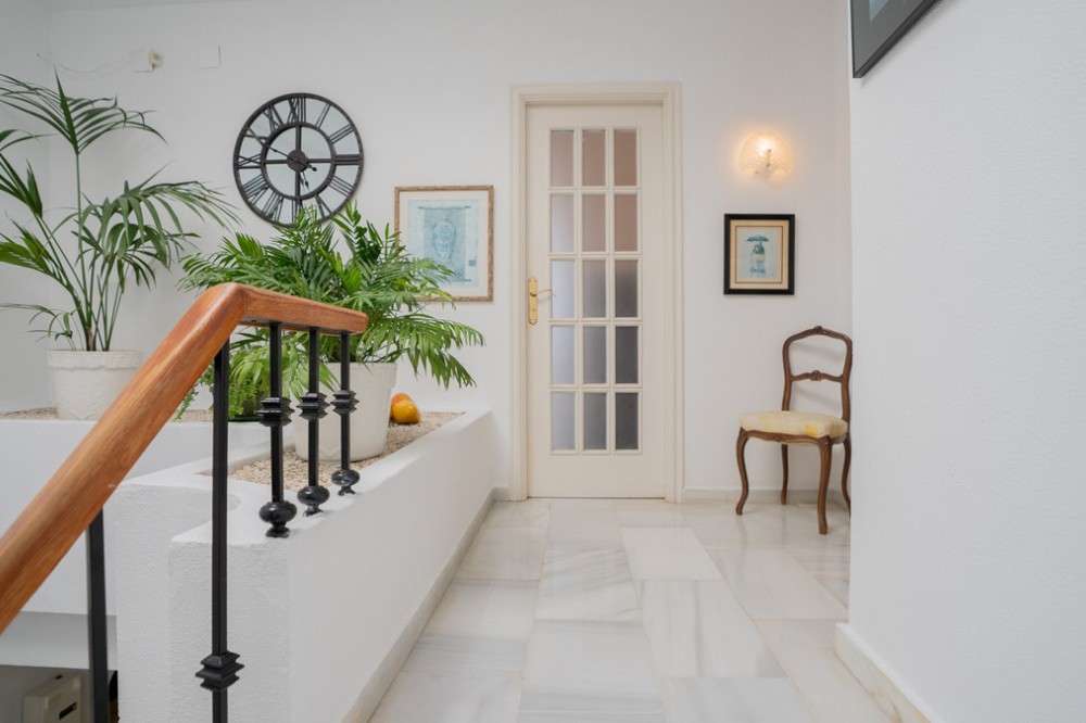- This villa offers comfort, privacy, and convenience in a prime residential area just 1 km from Puerto Banús. Set on a 512 m² plot with a 204 m² built area, the property enjoys access from two streets—Las Yedras and Las Camelias—and benefits from having no community or garage fees. The ground floor features a welcoming hallway, spacious living and dining room, fully equipped kitchen, laundry room, full bathroom, and an office or additional bedroom. Upstairs, you’ll find three bedrooms, two bathrooms, bright hallways with skylights, and a terrace. Designed for both year-round living and entertaining, the villa comes with air conditioning, heating, a fireplace, and fiber optic connection. Outdoor areas include a porch with a barbecue and summer dining area, a private swimming pool, and beautifully landscaped gardens with orange, lemon, and olive trees, plus a vibrant bougainvillea. Additional highlights include a garage for three cars, storage room, and direct street access for added convenience. With essential services like a supermarket and gourmet restaurants just steps away, this property combines comfort, exclusivity, and an unbeatable location.