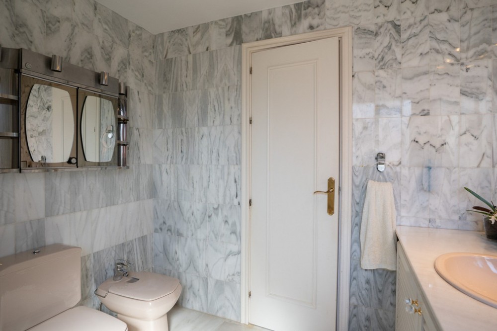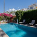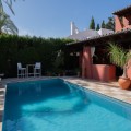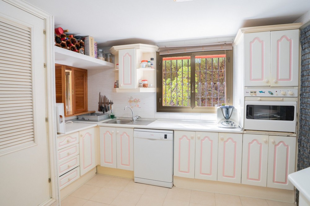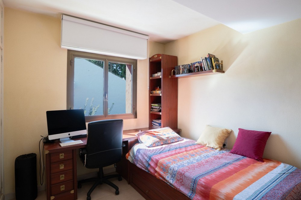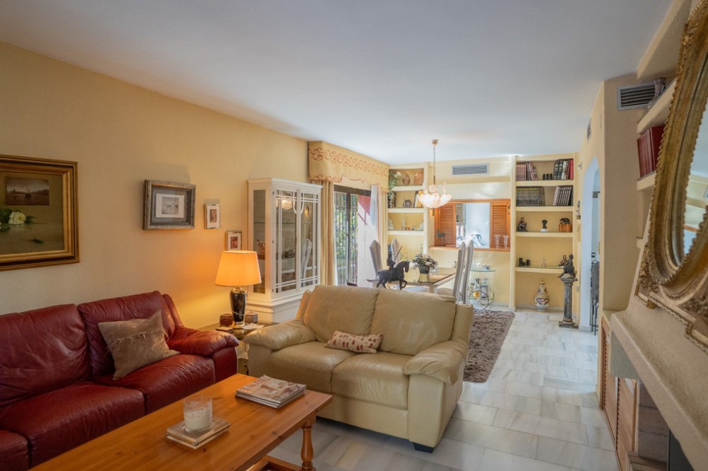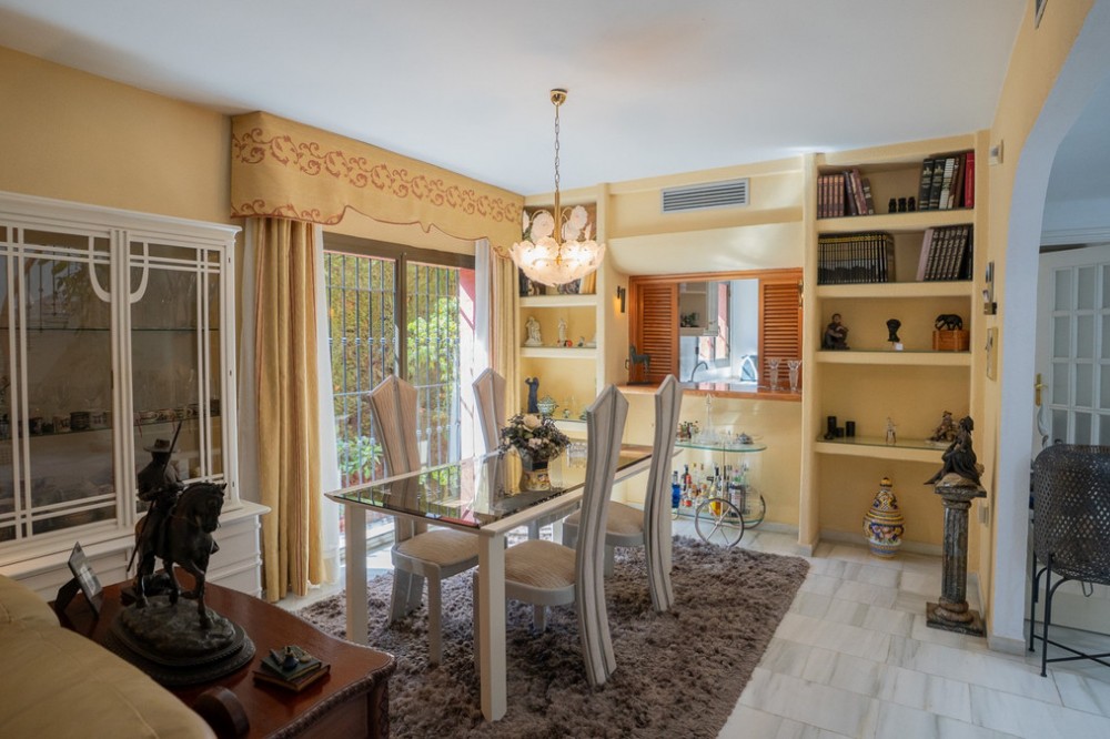 - This villa offers comfort, privacy, and convenience in a prime residential area just 1 km from Puerto Banús. Set on a 512 m² plot with a 204 m² built area, the property enjoys access from two streets—Las Yedras and Las Camelias—and benefits from having no community or garage fees. The ground floor features a welcoming hallway, spacious living and dining room, fully equipped kitchen, laundry room, full bathroom, and an office or additional bedroom. Upstairs, you’ll find three bedrooms, two bathrooms, bright hallways with skylights, and a terrace. Designed for both year-round living and entertaining, the villa comes with air conditioning, heating, a fireplace, and fiber optic connection. Outdoor areas include a porch with a barbecue and summer dining area, a private swimming pool, and beautifully landscaped gardens with orange, lemon, and olive trees, plus a vibrant bougainvillea. Additional highlights include a garage for three cars, storage room, and direct street access for added convenience. With essential services like a supermarket and gourmet restaurants just steps away, this property combines comfort, exclusivity, and an unbeatable location.