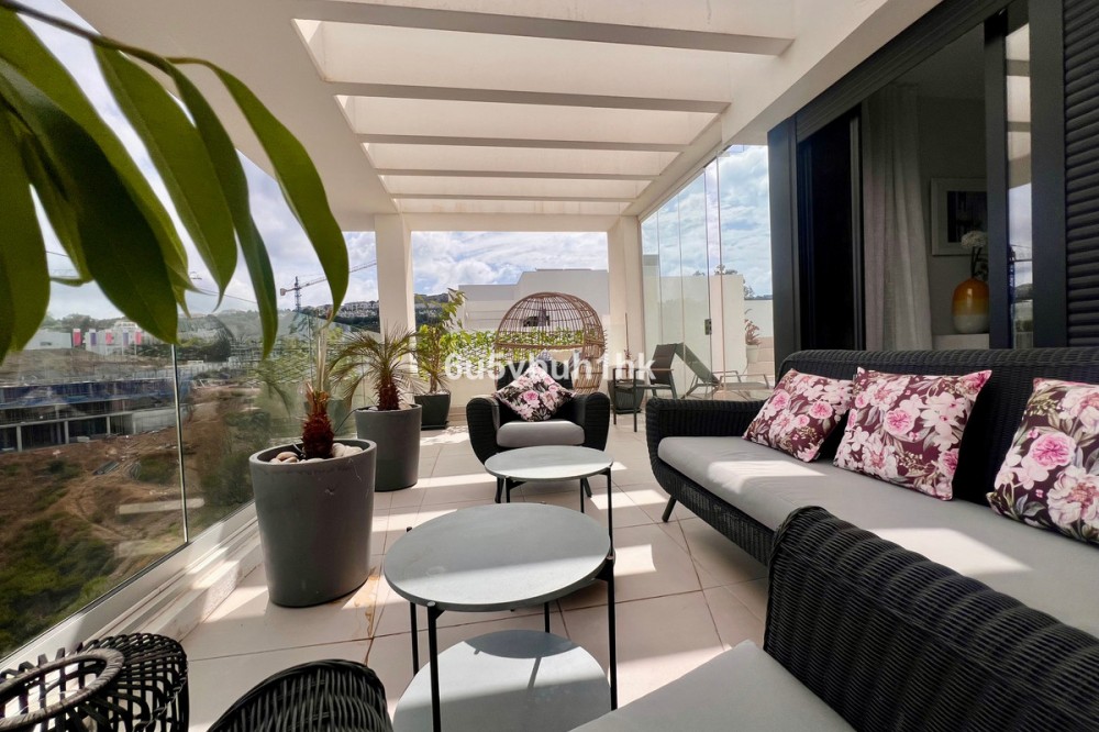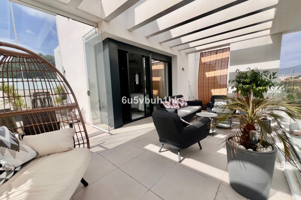 - This exclusive south-facing duplex penthouse boasts impressive open views over the golf course and a privileged location within a high-end residential complex. The property is delivered fully furnished with exclusive Nordic designer furniture, ready to move in and enjoy. On the upper floor, a spectacular private solarium with its own swimming pool offers the ideal space to relax, sunbathe or share unforgettable moments with family and friends, all while enjoying breathtaking panoramic views. The penthouse includes two large parking spaces and a storage room, in addition to all the amenities of a premium residential complex: Communal swimming pool, fully equipped gym, sauna and Jacuzzi, Beautiful landscaped gardens, perfect for walking and relaxing. Thanks to its south orientation, the property enjoys natural light throughout the day, creating a warm, welcoming and exclusive atmosphere in every room. A truly unique home that combines luxury, comfort and quality of life, designed for those seeking a sophisticated lifestyle in a privileged setting. Contact us right away for a viewing!