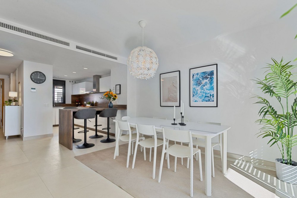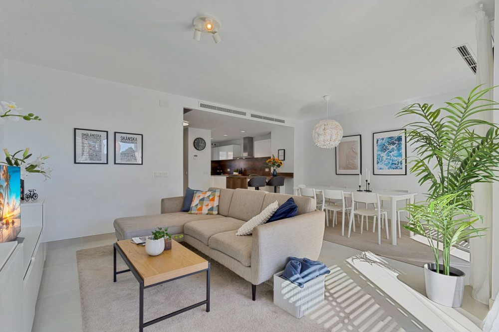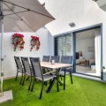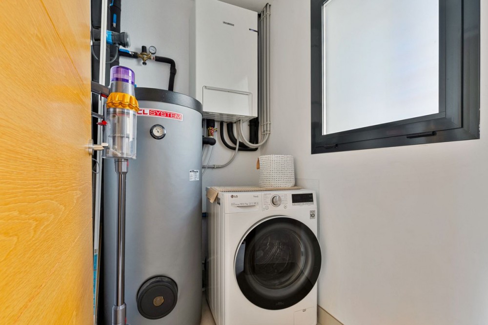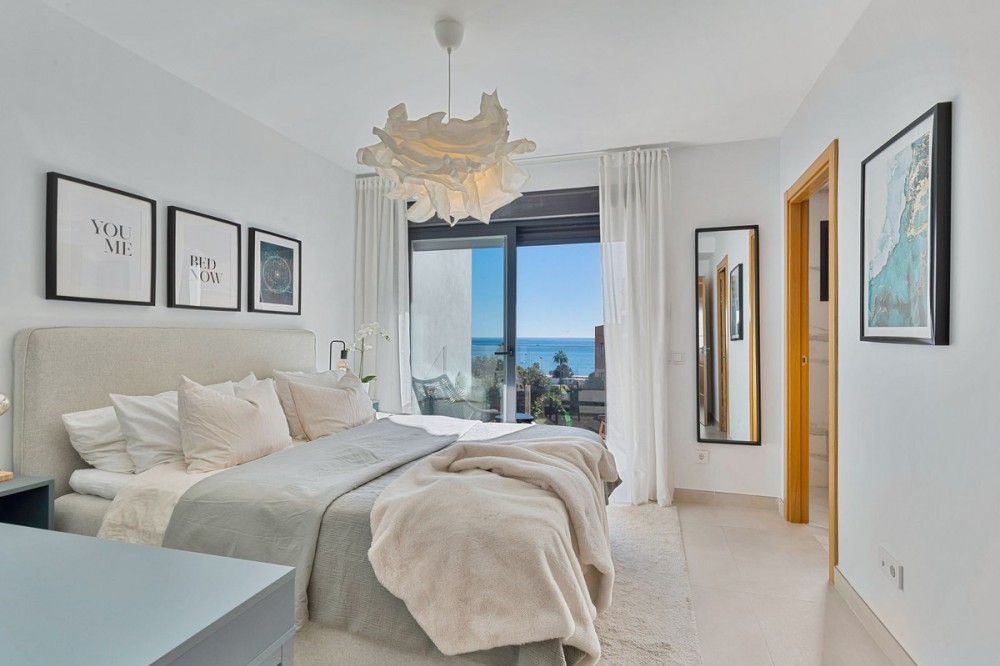- Exclusive Townhouse in Fuengirola – Short Walk to the Beach! Welcome to a charming and family-friendly community with only ten houses, where it is easy to feel at home. This townhouse is located in one of Fuengirola’s most popular neighborhoods, close to everything you need for daily life. At the same time, it is situated in a quiet area, surrounded by green spaces and hiking trails. A Home with Generous Living Spaces The residence spans three floors and offers three bedrooms and two and a half bathrooms, ideal for both families and those who love to host guests. On the entry level, you will find a bright and spacious living room with a dining area, perfect for socializing and dinners with family and friends. The kitchen is fully equipped, and there is a guest bathroom, laundry room, and access to terraces both at the front and back of the home. Upstairs, the master bedroom awaits with its own balcony and stunning sea views. It features a spacious walk-in closet and a private bathroom, enhancing both comfort and quality in daily living. On the same floor, there are two additional bedrooms and another full bathroom. In the basement there is a large storage and a multipurpose room. From this level, there is direct access to two private parking spaces. Terraces and Views to Enjoy From the villa’s balcony and spacious terraces, you can enjoy wonderful views of the pool area, the sea, and the mountains – a harmonious combination that makes everyday living feel special. Close to the Beach, City, and Airport Within a few minutes on foot, you will find restaurants, cafés, and grocery stores. The beach and promenade are just a four-minute walk away, and the Miramar shopping center is six minutes away. A twenty-minute walk takes you to the city center and Málaga Airport is only 20 minutes by car. A Home to Look Forward To This townhouse combines exclusivity and community with an unbeatable location close to nature, the beach, and the city’s vibrant life. A home to look forward to – and to enjoy for many years.