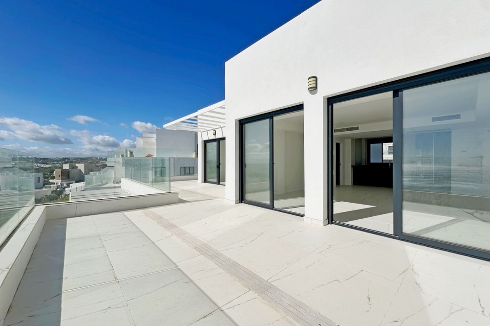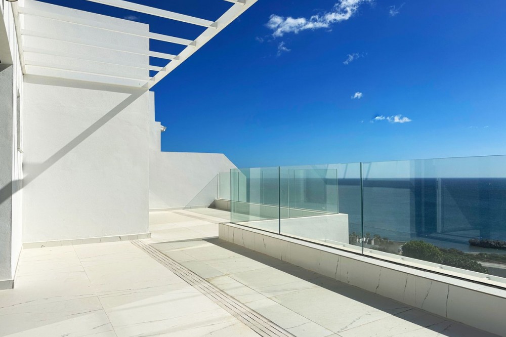 - Discover this exclusive new-build penthouse located in the prestigious Azata Delmare residential complex in Casares Costa, one of the most sought-after areas on the Costa del Sol. A privileged setting that combines luxury, comfort, and stunning panoramic views of the Mediterranean Sea and the mountains. The property has a floor area of 107 m², of which 95 m² corresponds to its elegant interior, distributed as follows: 3 spacious bedrooms 2 full bathrooms (one en suite) Modern open-plan kitchen fully equipped with Bosch appliances Bright living room with direct access to a 66 m² private terrace, perfect for enjoying the sun, gatherings, or outdoor evenings The finishes are exceptional: porcelain floors, double-glazed windows, electric blinds, aerothermal system, glass doors, and an impeccable contemporary finish. The property is brand new, with 2 parking spaces and a storage room included in the price. The development offers an exclusive lifestyle with an infinity pool overlooking the sea, a gym, a coworking area, and large green areas. Pets are also allowed. Its excellent location allows you to enjoy the best of the coast: beaches, golf courses, shops, restaurants, schools, public transport, and the marina, all just a few minutes away. ✨ A unique opportunity to live in an incomparable setting, combining luxury, comfort, and nature.
