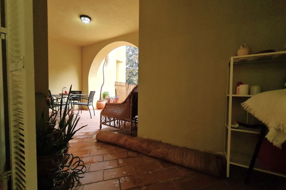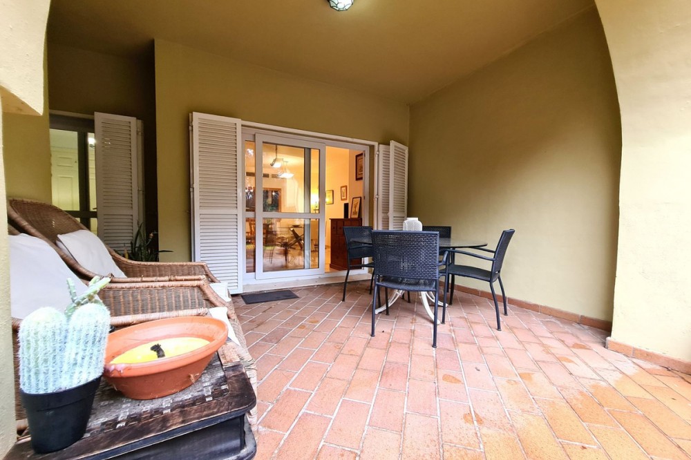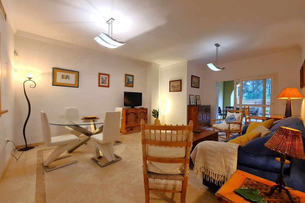 - MAGNIFICENT 1-BEDROOM GROUND FLOOR APARTMENT WITH LARGE TERRACE AND PRIVATE GARDEN Located in one of the most sought-after residential areas of Sotogrande, this property is just a 5-minute drive from the beach, close to supermarkets, shops, and restaurants, with easy access to the motorway. Gibraltar is only 20 minutes away by car, and Malaga Airport is 90 minutes away. This ground floor apartment boasts 80m2 of living space, making it very spacious. It features a large living-dining room that connects to a spacious, partially covered private terrace with a private garden. There is a fully equipped independent kitchen, a full bathroom with a bathtub, and a large bedroom with a built-in wardrobe and access to the terrace. The property also includes a spacious parking space and a large storage room, as well as parking within the gated community, gardens, and a swimming pool. WE RECOMMEND YOUR VISIT!!