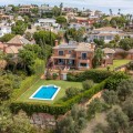- Welcome to distinguished living on the Costa del Sol. Located in a prestigious residential enclave of Benalmádena, this extraordinary villa offers a unique combination of refined luxury, privacy and an unbeatable location, just steps from the Mediterranean coast. Set on a beautifully landscaped 1,510 m² plot, this extraordinary property boasts 493 m² of exquisitely designed living space on two main floors, plus a versatile lower level ideal for leisure and a 135 m² garage with space for at least 4 cars. A grand entrance to elevated living. The villa welcomes you through an impressive foyer crowned by a majestic staircase, setting the tone for the elegant interiors that follow. The main floor features a generously proportioned living room with a fireplace, a formal dining room and a second separate and cosy dining room, also with a fireplace, perfect for more intimate gatherings. A library with soaring ceilings, a fully equipped gourmet kitchen with premium appliances, and a guest bedroom with en-suite bathroom complete this floor. Step outside to discover the spacious terraces offering serene garden and sea views – ideal for year-round alfresco living, thanks to the villa’s massive mature gardens and the fantastic 50 m² swimming pool with total privacy and the favourable south-west orientation, ensuring sun from morning to sunset. Exceptional Bedroom Suites with Panoramic Views. Upstairs, the master suite is a sanctuary of tranquillity, featuring its own fireplace, dual walk-in wardrobes, and an opulent en-suite bathroom with hydromassage bathtub and separate shower. Two further double bedrooms share a large bathroom and access to private terraces with sweeping views across the golf course and the Mediterranean Sea. Unmatched Comfort & Amenities. Built to the highest standards, the villa includes central heating and air conditioning, electric shutters, double-glazed windows, and luxurious marble flooring throughout. An internal lift connects all levels for added convenience. Leisure & Lifestyle. The lower ground level houses a three-car garage, ample storage, a laundry area, and a versatile space ideal for a cinema, gym, games room or home spa. A Finnish sauna with shower and direct access to the large outdoor pool complete this level, offering a full wellness experience. At the foot of the garden, a private orchard with fruit trees brings a touch of Andalusian charm. Prime Location. This is a rare opportunity to acquire a property in one of the most coveted neighbourhood on the Costa del Sol. Within walking distance to sandy beaches, International School, the Casino, and some of the finest seafood restaurants on the coast, this villa is ideal for those seeking tranquillity without isolation. Summary Features • 710 m² total built on a 1,500 m² plot • 5 bedrooms / 5 bathrooms • Library / Office • Multiple terraces with sea and golf views • South-West orientation for all-day sun • 50 m² swimming pool, sauna, and lift • Garage for 4 vehicles • Quiet, private location just steps from the beach • Walking distance to amenities and international school Whether you are looking for a distinguished family residence or an exclusive second home, this remarkable villa in Torrequebrada is a lifestyle investment that truly stands apart.