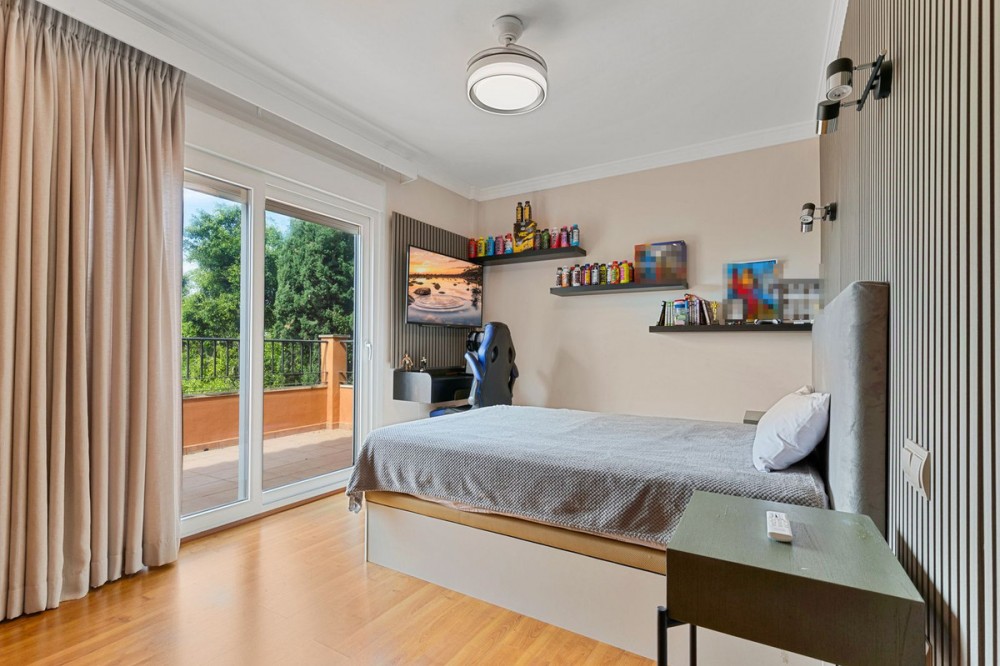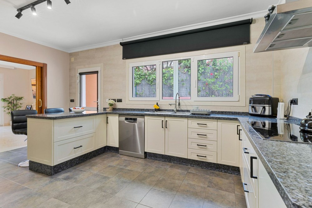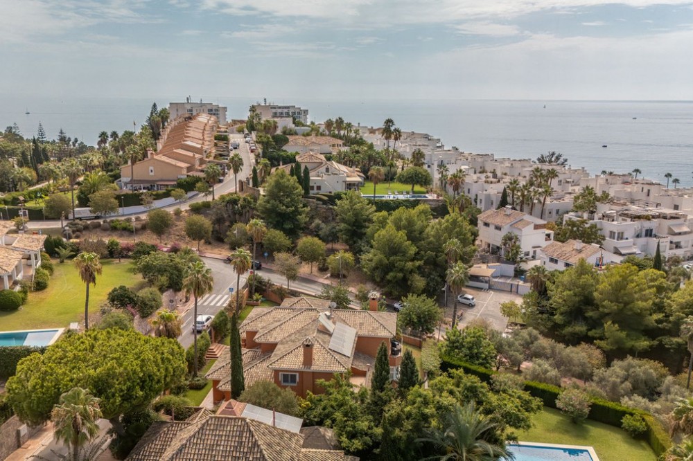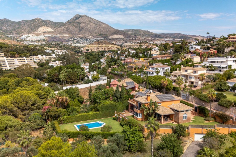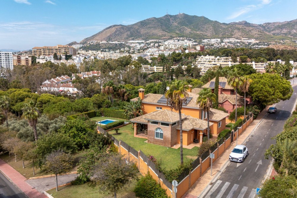 - Welcome to distinguished living on the Costa del Sol. Located in a prestigious residential enclave of Benalmádena, this extraordinary villa offers a unique combination of refined luxury, privacy and an unbeatable location, just steps from the Mediterranean coast. Set on a beautifully landscaped 1,510 m² plot, this extraordinary property boasts 493 m² of exquisitely designed living space on two main floors, plus a versatile lower level ideal for leisure and a 135 m² garage with space for at least 4 cars. A grand entrance to elevated living. The villa welcomes you through an impressive foyer crowned by a majestic staircase, setting the tone for the elegant interiors that follow. The main floor features a generously proportioned living room with a fireplace, a formal dining room and a second separate and cosy dining room, also with a fireplace, perfect for more intimate gatherings. A library with soaring ceilings, a fully equipped gourmet kitchen with premium appliances, and a guest bedroom with en-suite bathroom complete this floor. Step outside to discover the spacious terraces offering serene garden and sea views – ideal for year-round alfresco living, thanks to the villa’s massive mature gardens and the fantastic 50 m² swimming pool with total privacy and the favourable south-west orientation, ensuring sun from morning to sunset. Exceptional Bedroom Suites with Panoramic Views. Upstairs, the master suite is a sanctuary of tranquillity, featuring its own fireplace, dual walk-in wardrobes, and an opulent en-suite bathroom with hydromassage bathtub and separate shower. Two further double bedrooms share a large bathroom and access to private terraces with sweeping views across the golf course and the Mediterranean Sea. Unmatched Comfort & Amenities. Built to the highest standards, the villa includes central heating and air conditioning, electric shutters, double-glazed windows, and luxurious marble flooring throughout. An internal lift connects all levels for added convenience. Leisure & Lifestyle. The lower ground level houses a three-car garage, ample storage, a laundry area, and a versatile space ideal for a cinema, gym, games room or home spa. A Finnish sauna with shower and direct access to the large outdoor pool complete this level, offering a full wellness experience. At the foot of the garden, a private orchard with fruit trees brings a touch of Andalusian charm. Prime Location. This is a rare opportunity to acquire a property in one of the most coveted neighbourhood on the Costa del Sol. Within walking distance to sandy beaches, International School, the Casino, and some of the finest seafood restaurants on the coast, this villa is ideal for those seeking tranquillity without isolation. Summary Features • 710 m² total built on a 1,500 m² plot • 5 bedrooms / 5 bathrooms • Library / Office • Multiple terraces with sea and golf views • South-West orientation for all-day sun • 50 m² swimming pool, sauna, and lift • Garage for 4 vehicles • Quiet, private location just steps from the beach • Walking distance to amenities and international school Whether you are looking for a distinguished family residence or an exclusive second home, this remarkable villa in Torrequebrada is a lifestyle investment that truly stands apart.
