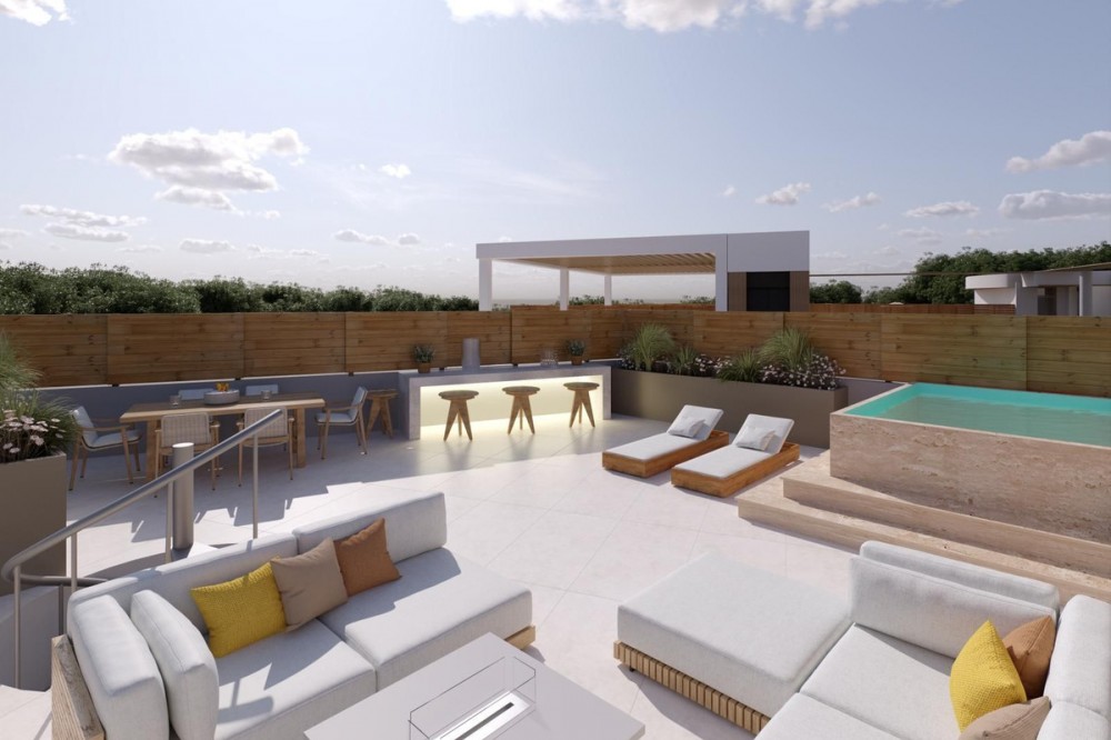 - (This is a Resale Unit of a new development) BRAND NEW CORNER-PENTHOUSE WITH PRIVATE SOLARIUM & PLUNGE POOL IN CENTRAL ESTEPONA Experience elevated Mediterranean living in this brand-new, key-ready corner penthouse, boasting the best position in the development and located right in the heart of Estepona Center — just a short stroll from the charming old town, the beach, and the lively seaside promenade. Vivienda 25 impresses with its exclusive rooftop solarium featuring a private plunge pool, offering the ideal space to relax, entertain, and take in panoramic views of Estepona’s skyline. With a total of 61 m² of outdoor space — comprising a 33 m² main terrace and a 28 m² rooftop solarium — this residence epitomizes the Costa del Sol’s indoor–outdoor lifestyle. Designed for effortless modern comfort, it features a bright open-plan living area, fully fitted kitchen and bathrooms, and premium finishes throughout. Additional features include: - Corner layout ensuring maximum privacy and natural light - Underground parking space - Private storage room - Access to outstanding community amenities: gym, coworking space, and swimming pool Enjoy the best of both worlds — a peaceful home within a vibrant urban setting, just 5 minutes from the beach, 20 minutes from Marbella, and 45 minutes from Málaga Airport. Whether you’re looking for a key-ready residence, a holiday escape, or a ready-to-rent investment, Vivienda 25 offers modern design, prime location, and the luxury of immediate move-in. Your Costa del Sol lifestyle begins the moment you step through the door. Benefits 1. Immediate Move-In: Buyers can occupy or rent the property immediately after purchase. 2. No Hidden Costs: There’s no need to spend extra money on finishing works, installations. 3. Time-Saving: Ideal for buyers abroad or investors who want a hassle-free purchase. 4. Better for Rentals: Especially relevant in markets like Marbella — investors can start generating rental income instantly. Note: Retail price excludes taxes, notary, and registration fees.