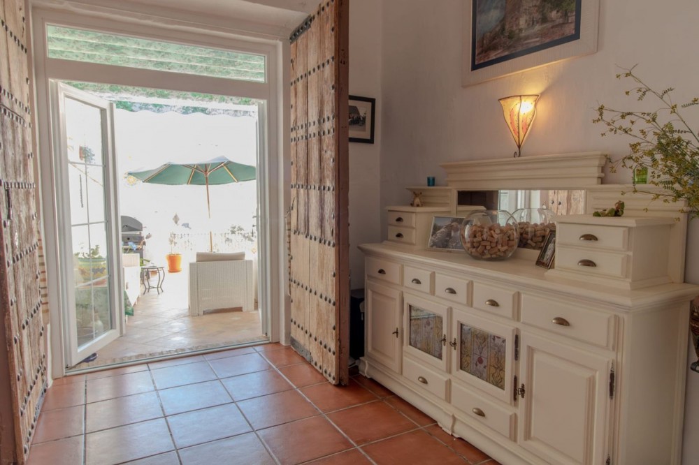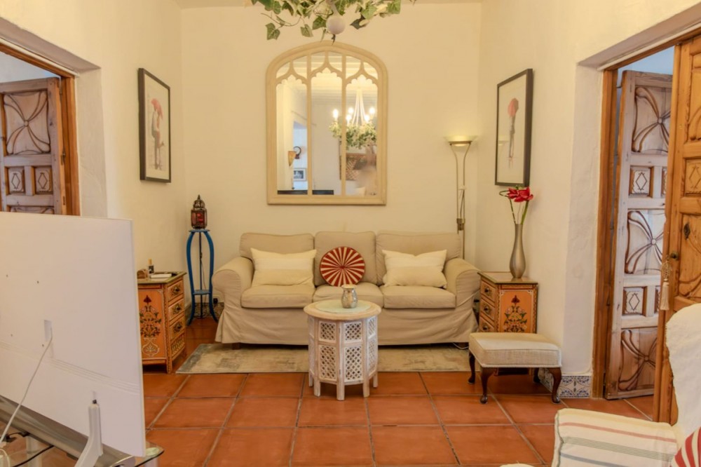 - Townhouse in the heart of Alora, with touristic license! This beautifully restored townhouse offers the perfect balance of Andalusian charm and modern comfort, ideally located in one of Álora’s most historic and sought-after streets. Nearby, the Museo Municipal Rafael Lería and the vibrant Plaza Baja de la Despedía bring culture, cafés, and village life right to your doorstep. Shops, transport links, and local amenities are all within easy reach, ensuring convenience without losing the authenticity of small-town living. Holding a tourist licence, the property is ready for use as a holiday rental, boutique B&B, or private home with potential for separate guest accommodation. Inside, the house blends traditional features—terracotta tiles, whitewashed walls, and antique wooden doors—with modern upgrades throughout. The ground floor opens into a charming Andalusian vestibule leading to a bright reception area, cozy lounge, and small office with a wine nook. Large glass doors fill the space with natural light and connect seamlessly to the outdoor terrace. A spacious double bedroom on this level offers flexibility as an owner’s suite or guest room. The dining area, with its high ceilings and window seat, leads into a fully equipped kitchen with modern appliances and direct terrace access. A contemporary bathroom with a walk-in shower completes this floor. Outside, multiple terraces provide sun, shade, and privacy. The enclosed lounge and bar area is perfect for alfresco dining and entertaining, while the upper terrace—with panoramic views of the El Hacho Sierra, countryside, and church tower—features a hot tub and seating for sunset relaxation. Upstairs, a beautiful tiled staircase leads to three generous double bedrooms, each with unique character. The first features antique carved wardrobes, while the second and third share a stylish Jack-and-Jill bathroom. Light-filled spaces and traditional design details create an inviting atmosphere throughout. Whether as a family home, boutique guesthouse, or investment property, this townhouse offers flexibility, comfort, and a true taste of authentic Spanish living in the heart of Álora.
