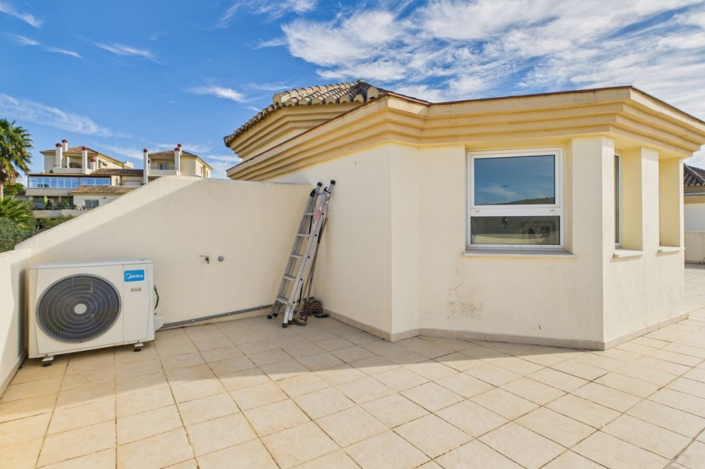 - Elegant 3-Bedroom Penthouse on the San Roque Golf Course Welcome to your new home on the prestigious San Roque Golf Course, a place where luxury, comfort, and tranquillity come together. Perfectly positioned frontline to the 4th and 5th holes, this stunning south to southwest–facing penthouse enjoys sunshine all day and some of the best views the course has to offer. Inside, you’ll find three spacious en-suite bedrooms, each with its own walk-in wardrobe and underfloor heating — perfect for cosy mornings and relaxed evenings. The open-plan living space has been designed for both style and practicality, flowing beautifully into a modern kitchen that’s ideal for entertaining family and friends. Step outside onto the private rooftop terrace and take in the panoramic views across the fairways and beyond — it’s the perfect spot to unwind with a glass of wine as the sun sets over the greens. Additional features include a guest cloakroom, laundry room, air conditioning (hot and cold), two private parking spaces, a storage room, and golf buggy parking. The community also offers 24-hour security, giving you complete peace of mind in this serene and exclusive setting. Whether you’re a passionate golfer or simply love the idea of living in a peaceful, beautifully maintained environment, this penthouse offers something truly special. Come and experience it for yourself — contact us today to arrange a private viewing.