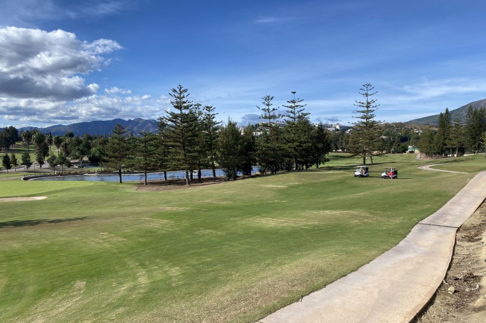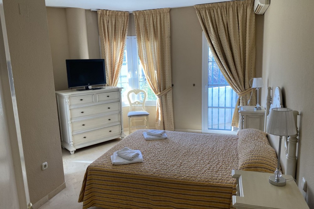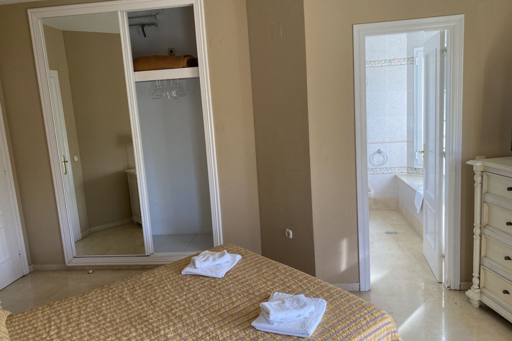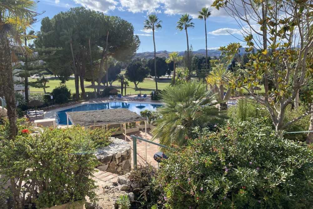 - FRONTLINE GOLF SIMPLY FABULOUS! A WONDERFUL 3 BEDROOM APARTMENT OVERLOOKING THE FAIRWAYS OF LOS LARGOS GOLF COURSE IN THIS HIGHLY SOUGHT AFTER GATED URBANIZATION. A VERY RARE FIND. JUST A SHORT DRIVE TO THE VIBRANT BEACH RESORT OF FUENGIROLA. Westerly orientation. AT A GLANCE 3 BEDROOMS 2 BATHROOMS - ONE EN SUITE SPACIOUS LOUNGE/DINER EASY ACCESS TO COMMUNITY POOLS AND GARDENS BREATHTAKING VIEWS OVER THE FAIRWAYS LOVELY DESIGN FEATURES Just a few steps to the entrance door. Entrance lobby leading to a spacious, open plan lounge/diner with double sliding doors leading to a terrace ideal for al fresco dining and in turn having access to the community gardens and pools. The dining area has a wonderful aspect over the lakes and greens of the golf course from its bay window. Fully fitted, quality kitchen with breakfast bar and Edema and Teka appliances. All white goods are included within the sale. Access to a small terrace housing utility appliances which could be easily enclosed. Double guest bedroom with access to a small private terrace, overlooking the golf course. Family bathroom with bath and shower over, second double guest bedroom with access to a terrace and the Master bedroom, also with access to the terrace and a spacious en suite with bath and shower over; again overlooking the golf course. COMMUNITY FACILITIES Superb heatd community pool, children’s pool and well tended, mature gardens. Easy street parking. ADDITIONAL FEATURES MARBLE FLOORS AIR CONDITIONING HOT/COLD TO BEDROOMS LOCATION The urbanisation is adjacent to the 18 hole Championship golf courses of Los Largos and Los Olivos, Mijas Golf. The apartment is within walking distance to several highly regarded restaurants. Viewing is highly recommended of this amazing apartment with spectacular open golf views. DRIVING DISTANCES MIJAS GOLF CLUBHOUSE AND LA ZAMBRA 5* HOTEL 2 MINUTES FUENGIROLA/BEACH 8 MINUTES MALAGA 22 MINUTES MARBELLA 25 MINUTES