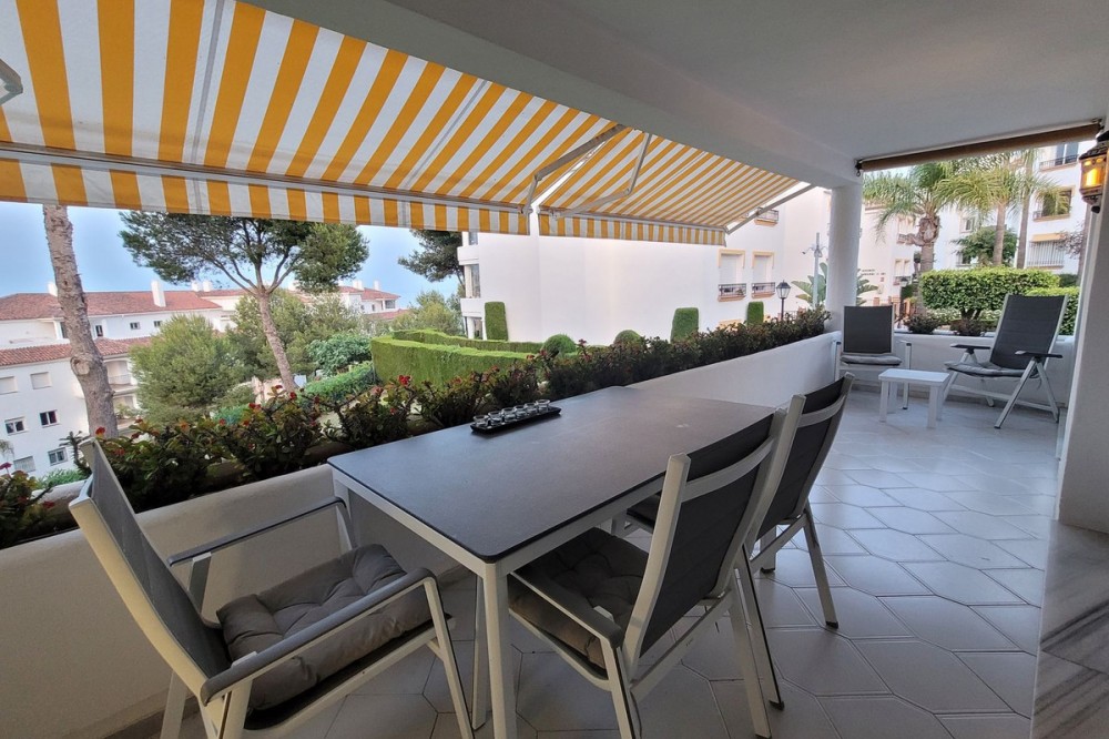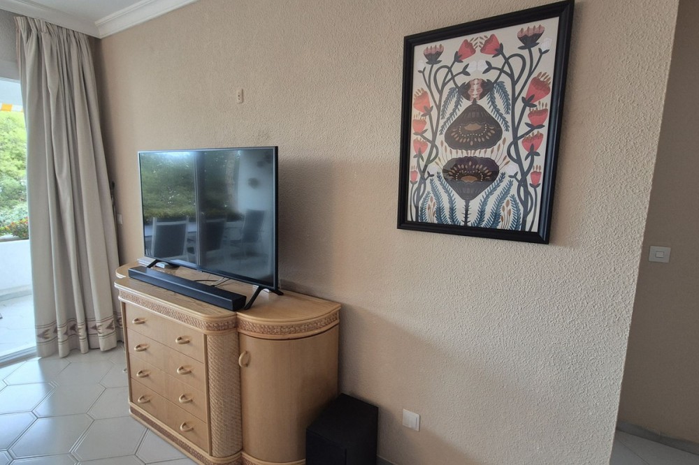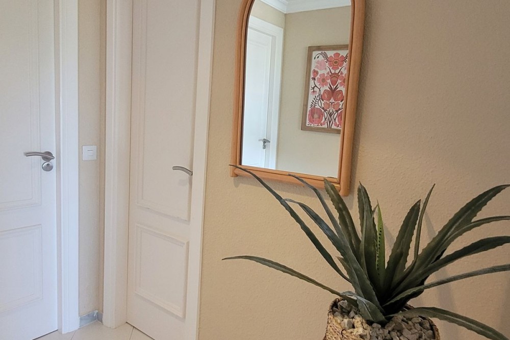 - Bright Corner Apartment with Sea and Mountain Views in Miraflores Welcome to this beautiful corner apartment with 3 bedrooms and 2 modern bathrooms, ideally located in the sought-after Rancho B complex in Miraflores, Mijas Costa. Offering space, light, and comfort, this home perfectly combines Mediterranean charm with modern living. Step outside onto the very spacious terrace and enjoy breathtaking sea and mountain views — with sunshine all year round, both in summer and winter. The complex features beautifully landscaped tropical gardens, two large communal swimming pools, a children’s pool, and a cozy pool bar and restaurant, all maintained to an excellent standard with clean facilities. Inside, the apartment boasts a bright and spacious living room with a brand-new three-panel sliding door (installed in 2025) that floods the space with natural light. The fully equipped, modernized kitchen is separate, keeping cooking odors away from the living areas and bedrooms. There are three generous bedrooms, all with built-in wardrobes and new mattresses. The master bedroom includes a stylish en-suite bathroom with a double sink and a large walk-in shower. Both bathrooms have been tastefully renovated with modern finishes. With air conditioning, high-speed fiber optic internet, and Chromecast, this apartment offers everything needed for comfortable year-round living or as a turn-key holiday home. Located just a 10-minute walk from Bombo Beach, you’ll find the popular La Familia chiringuito, a small supermarket, restaurants, bars, and shops — all within easy reach. This property also comes with a proven short-term rental history, boasting a Booking.com rating of 9.3, making it an excellent investment opportunity. A rental licence is in place and short-term rentals are allowed by the community. The current rental management can be continued if desired, offering immediate income and a smooth transition for new owners. Key Features -Corner apartment with 3 bedrooms and 2 modern bathrooms in Rancho B, Miraflores -Large sunny terrace with sea, garden, and mountain views -Two communal pools, a children’s pool, and an on-site seasonal pool bar/restaurant -Renovated bathrooms and a fully equipped separate kitchen -Bright living room with new three-panel sliding door (2025) and terrace access -Air conditioning, fiber optic internet, and mostly furnished -Proven short-term rental income with excellent reviews -Only 10 minutes’ walk to Bombo Beach, restaurants, bars, and local amenities