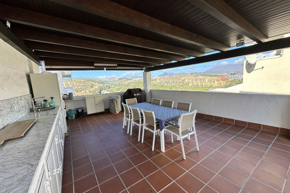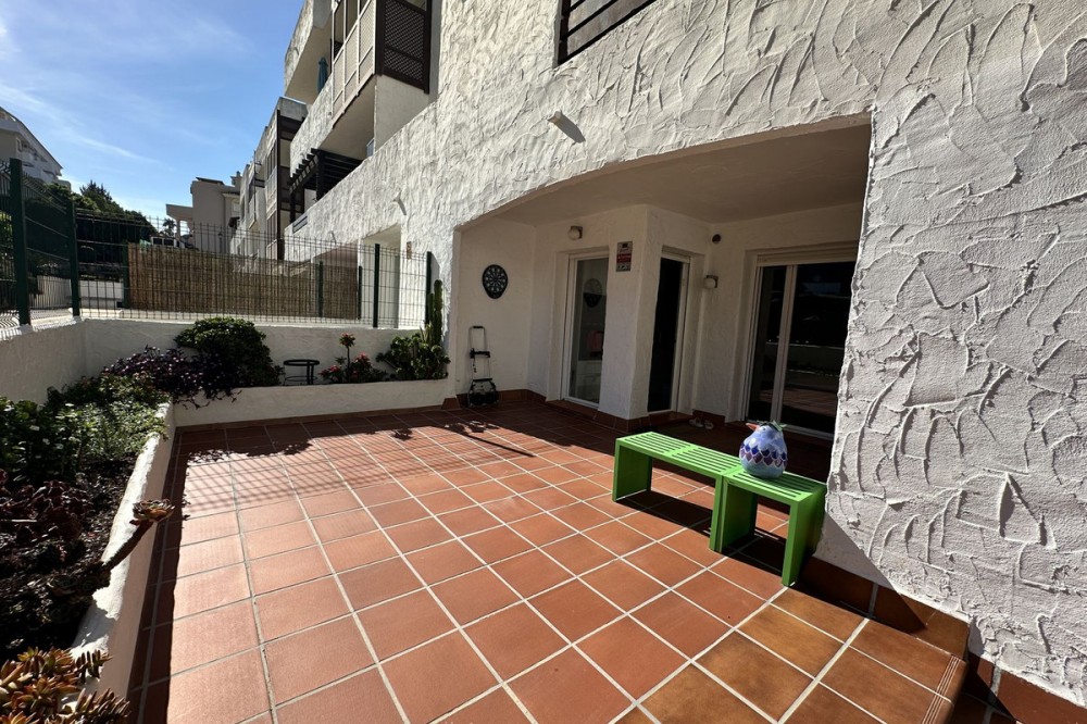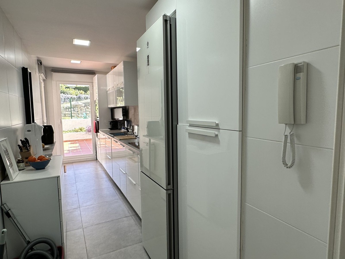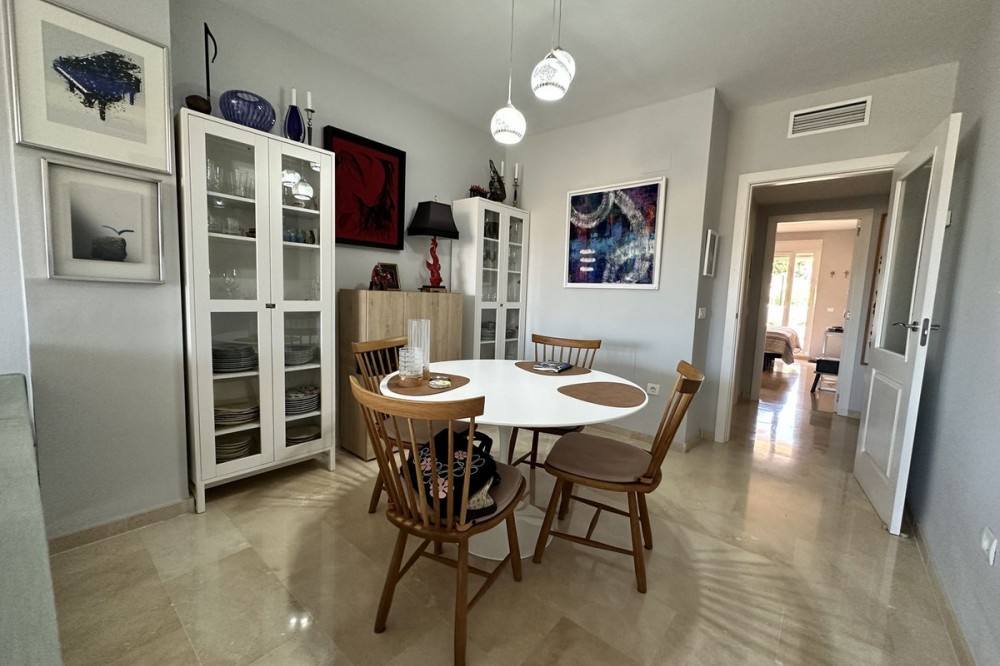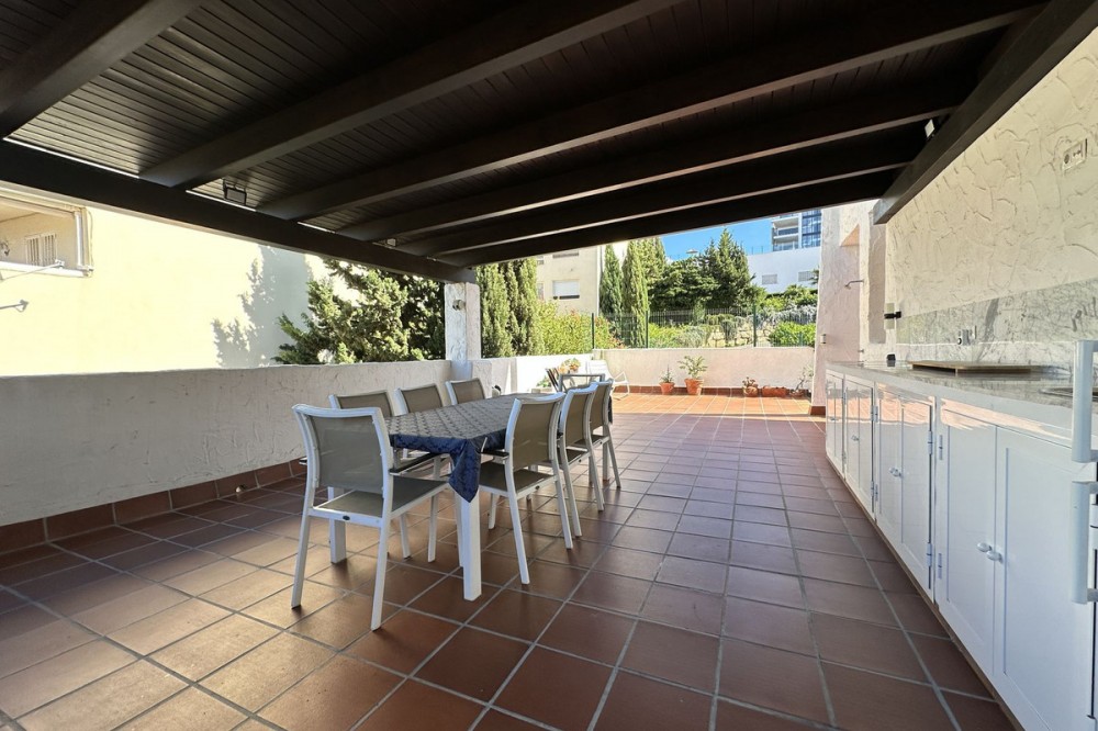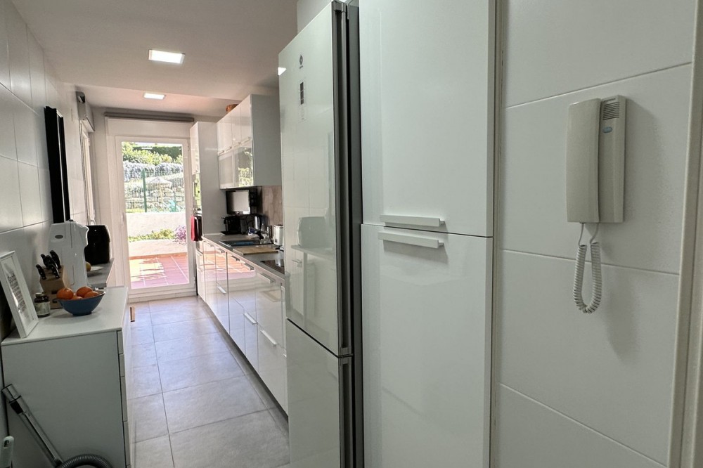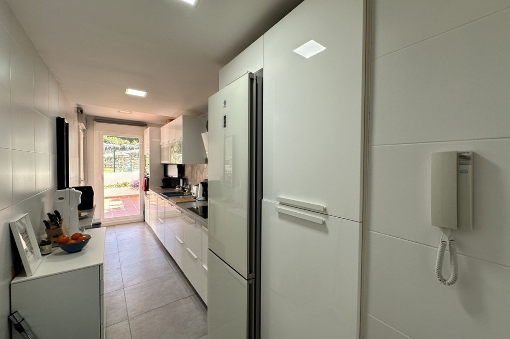 - Spacious ground floor apartment for sale in La Duquesa Golf. Best price per m², large terrace, modern kitchen, panoramic views, garage & pool access. Apartment for sale in La Duquesa Golf with exceptional value for money and the best price per square meter on the Costa del Sol. This beautiful ground floor apartment combines space, style, and location, offering unbeatable value for property buyers and investors in southern Spain. Located in a small and private urbanisation in the heart of La Duquesa Golf Course, this spacious corner apartment features large, bright bedrooms and enjoys sunlight all day long. The property is sold unfurnished and includes a newly renovated modern kitchen with direct access to a huge 95 m² terrace. The terrace offers a large covered area and an outdoor kitchen, ideal for entertaining guests, relaxing with family, or hosting BBQs under the Costa del Sol sun. From the main terrace, you can enjoy views of the communal swimming pool and landscaped gardens, while the front terrace, accessible from the bright living room and the master bedroom, has been enclosed with Lumon glass curtains. This additional space creates a perfect area for reading, dining, or simply enjoying the panoramic views of La Duquesa Golf Course, the surrounding mountains, and the peaceful Andalusian countryside. This apartment for sale in La Duquesa includes a private underground garage space and a storage room, making it a great choice for golfers or anyone seeking extra convenience. The location is perfect—just minutes away from the beautiful Puerto de la Duquesa Marina, San Luis de Sabinillas, and a short drive to Estepona, Sotogrande, and Marbella. You are close to beaches, golf courses, restaurants, and all amenities, making it ideal both as a holiday home and a high-yield investment property in Costa del Sol. Do not miss this opportunity to own one of the best value apartments in La Duquesa Golf. This property offers the best price per square meter in Costa del Sol, combining quality, location, and lifestyle at an unbeatable price.