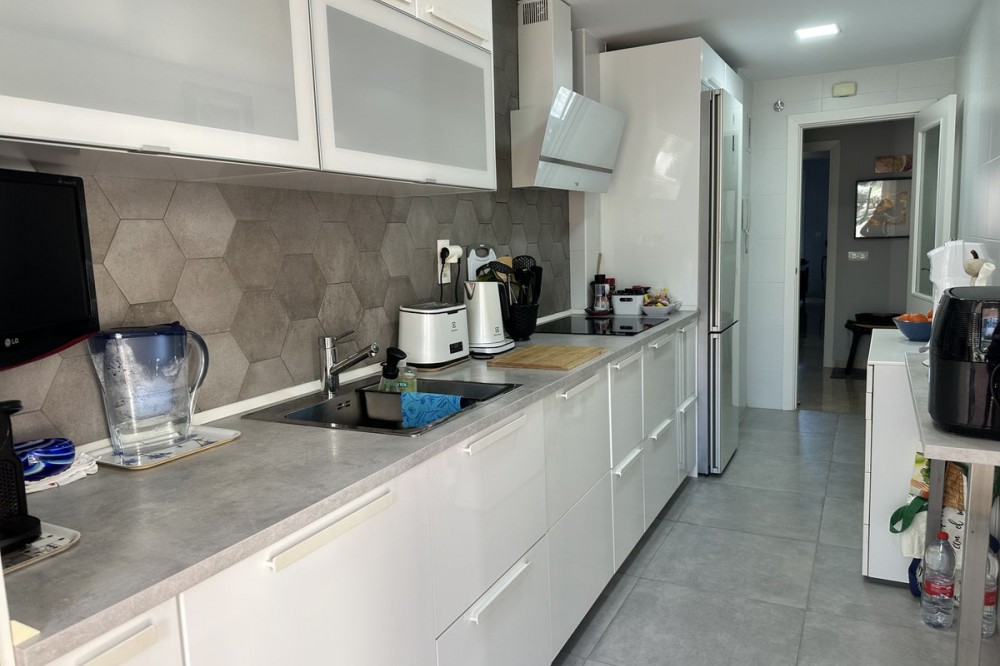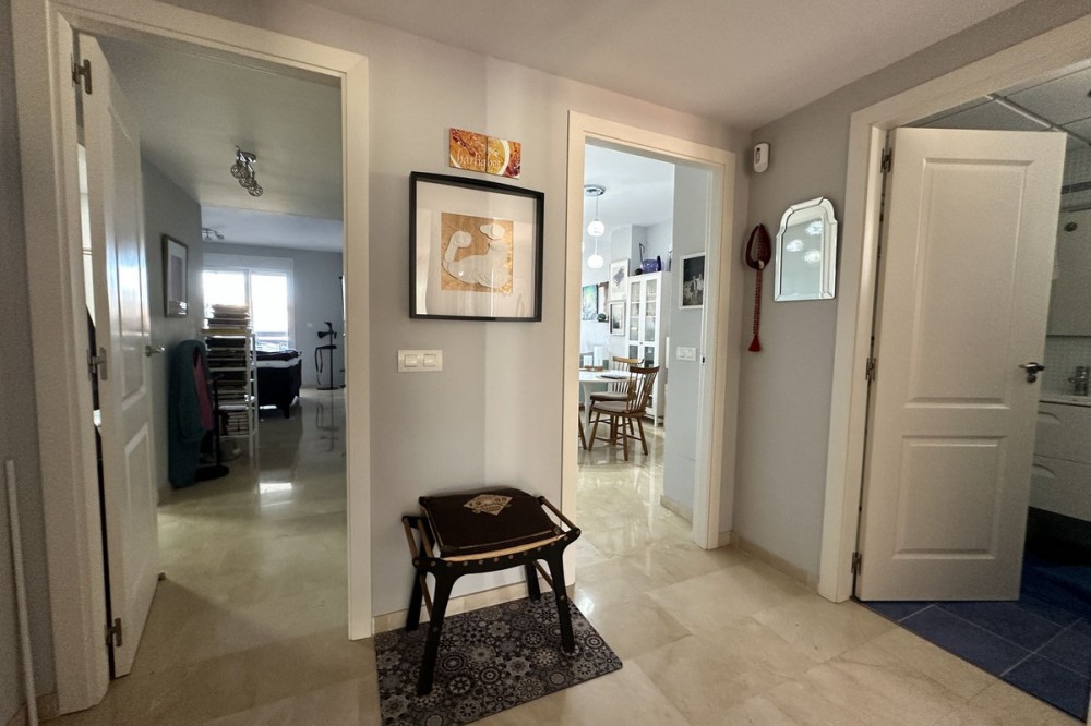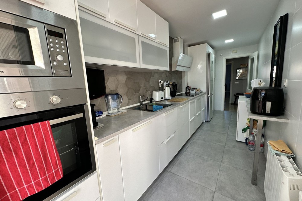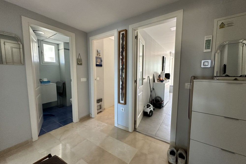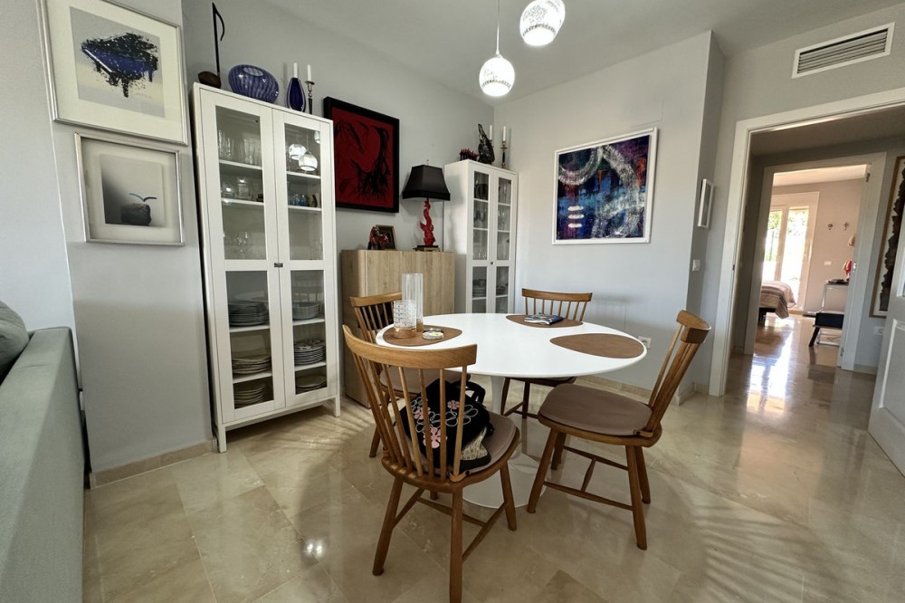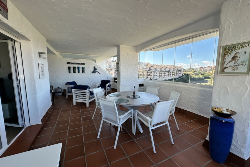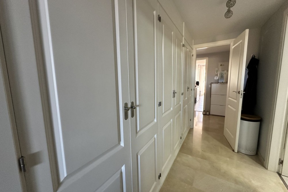 - Spacious ground floor apartment for sale in La Duquesa Golf. Best price per m², large terrace, modern kitchen, panoramic views, garage & pool access. Apartment for sale in La Duquesa Golf with exceptional value for money and the best price per square meter on the Costa del Sol. This beautiful ground floor apartment combines space, style, and location, offering unbeatable value for property buyers and investors in southern Spain. Located in a small and private urbanisation in the heart of La Duquesa Golf Course, this spacious corner apartment features large, bright bedrooms and enjoys sunlight all day long. The property is sold unfurnished and includes a newly renovated modern kitchen with direct access to a huge 95 m² terrace. The terrace offers a large covered area and an outdoor kitchen, ideal for entertaining guests, relaxing with family, or hosting BBQs under the Costa del Sol sun. From the main terrace, you can enjoy views of the communal swimming pool and landscaped gardens, while the front terrace, accessible from the bright living room and the master bedroom, has been enclosed with Lumon glass curtains. This additional space creates a perfect area for reading, dining, or simply enjoying the panoramic views of La Duquesa Golf Course, the surrounding mountains, and the peaceful Andalusian countryside. This apartment for sale in La Duquesa includes a private underground garage space and a storage room, making it a great choice for golfers or anyone seeking extra convenience. The location is perfect—just minutes away from the beautiful Puerto de la Duquesa Marina, San Luis de Sabinillas, and a short drive to Estepona, Sotogrande, and Marbella. You are close to beaches, golf courses, restaurants, and all amenities, making it ideal both as a holiday home and a high-yield investment property in Costa del Sol. Do not miss this opportunity to own one of the best value apartments in La Duquesa Golf. This property offers the best price per square meter in Costa del Sol, combining quality, location, and lifestyle at an unbeatable price.