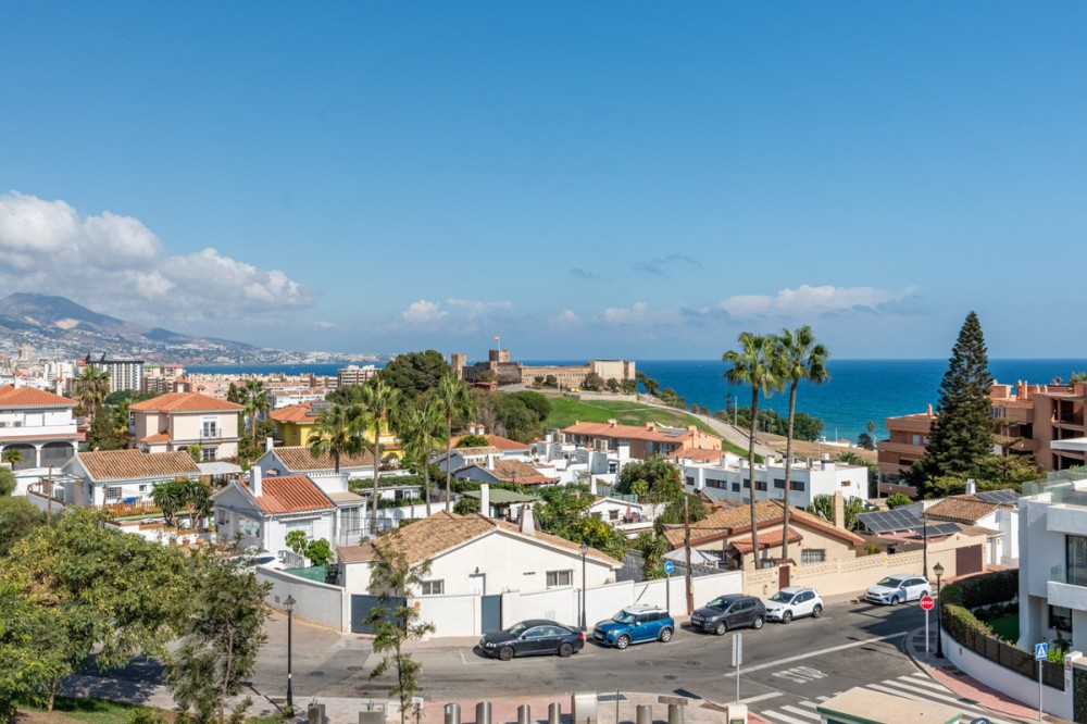 - Modern Elegance with Sea and Mountain Views in Fuengirola Welcome to this modern and stylish apartment where design and comfort blend seamlessly to create an atmosphere of relaxed sophistication. The open-plan layout allows natural light to flow throughout, connecting the living room, dining area, and kitchen into one inviting social space. From the spacious terrace, you can enjoy breathtaking views of both the coastline with the city of Fuengirola and even more important the Mediterranean Sea — the ideal spot for a morning coffee or to unwind as the sun sets over the coast. The apartment offers two generously sized bedrooms and two elegant bathrooms, including a luxurious en-suite to the master bedroom — your private retreat for peace and relaxation. Both bedrooms have direct access to the terrace, enhancing the sense of space and connection to the outdoors. In addition to the integrated AC climate control this apartment has underfloor heating trough out the whole apartment. Very nice during the short winter we have in Spain. Additional features include a private parking spaces and a large storage room, providing both convenience and practicality. Set within a modern gated community built in 2021, the residence offers an exceptional range of amenities. Enjoy two outdoor swimming pools, a heated indoor pool, sauna, steam room, and fully equipped gym. The community also includes co-working facilities, stylish social areas, and even a golf simulator — all designed for an elevated lifestyle. Located within walking distance of the beach and just minutes from Fuengirola’s main shopping districts, this apartment combines luxury living with everyday convenience. A perfect home — or investment — on the sunny Costa del Sol Distances Beach: 950 m 15min Fuengirola train station: 8 min Marbella: 25km, 30 Min Airport: 26Km 18 Min