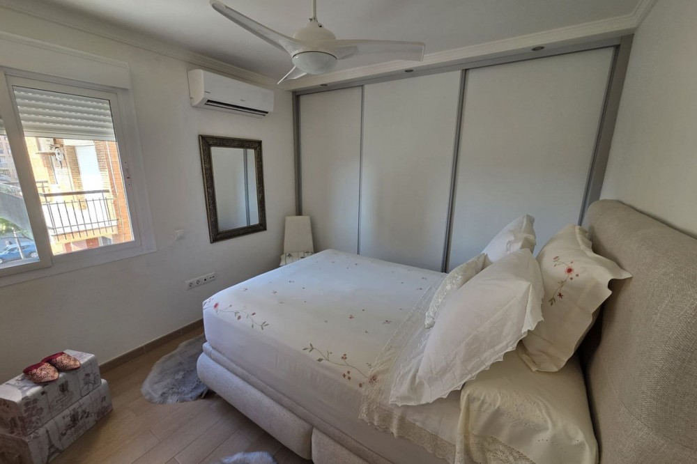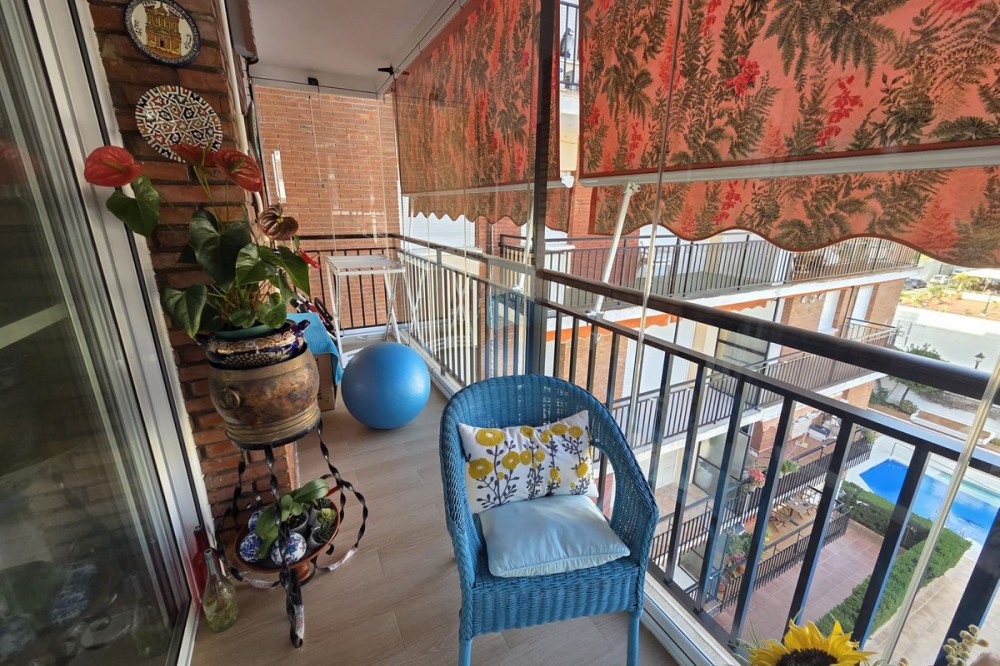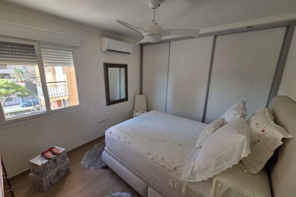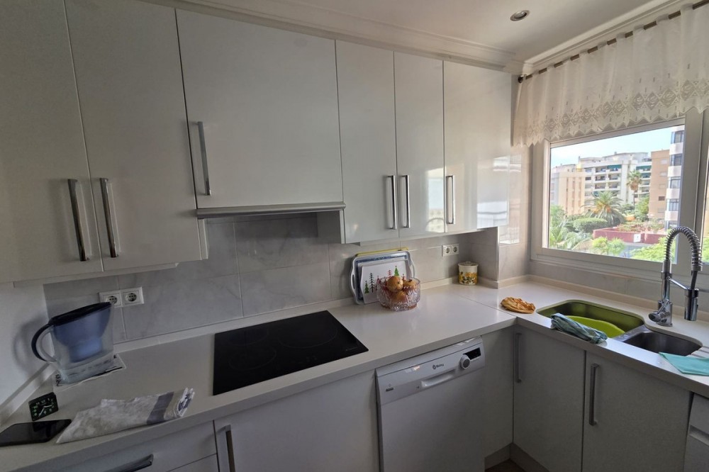 - Excellent apartment located just 300 meters from the beach in a highly sought-after location in Fuengirola, close to all amenities, supermarkets, schools, train and bus stations. The apartment has been completely renovated and is in impeccable condition. It comprises a living-dining room, a terrace with Lumon glass, 2 spacious bedrooms with wardrobes, 2 bathrooms, and a kitchen with space for a dining area where daily life takes place. It also has a communal swimming pool and parking.
