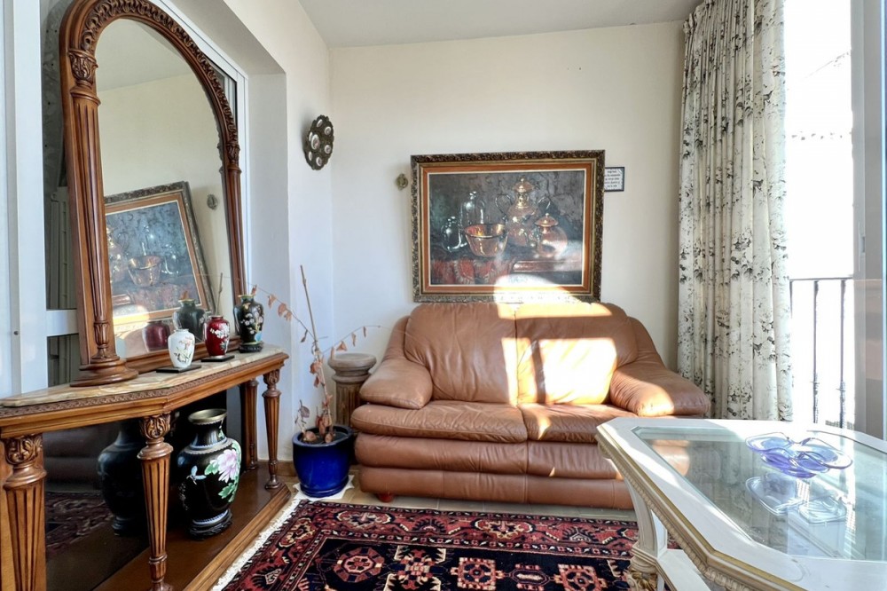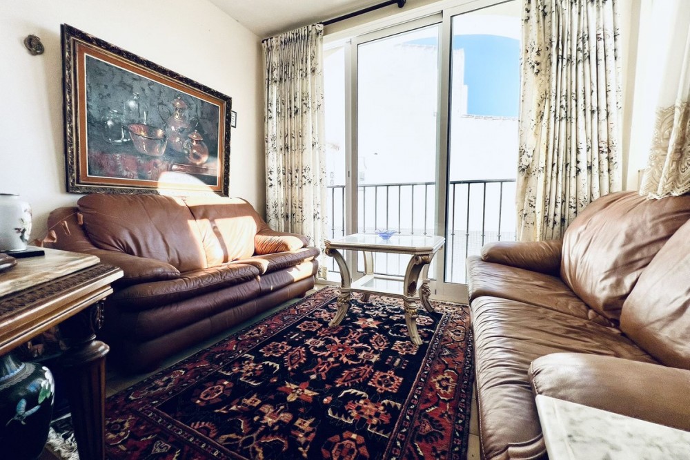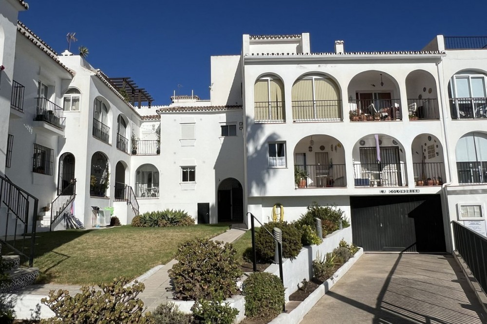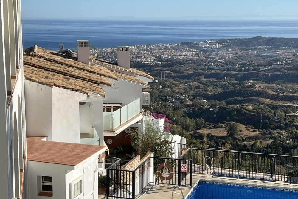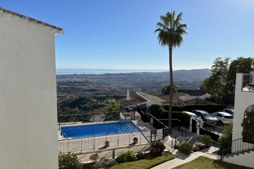 - LOVELY TWO-BEDROOM APARTMENT in the heart of Mijas Pueblo boasting AMAZING SEA VIEWS! Located in a quiet residential gated community on the west side of town. Only a short stroll from Bar el Niño and parking area. Situated on a second floor (top floor) this apartment of approx 60 m2 has a living/dining room, fitted kitchen, 2 bedrooms and 1 bathroom. Enclosed terrace is now a sitting room. A/C. Beautiful views to Mediterranean sea, communal swimming pool and mature gardens. Nice holiday flat. In need of renovations and TLC. VIEWINGS ARE RECOMMENDED!