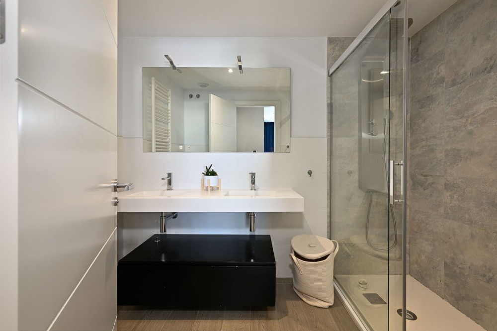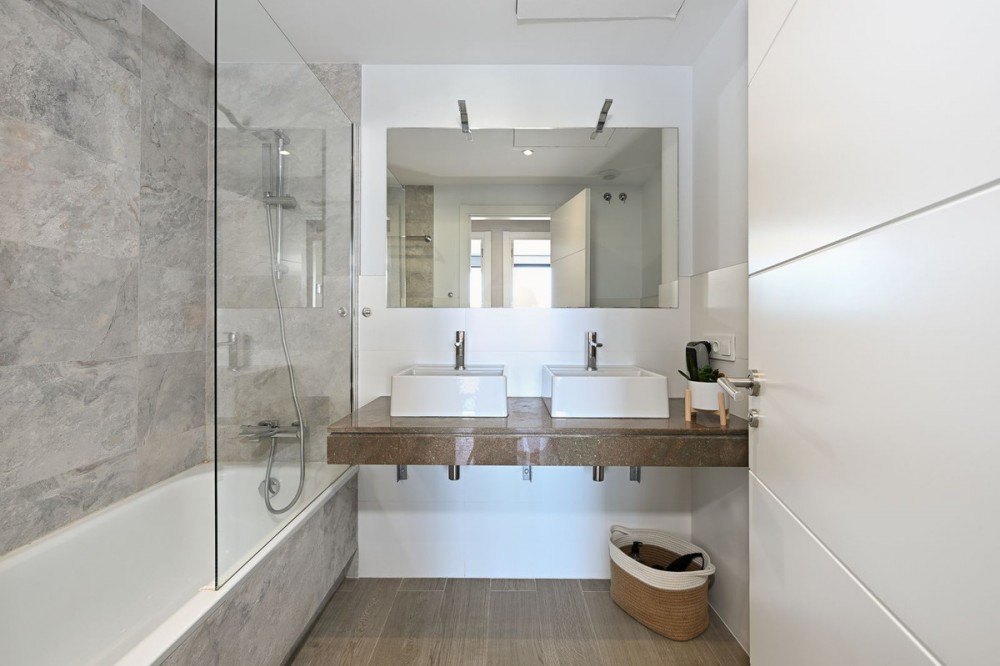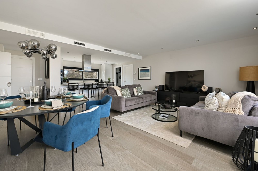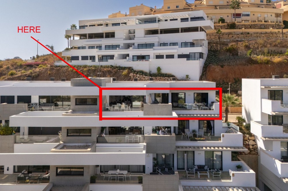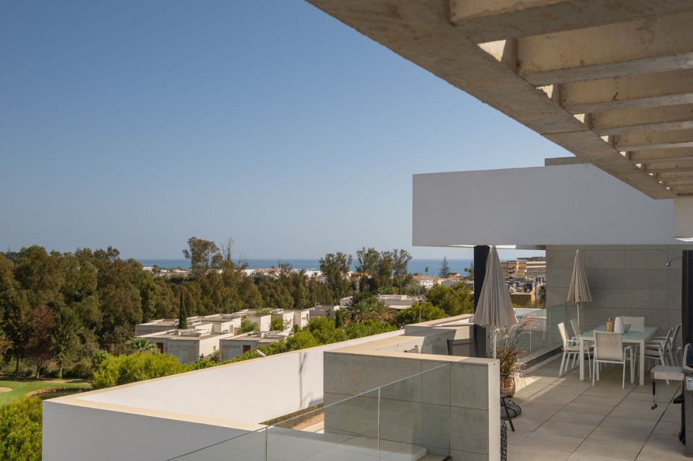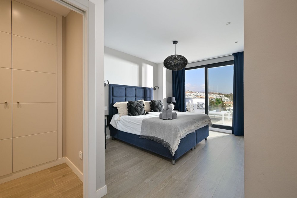 - Penthouse Apartment with 3 Bedrooms and Fantastic Views – Navigolf Phase 4 Welcome to this exclusive penthouse apartment overlooking La Noria Golf with partial sea views, located in the sought-after Navigolf Phase 4 – a modern and elegant residential complex in the heart of La Cala de Mijas. Here you live within walking distance of everything – the beach, town centre, restaurants, cafés and shops – while enjoying peaceful surroundings, stunning views and top-level comfort. Key Features: - 3 bedrooms - 2 bathrooms + 1 guest toilet - Large and sunny terrace with views over the golf course and partial sea views - Built in 2021 - Located in Navigolf Phase 4, Block B - 1 storage room + 2 underground parking spaces - Individual air conditioning in all rooms - Electric blinds installed in all bedrooms - Two beautiful swimming pool areas, one completed in 2025 - Abundant natural light and a bright, modern design Upgrades Since completion, the apartment has been enhanced with a number of quality improvements and practical features that add both comfort and functionality: - Kitchen with multiple drawers instead of open shelves – a more exclusive and user-friendly design - Wardrobes with additional internal fittings and plenty of drawers - Zoned A/C system with WiFi control - Underfloor heating (water-based) in the living room and master bedroom (pre-installation also in the other two bedrooms) - Entire apartment painted in Washed Linen by Jotun – a soft, modern colour tone - Extensive use of recessed downlights for pleasant lighting - Option to lock off the master bedroom and bathroom - Large storage room of approx. 8–10 m² - Alarm system from Sector Alarm - UV window film in living room and kitchen to reduce heat and UV radiation - Outdoor shower on the terrace with solar-heated water Location: This apartment boasts an ideal location with all amenities right at your doorstep: La Noria Golf: directly in front of the complex Carrefour supermarket and shops: approx. 5 minutes on foot Beach and La Cala centre: approx. 10 minutes on foot Easy access to the main coastal road connecting Marbella and Málaga La Cala de Mijas is one of the most desirable areas on the Costa del Sol, known for its charming town atmosphere, beachfront promenade, and excellent selection of restaurants and cafés. About Navigolf Phase 4: Navigolf Phase 4 is the newest and most modern phase of the renowned Navigolf development, completed in 2021. The complex combines contemporary architecture with functional design and beautifully maintained communal areas. Residents enjoy landscaped gardens, two swimming pools (one newly completed in 2025), a padel court and children’s play areas. The community is known for its high quality, security and tranquil, yet central, location. Summary: A stylish and contemporary penthouse apartment with high-quality finishes, spacious outdoor areas and unbeatable location – perfect as a holiday home, full-time residence or investment in the heart of La Cala de Mijas.