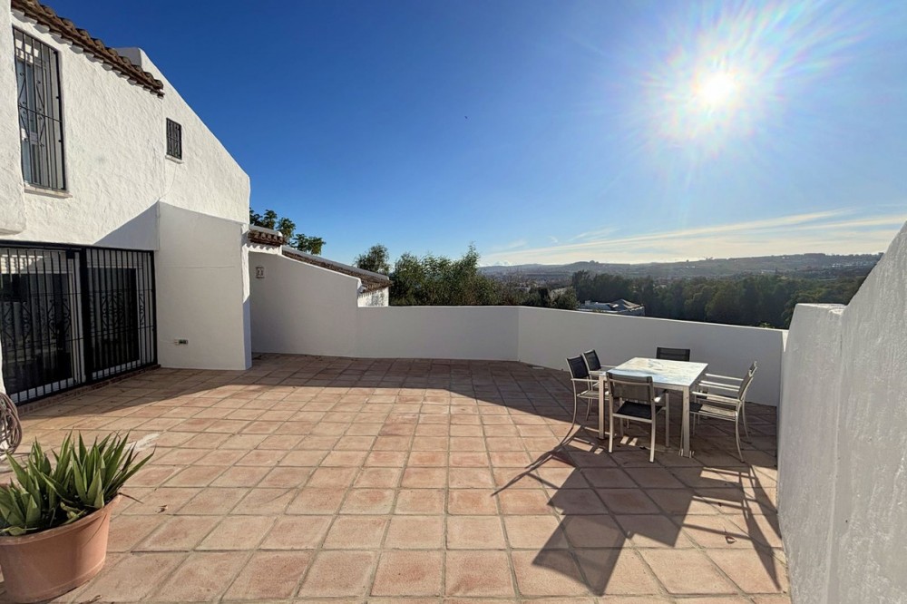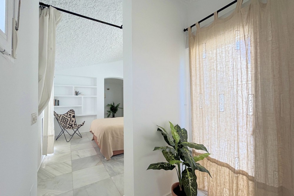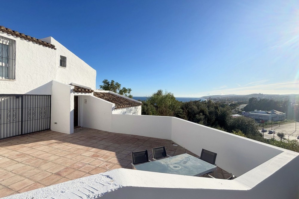 - CHARMING SEMI-DETACHED HOUSE WITH SPACIOUS TERRACES AND VIEWS OF THE BAY OF CASARES. Privileged location in Casares Costa, just a 7-minute walk from the beach, in a peaceful and well-connected area, perfect for those seeking tranquility and proximity to the sea. This cozy semi-detached home with traditional Andalusian and rustic character stands out for its large open terrace, ideal for enjoying the sun and pleasant outdoor gatherings. Upon entering the property, a living room with a fireplace creates a warm and homely atmosphere, connected to an open-plan kitchen that leads out to a terrace with beautiful views of the Bay of Casares. On the first floor, the master bedroom with en-suite bathroom opens onto a private terrace offering wonderful sea views, while on the lower level there is a second bedroom and a full bathroom, providing comfort and privacy. A bright home full of Andalusian charm, ideal both as a permanent residence or as a delightful holiday retreat on the coast.