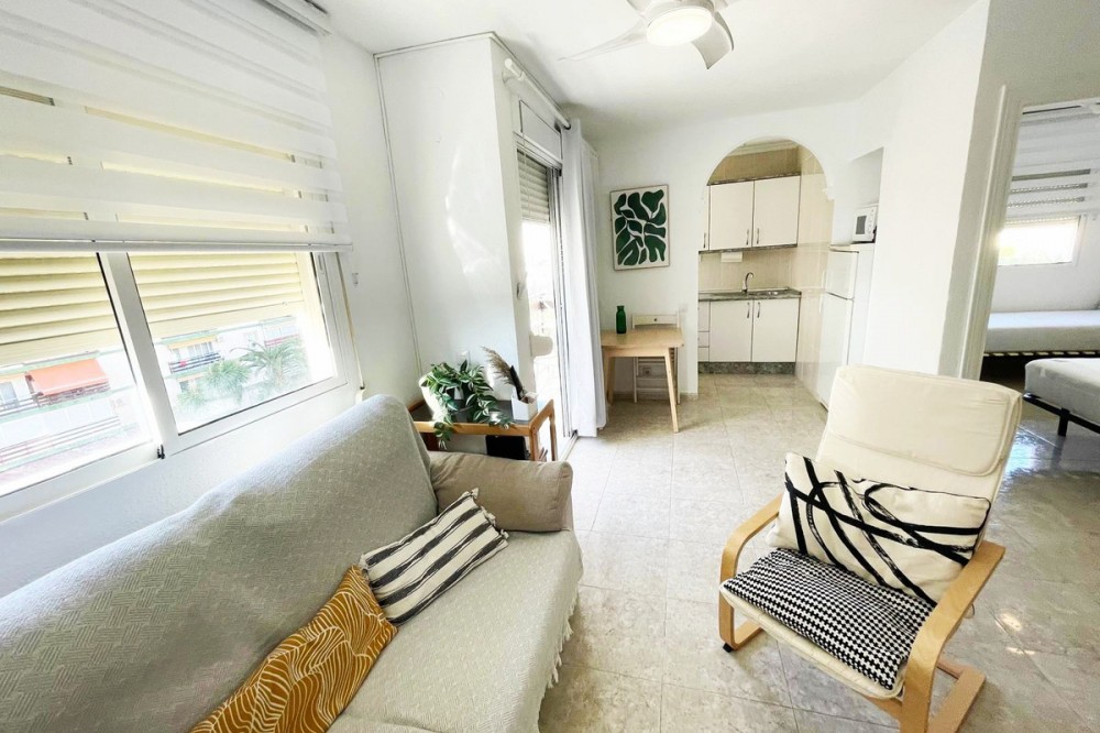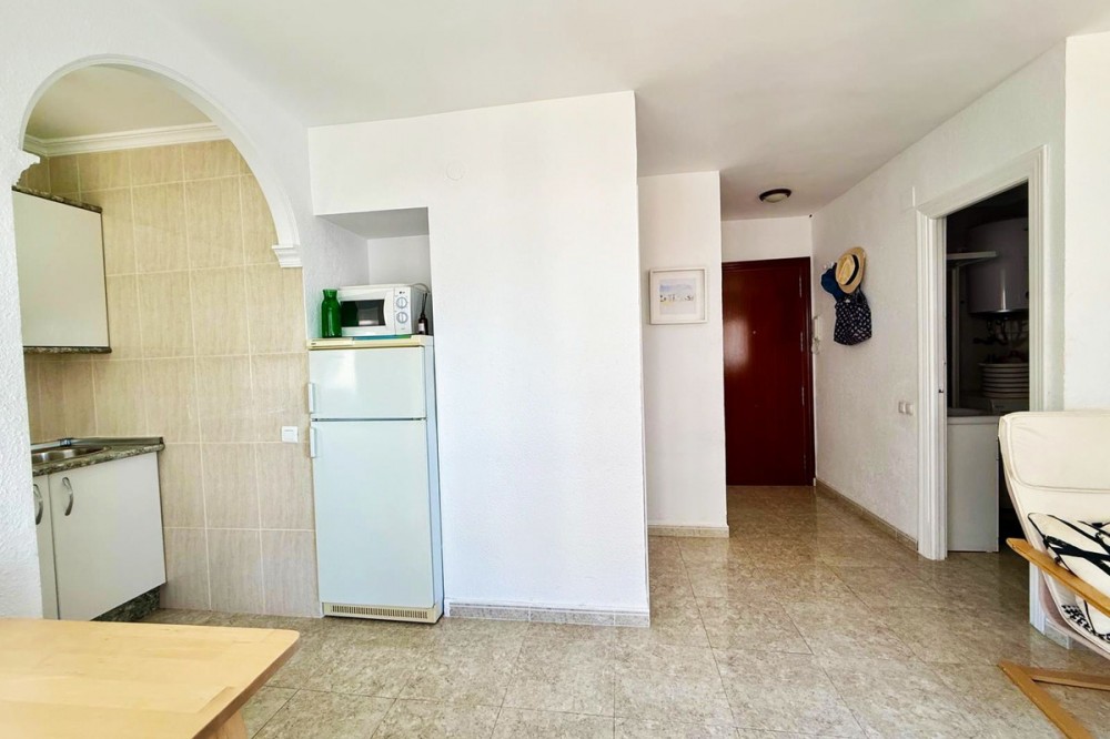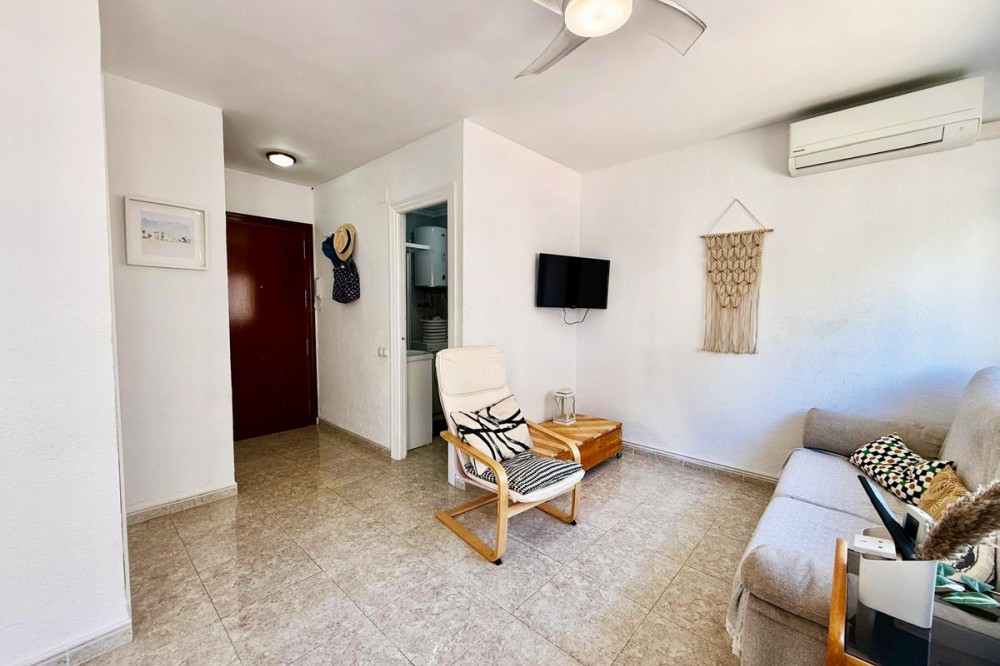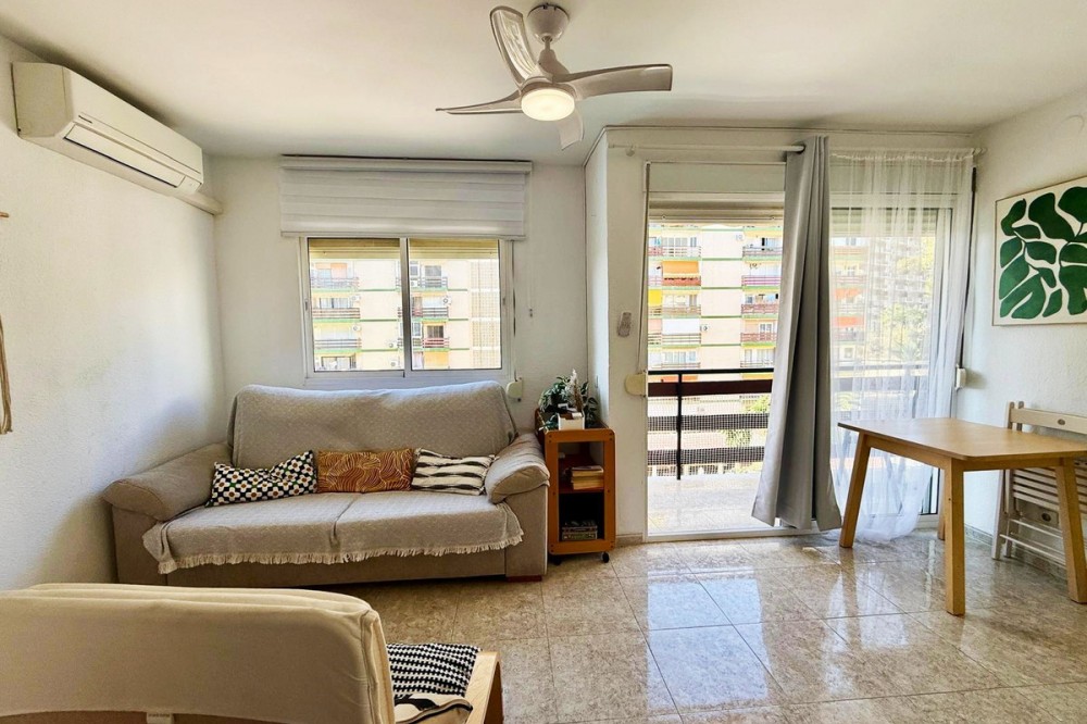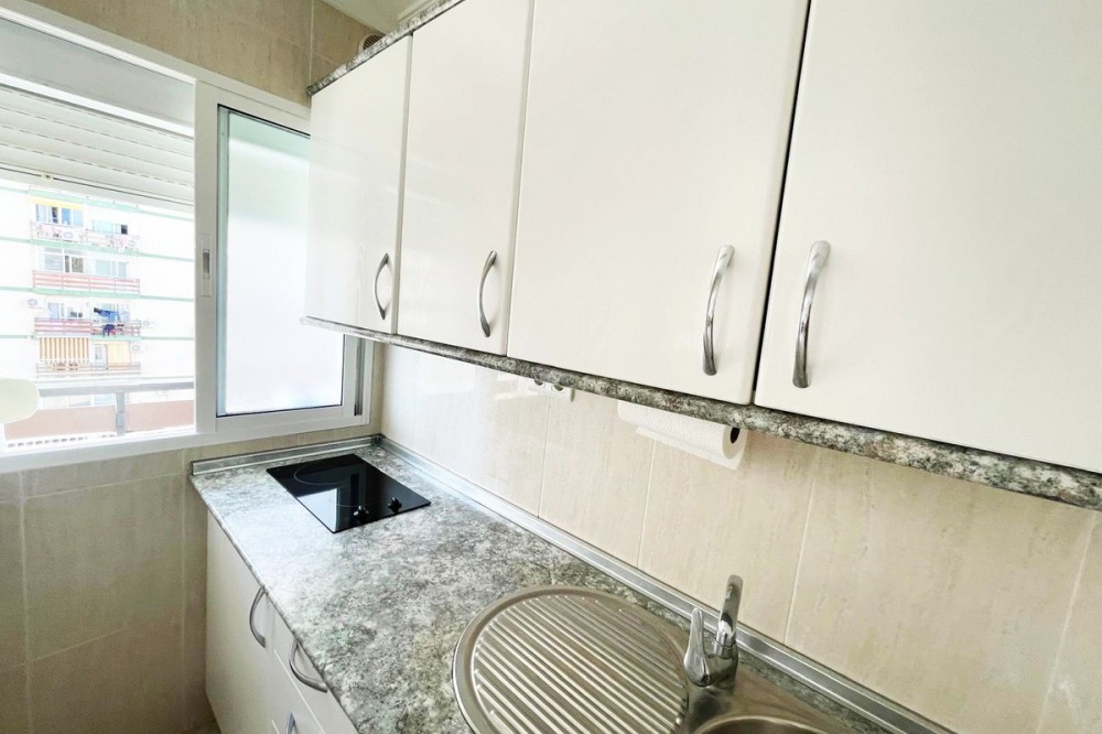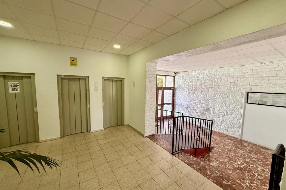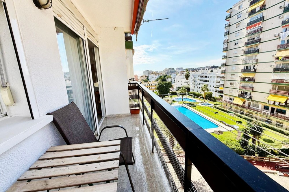 - One-bedroom flat for sale in Arroyo de la Miel (Benalmádena) on the fifth floor with lift, south-west facing, with views of the sea and the swimming pool, next to La Paloma Park and a few metres from the beach. This bright apartment has a functional and practical living-dining room with split air conditioning, with access to a private terrace, where you can enjoy panoramic views of the sea and the pool. One double bedroom with fitted wardrobe, the kitchen is fully equipped and the bathroom has been recently renovated with a shower tray and a brand new 80-litre electric water heater. The flat is located in a residential complex with three swimming pools and a bar-restaurant, perfect for leisure, and in an area with easy parking. The property has a tourist licence, which is a plus for high-yield holiday rentals. Ideal as a first or second home, for rental or as an investment.