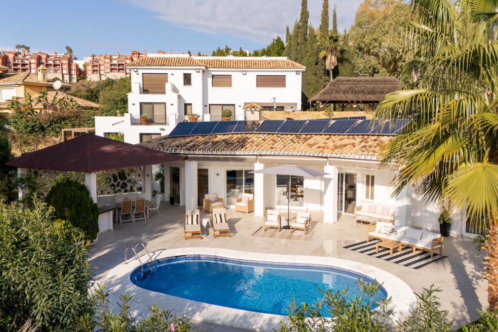 - Introducing a stunning contemporary villa located in the prestigious, gated community of El Herrojo, Benahavís — one of Marbella’s most desirable addresses. This elegant home combines modern luxury with serene Mediterranean living, offering privacy, security, and breathtaking natural surroundings. Boasting 4 spacious bedrooms and 4 beautifully finished bathrooms, plus an additional guest toilet, this residence provides effortless comfort and refined style for family living or entertaining guests. The villa features generous open-plan living areas flooded with natural light, and seamless transitions to the impressive outdoor spaces. A private swimming pool, manicured garden, and multiple terraces create the perfect environment for enjoying the Costa del Sol climate and panoramic views. Additionally, the property offers the rare opportunity to build a further floor, allowing new owners the potential to expand and customize the home to suit their lifestyle or investment vision. With its combination of sleek design, tranquil outdoor areas, and prime location within a secure luxury enclave, this villa in El Herrojo is a standout opportunity in one of the coast’s most sought-after neighborhoods.