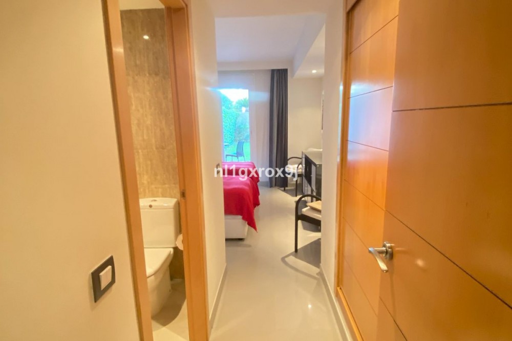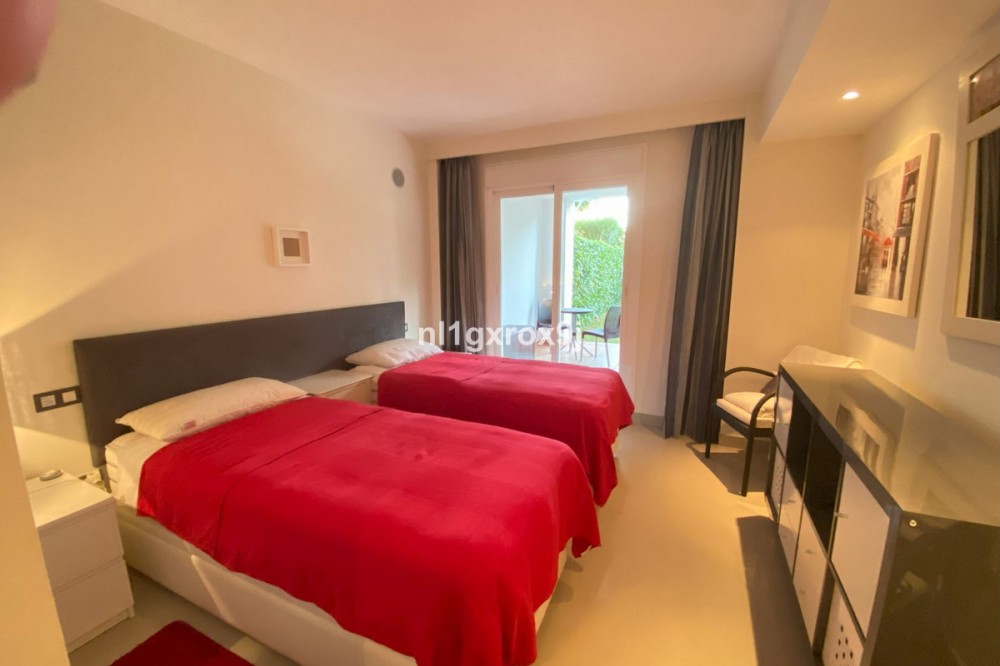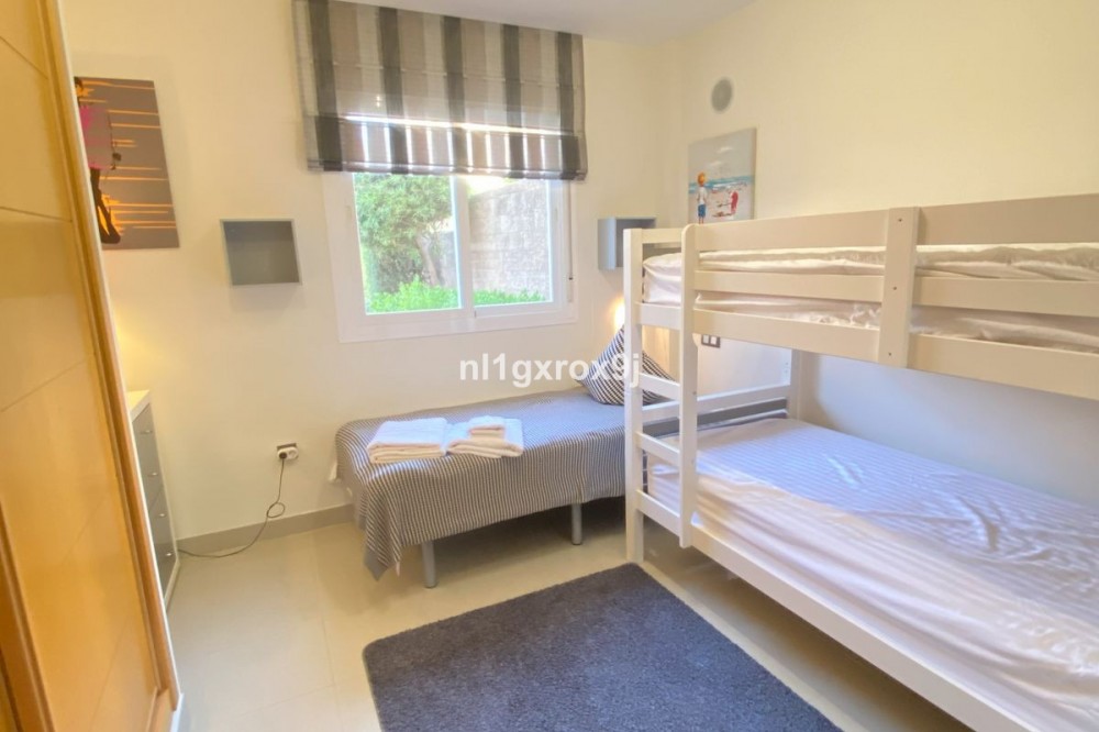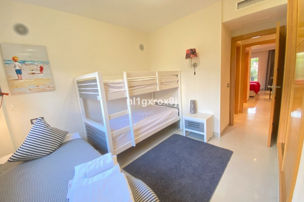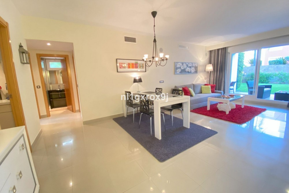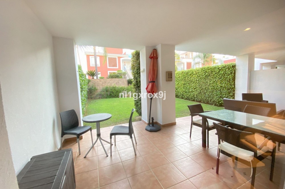 - The newly appointed and tastefully furnished ground floor apartment is bright and spacious with its large terrace and private garden. The apartment has two bedrooms and 2 bathrooms with corresponding bathrooms equipped with a hydro-massage shower and Jacuzzi bath, a generous-size living-dining room, fully equipped kitchen, a private garden and terrace. The price includes a dedicated underground parking space. Easily accessible and located just 15 minutes on the motorway from the towns of Estepona and Marbella, Cortijo del Mar Resort is a complex of appealing apartments ranging in size from 81 to 191m². At the heart of the resort is a large lagoon-shaped pool surrounded by spectacular tropical gardens. In the gardens, the Kambalaya restaurant-bar is open to guests from Easter to the end of October.