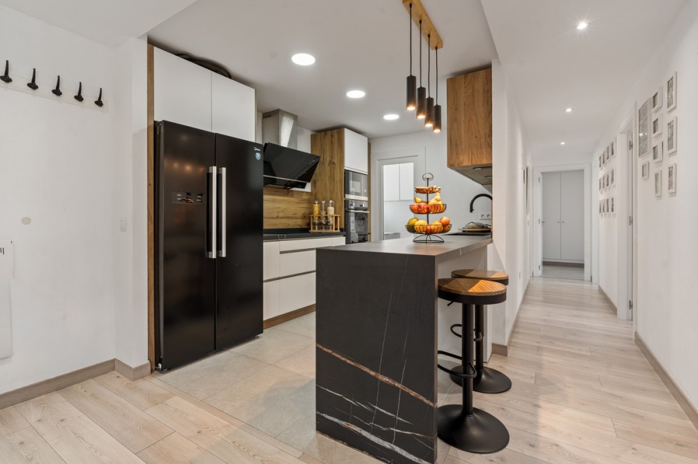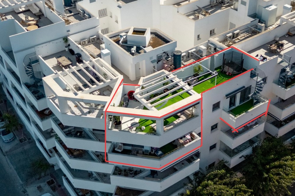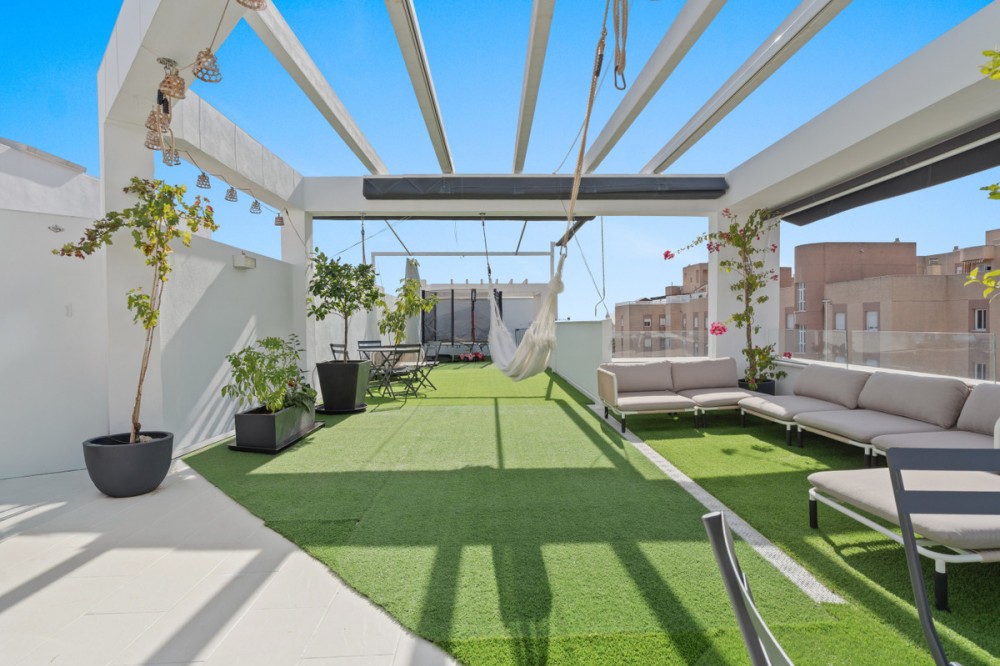 - In the heart of Estepona, where Andalusian charm meets modern living, lies this stunning four-bedroom duplex penthouse in the prestigious Estepona Gardens complex, completed in 2023.A bright, elegant, and fully exterior residence that combines sea and mountain views with a contemporary design created to be enjoyed every day.With 149.59 m² built and 121.27 m² usable space, plus a spectacular private rooftop terrace of about 60 m², this property offers spaciousness, calm, and well-being in every corner.From the very first moment, the home conveys serenity and balance.The main living room, with large windows opening onto the terrace, invites you to relax and enjoy the natural light that floods every space from morning to sunset.The open-plan kitchen, designed by Schmidt Cocinas, combines style and functionality with top-brand appliances and the innovative Quooker system, providing filtered cold water, boiling water, and sparkling water — all from the same tap.The bedrooms, bright and spacious, feature built-in wardrobes and high-quality finishes. Two of them have direct access to the upper terrace.The bathrooms, fitted with Roca furniture and soft-close sanitary fittings, stand out for their modern design and relaxing atmosphere.On the upper floor, the soul of the home is revealed: a large private rooftop terrace, designed to fully embrace the Mediterranean lifestyle.It includes a German-made Goriller outdoor kitchen, fully equipped with sink, refrigerator, and an impressive six-burner grill with a rotisserie motor.The terrace opens in every direction, offering views of the sea, the mountains, and Estepona’s white rooftops.An ideal space for both relaxation and gatherings, where every sunset becomes a special moment. It features retractable awnings, automatic irrigation, solar-powered video surveillance, and direct access from two bedrooms — seamlessly integrating outdoor and indoor living.The penthouse includes central air conditioning/heating, high-quality mosquito screens, and an independent laundry room with natural light.The building, with only eight neighbors, ensures privacy, peace, and exclusivity.The communal areas include a swimming pool for adults and children, a playground, a calisthenics area, and a cozy social lounge for meetings or co-working, all surrounded by well-kept gardens and a family-friendly atmosphere.The location is unbeatable: just seven minutes’ walk to the beach, five to the Old Town, and three to schools, supermarkets, or the health center.The property includes a parking space and a 15 m² storage room, with the option to purchase a second parking space for €22,000 — a rare opportunity in the very center of Estepona.The area is lively all year round, with permanent residents, open shops, and the authentic Andalusian spirit present in every corner.A space that inspires, invites enjoyment, and embodies the essence of modern Mediterranean living — light, space, comfort, and elegance at their finest.The Abbreviated Information Document (D.I.A.) is available.Expenses: Taxes (ITP or VAT + Stamp Duty) + Notary and Land Registry fees.Ref.: AC1