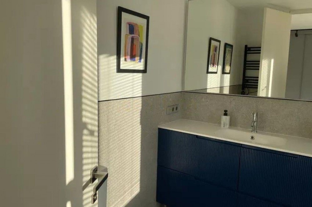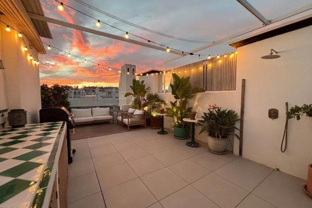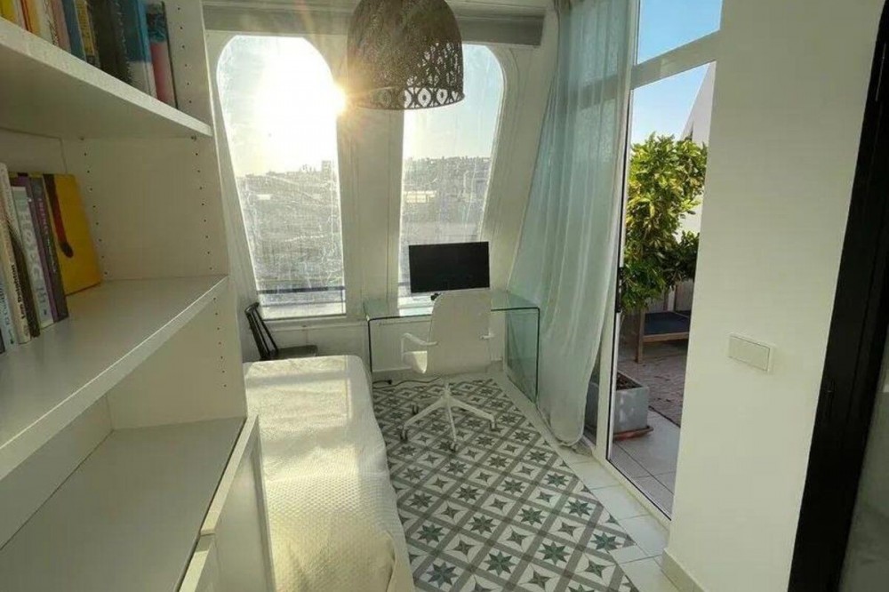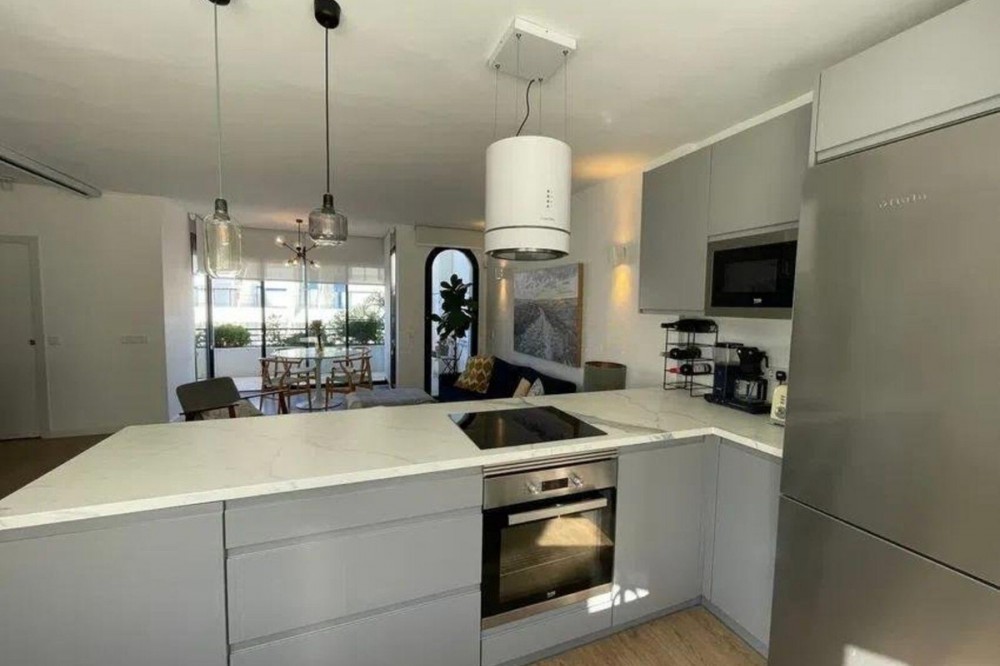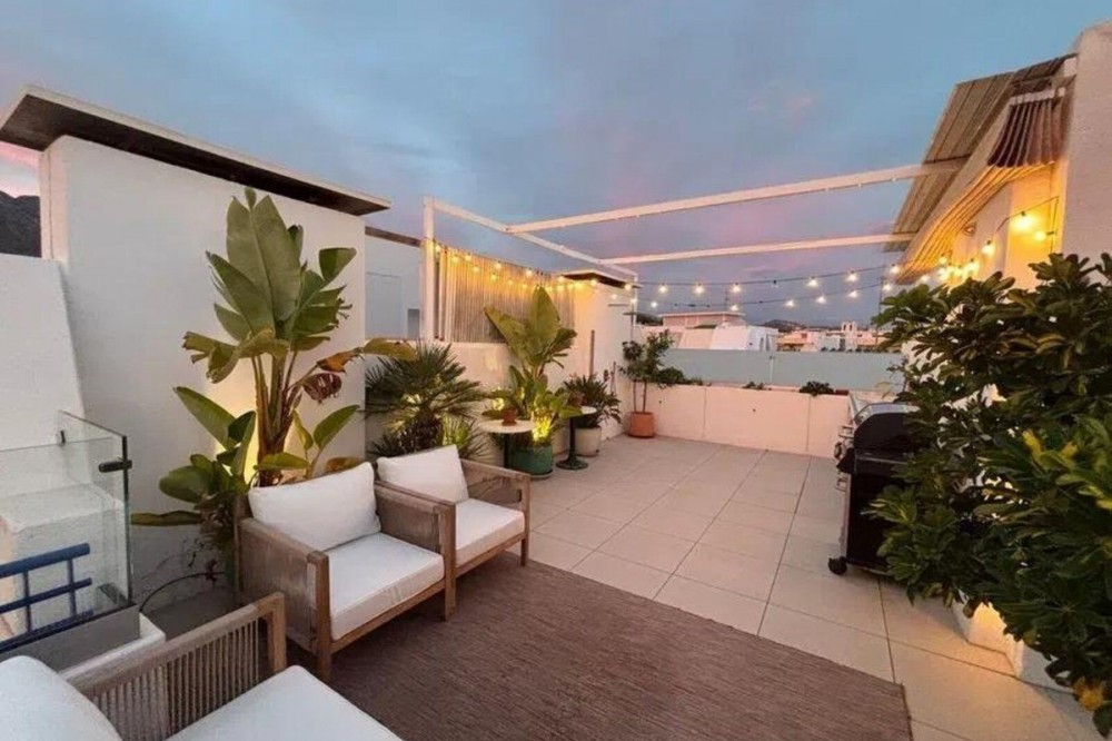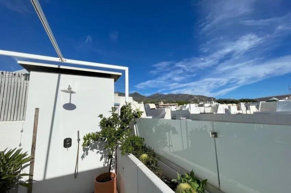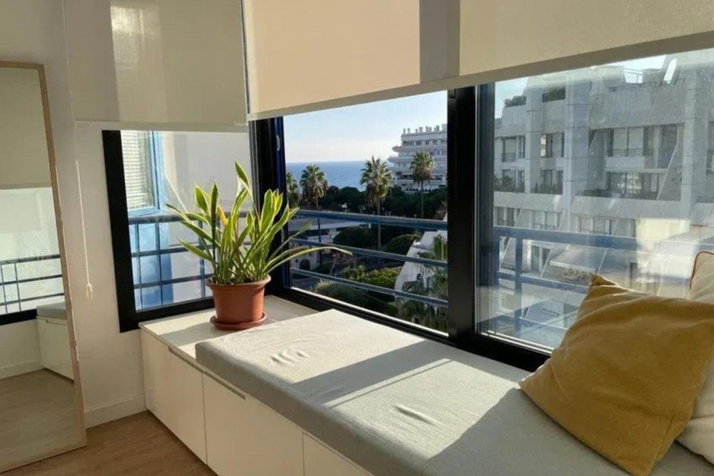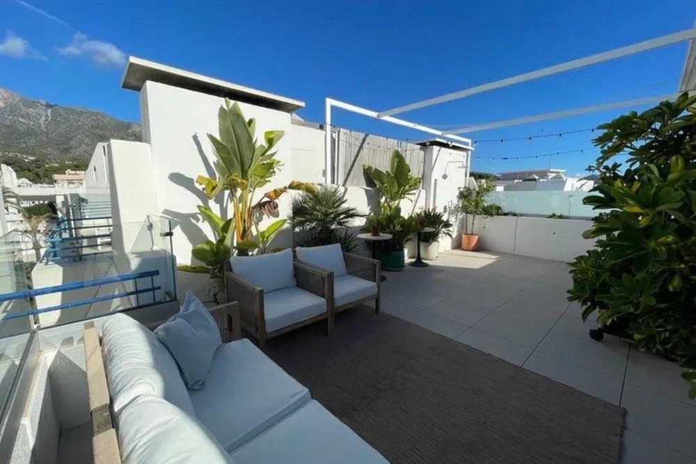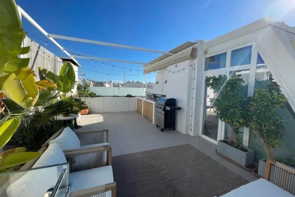 - Renovated penthouse with sea views just steps from the beach in Marbella! This elegant penthouse, located in an exclusive residential area of Marbella/Golden Mile, offers a unique living experience just steps from the promenade and the beach. Completely renovated with high-quality materials, the property is distributed over three levels, designed to make the most of natural light and views of the Mediterranean. On the main floor, a spacious living room opens onto a sunny terrace, ideal for relaxing or enjoying gatherings with friends and family. The open-plan, modern kitchen is fully equipped with high-end appliances, combining style and functionality. On this same level, there is a guest toilet. On the upper floor, there are two en-suite bedrooms, both with luxurious finishes and careful design. The master bedroom also has a cozy reading or relaxation area, from which you can enjoy partial sea views. The upper level houses the large private solarium, a spectacular space with a barbecue area and panoramic views of the sea and mountains. On this floor there is also a separate study, ideal as an office, reading room, or additional bedroom. The Marbella House community stands out for its security and exclusivity, with 24-hour surveillance, tropical gardens, swimming pool, gym, sauna, and squash court. The property includes a large garage with space for one car and two motorcycles plus a storage room.