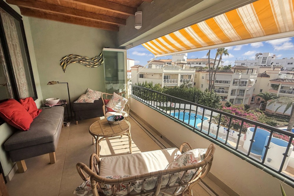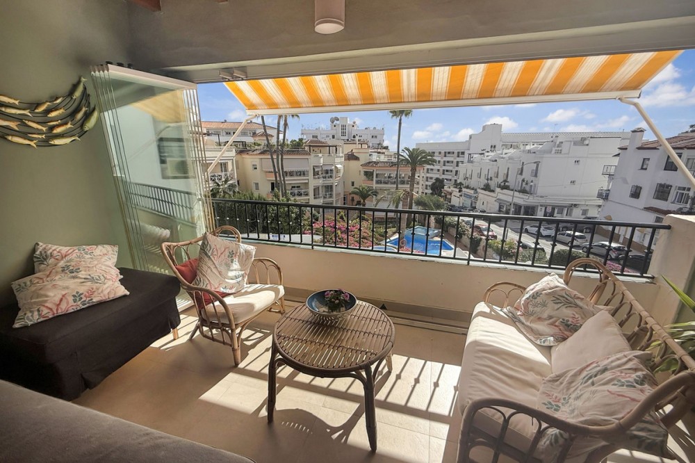 - Prime Apartment Next to the Parador South Facing Terrace Pool and Tourist Licence In a great position next to the Parador, this apartment is surrounded by everything that makes Nerja special. Steps from the door are lively tapas bars and charming restaurants, while Burriana Beach and the renowned Balcón de Europa are within walking distance. The property has two bedrooms, two bathrooms, and a bright living area that opens onto a south facing terrace of approximately 12 m². Folding glass curtains allow the terrace to be enjoyed all year round, open in summer or enclosed on cooler days. Inside, the apartment has a warm, homely feel with comfortable, well sized rooms. It is part of a small, well kept community with a lovely communal garden and swimming pool. With a tourist licence and established occasional rentals, the apartment offers the flexibility to continue part time or let full time as a valuable investment. A complete apartment in a sought after location, next to the Parador, ready to enjoy from day one.