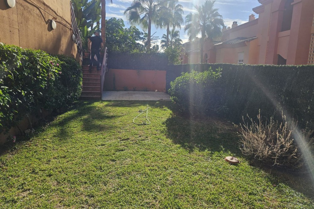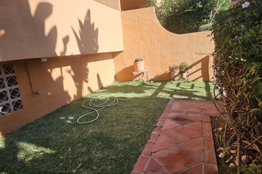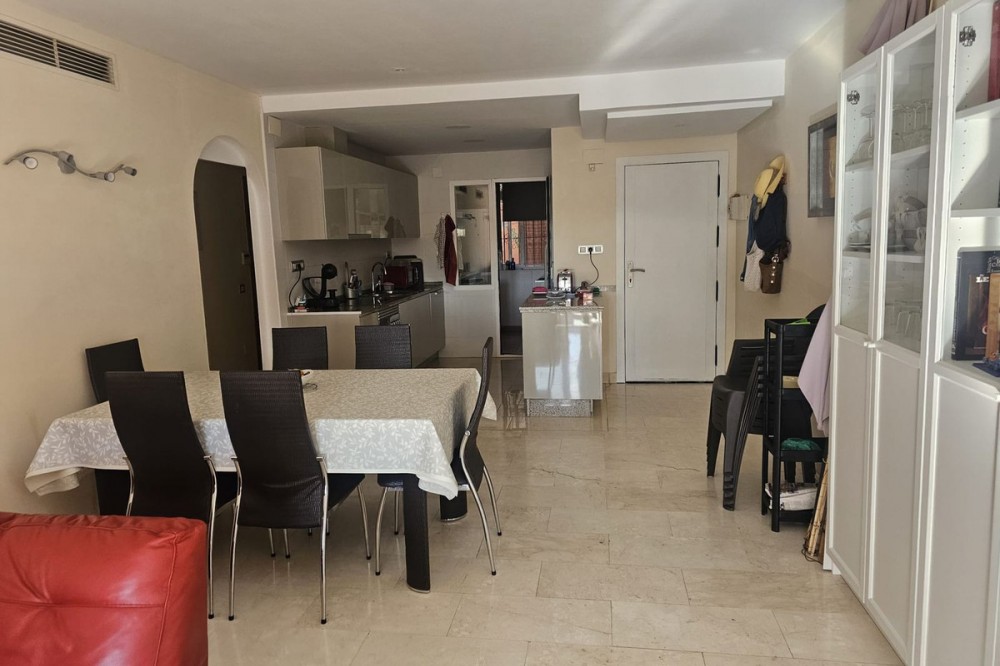 - Don't miss out on this incredible ground floor flat with a private garden! With 3 spacious bedrooms with fitted wardrobes, 2 modern bathrooms (bathtub and shower), and a cosy living-dining room with an open-plan kitchen in perfect condition, this home is ideal for enjoying life with family or friends. - Enjoy marble floors that add a touch of elegance and sophistication. - Air conditioning will keep you cool in summer and comfortable in winter. - The 100 m² private garden is the perfect place to relax and enjoy the outdoors. - Includes a parking space and locked storage room so you have everything you need. - Direct access to the communal swimming pool and gardens so you can enjoy a relaxed and fun lifestyle. Don't miss the opportunity to make this flat your home! Contact us to schedule a viewing!