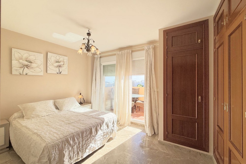 - WONDERFUL CORNER TOWNHOUSE WITH SEA VIEWS, LARGE GARDEN, SOLARIUM AND PRIVATE ELEVATOR, ESTEPONA Beautiful townhouse situated in a peaceful residential area of Estepona, close to supermarkets, shops, and an international school, just 200 metres from the beach and its charming promenade lined with beach bars, restaurants, and leisure areas. The marinas of Estepona and La Duquesa are both only a 5-minute drive away. This fantastic home is distributed over two floors plus a solarium. With its south-facing orientation, it enjoys natural light all day long. Upon entering, you are welcomed by a bright and spacious living room with large windows leading to a covered terrace and a private garden with stunning sea views. On the first floor, there are three bedrooms, one of them with an ensuite bathroom and access to a terrace from which you can reach the solarium and enjoy panoramic views across the entire coastline. The property includes a private elevator connecting all levels, as well as direct access to a private garage with space for two vehicles. Located within a well-maintained gated community offering two adult swimming pools, two children’s pools, landscaped gardens, and a paddle court, this lovely house is perfect both as a permanent residence and as an investment with excellent rental potential. A viewing is highly recommended!