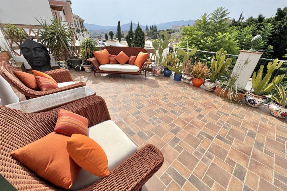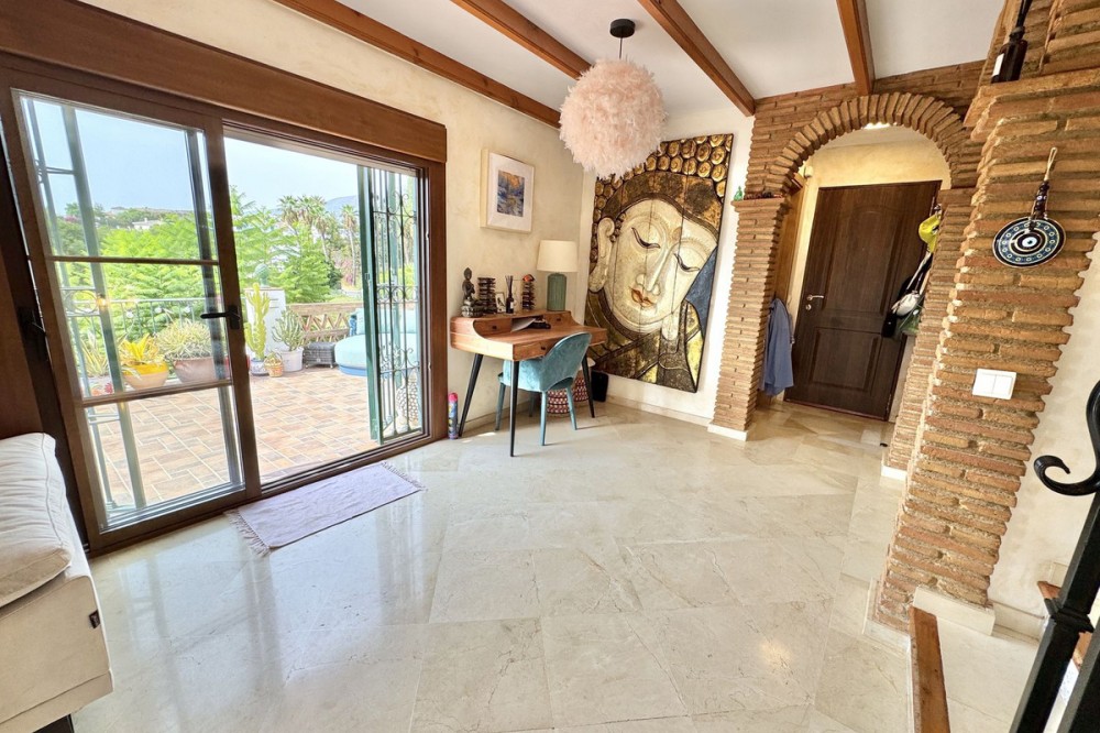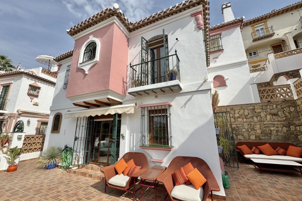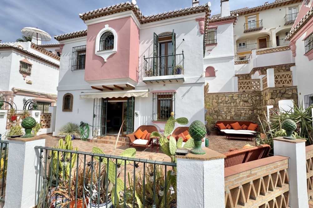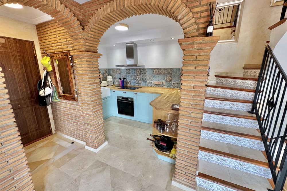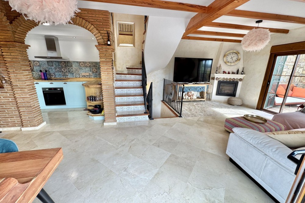 - Magnificent house / home for sale in a beautiful urbanisation full of culture, Andalucian character, lively atmosphere, 3 swimming pools and lovely gardens. This recently refurbished house features charming Spanish architecture and is built over two floors and an additional lower level housing a garage for up to 2 cars. PROPERTY: On the main floor there is a spacious open plan living room with a fireplace and 2 sets of patio doors leading out to a beautiful spacious patio garden / terrace with open views. Charming modern character kitchen with wood worktop. By the entrance door there is a Cloakroom W.C / wet room with shower. The first floor comprises two spacious double bedrooms (one with its own small balcony) and a further Shower room. DEVELOPMENT: Set in one of the most prestigious & characterful developments in the beautiful Mijas Golf area and only around 10 minute walk to fabulous restaurants and spa facilities in the spectacular "La Zambra" 5 star Spa resort / hotel. LOCATION: This beautifully refurbished character property for sale in Mijas Golf is ideally situated just a short 12 minute drive from the beaches of the Costa del Sol and the vibrant towns of La Cala de Mijas and Fuengirola. Known for its two championship golf courses, Los Lagos and Los Olivos. Mijas Golf offers far more than just elite golf. Local amenities, restaurants, supermarkets, and sports facilities are close by, and the area’s relaxed, residential feel makes it perfect for year-round living or an upscale holiday retreat. THE VENDOR HAS INFORMED US THAT: Community fees are: approx. € 138 per month (with early payment discount). IBI (Council Tax) is: approx € (awaiting) per year. BASURA (Rubbish Bill) is approx € 128 per year. Amazing deal / home, that will sell quickly, so don't miss out, call now to reserve or view.