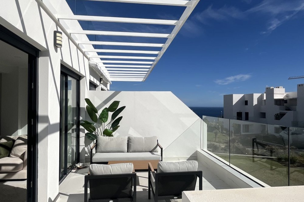 - Modern 2-Bed Apartment with great terrace on the first floor with Sea & Mountain Views – Azata Delmare, Estepona/ Casares Costa Bright and elegant 2-bedroom, 2-bathroom apartment located in block nr 5 of Azata Delmare. The property features a spacious open-plan living area, a large contemporary kitchen, and a generous private terrace with beautiful views of the Mediterranean Sea, Gibraltar and surrounding mountains. Key highlights: Large sunny terrace with panoramic views Modern open kitchen and bright living space 2 bedrooms, 2 bathrooms (master en-suite) open and spacious wardrobe Peaceful, well-maintained community with pool Close to beaches, golf, shops, restaurants. Well connected to Estepona town, port, San Luis Sabinillas, La Duquesa marina, Sotogrande. A perfect choice for a holiday home, full-time living, or investment on the Costa del Sol.