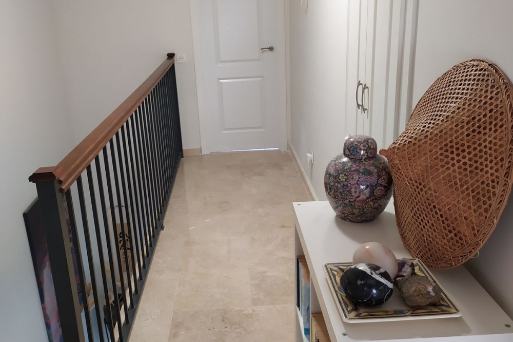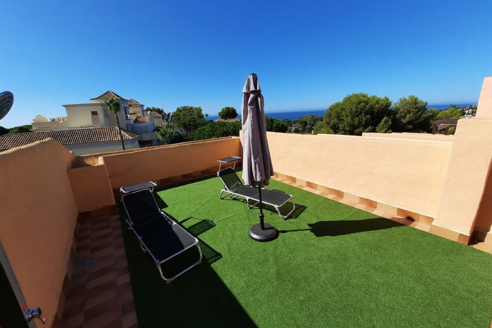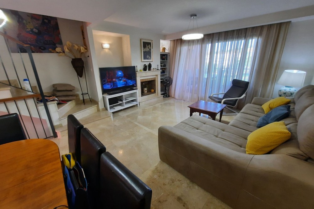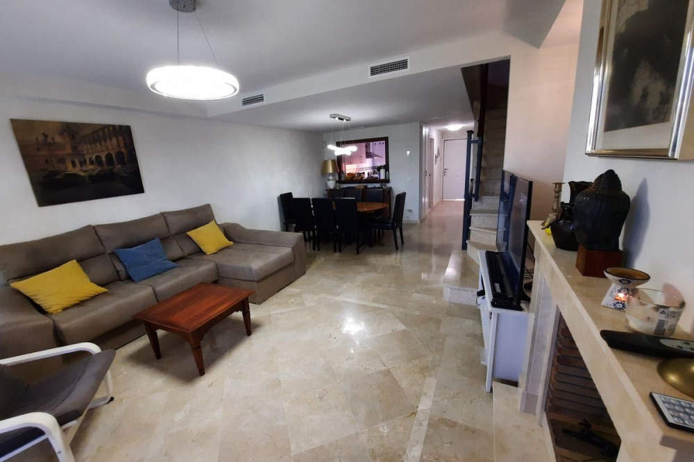 - Elegant 5-Bedroom Townhouse with Golf Views in Cabopino, Artola Alta. Discover your perfect home in one of Marbella’s most desirable areas. This beautifully presented 5-bedroom townhouse offers space, comfort, and charm; all set against the tranquil backdrop of Cabopino Golf Course. Step inside the spacious lounge, where natural light pours in and a cozy fireplace creates a warm, inviting atmosphere. The modern separate kitchen with a serving hatch is ideal for both family living and entertaining guests. A private covered terrace provides the perfect spot for morning coffee or evening dining with serene golf views. Upstairs, you’ll find two elegant double bedrooms, both with en-suite bathrooms. The master suite enjoys its own private terrace and direct access to a stunning rooftop solarium; perfect for sunbathing, barbecues, or simply soaking in the panoramic surroundings. The versatile basement level offers 2 additional single bedrooms with built-in wardrobes, and a luxurious bathroom. There is a 3rd room that can be used as a bedroom or games room. Finished to a high standard with cream marble floors, air conditioning throughout, double glazing, and fibre optic WiFi, this home blends classic Andalusian charm with modern comfort. Additional features include a private carport, security alarm system, and access to a beautifully maintained communal pool. Whether you’re seeking a permanent residence, a holiday escape, or a smart investment, this townhouse delivers exceptional value and lifestyle in one of the Costa del Sol’s most sought-after enclaves. Prime location in the sought-after Artola Alta area, directly overlooking Cabopino Golf and only a 12-minute walk (approx. 900 meters) to the beautiful Cabopino's Beach and the Cabopino Marina. This townhouse is ideal for families, golf lovers, or those seeking a high-end holiday home in one of Marbella's most tranquil and green areas, just steps from the beach. Private Garage – With direct access to the property. Peaceful Yet Connected – Quiet residential setting with easy access to the AP-7, international schools, public transport, and all amenities. Artola Alta Why choose the area? You have a winning combination: sea, golf, nature and comfort in a premium location. Perfect both for year-round living and exclusive holidays. Authentic ambience without the urbanistic excesses of other areas of the Costa del Sol. Cabopino Marina Very close to Artola Alta, with approximately 169 moorings and a pleasant area with bars, restaurants and nautical activities. It offers a quiet and pleasant atmosphere, ideal both during the day and at sunset. Cabopino Golf 18-hole golf club designed by Juan Ligués Creus, combining par-3, par-4 and par-5 with lakes, curious pine trees and spectacular views of the Mediterranean Sea. The third hole is particularly celebrated: a par-4 from an elevated tee at a height of 80 m, protected by bunkers, with breathtaking views. Located in Artola Alta, just a few minutes' walk from the beach and the port, it offers a well-kept environment and a welcoming clubhouse.