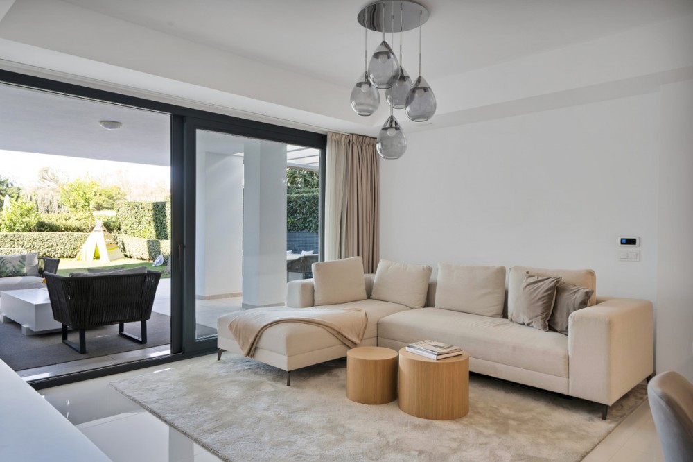 - Elegant 3-Bedroom Ground Floor Apartment | Las Terrazas de Atalaya Experience contemporary Mediterranean living in this stunning 3-bedroom ground floor apartment, perfectly situated in the prestigious Las Terrazas de Atalaya complex — just steps from Atalaya Golf Course and the main road to Benahavís. Built in 2018, this modern home seamlessly combines sleek design, comfort, and functionality. The open-plan living and dining area flows effortlessly into a fully equipped, stylish kitchen, while sliding glass doors open onto a spacious covered terrace of 63 m2, ideal for year-round indoor/outdoor living. From the terrace, step into a private garden of 74 m2 that leads directly to beautifully landscaped communal areas and the swimming pool — perfect for relaxation or entertaining guests. The master suite features direct terrace access, fitted wardrobes, and a luxurious en-suite bathroom. Two additional double bedrooms, a contemporary family bathroom, and a separate utility room complete the layout, offering ample space for family or visitors. Residents of Las Terrazas de Atalaya enjoy exclusive amenities, including a paddle tennis court, outdoor gym, and tranquil green spaces. The property also comes with a private underground parking space and a storage unit for added convenience. Prime Location: •Adjacent to Atalaya Golf & Country Club •Close to Benahavís, Puerto Banús, and Estepona •A short drive to beaches, restaurants, and international schools A perfect combination of modern elegance, lifestyle, and leisure — ideal as a permanent home or a Costa del Sol investment. Contact us today for full details or to arrange a private viewing. The abbreviated information document is available to you. Expenses: Taxes (ITP or VAT+AJD) + Notarial and registration expenses. NG1.