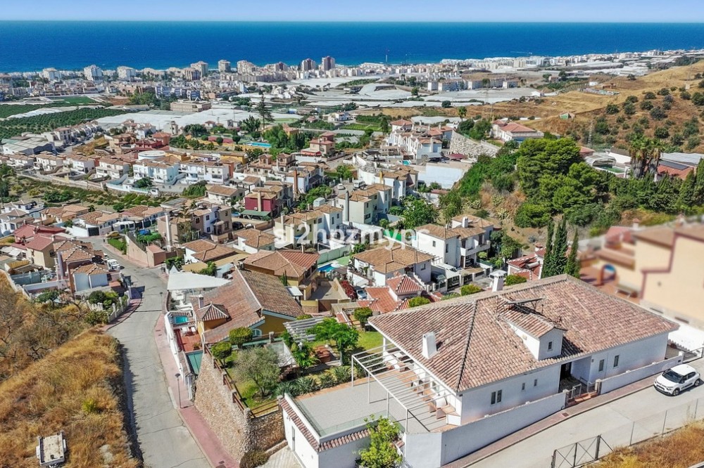 - Charming villa with panoramic sea views Welcome to this fantastic villa with outstanding views of both the sea and Torrox Costa. The property's elevated position means that there are no buildings obstructing the view giving clear and unbroken sight-lines of the landscape and the Mediterranean Sea. The plot offers a large, lush garden that surrounds the house, with several patios and a covered terrace where you can enjoy both the sun and shade. The garden also has a plunge pool and jacuzzi, perfect for warm days and relaxing evenings. The home has a generous living room with a large fireplace – a natural gathering point for family and friends. The large windows let in plenty of daylight, creating a bright and comfortable indoor environment. There are three spacious bedrooms, all with air conditioning, with the master bedroom offering its own en-suite bathroom. There are two additional communal bathroom, making the house comfortable for guests as well. The location is quiet and private, yet close to Torrox Pueblo – a picturesque village with restaurants, shops and local atmosphere. A family home with generous proportions – contact us today for a viewing!