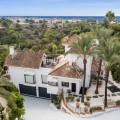 - Modern Eco-Friendly Luxury Villa in Las Lomas del Marbella Club Nestled in one of Marbella’s most prestigious locations, this fully renovated contemporary villa combines luxury, sustainability, and cutting-edge technology. Situated on a quiet cul-de-sac in the exclusive Las Lomas del Marbella Club, the property offers privacy, panoramic sea views, and effortless modern living. Step inside and you’re greeted by light-filled spaces, elegant design, and natural materials that create a sense of calm sophistication. The open-plan living area flows seamlessly to the terrace and infinity pool, framed by a drought-resistant garden designed for beauty and ease. This is a smart, energy-efficient home that truly takes care of itself — and of you. Solar panels power the property, storing enough energy to keep it running day and night. A solar thermal system heats the water, while intelligent climate control keeps every room perfectly balanced year-round. The heart of the home — a Bulthaup kitchen fitted with Gaggenau appliances — reflects understated perfection. Every element, from the handcrafted Roman Clavero front door to the designer lighting, has been selected with precision and purpose. Security, comfort, and connectivity are seamlessly integrated. From the SONOS sound system and app-controlled features to the private shared road serving just three homes, this property is both peaceful and future-ready. Key Features: • 4 Bedrooms | 4 Bathrooms • Plot Size: 1,154 m² • Built Area: 622.58 m² • (Ground floor: 195 m² | First floor: 68 m² | Basement: 237 m² | Terraces: 121.5 m² total) • Full Renovation: Completed 2023–2024 • Year Built: 2004 | First Occupation License: July 2005 Sustainability & Energy Efficiency: • This villa is energy self-sufficient, designed to operate sustainably while maintaining the highest comfort standards. Solar Power System: • Equipped with a SolarEdge 10 KW inverter, 28 SunPower solar panels (410 Wp each), and SolarEdge optimizers for every panel. • The system produces approximately 70 kWh per day—double the household’s daily energy needs—storing excess energy in a 14 kWh SolarEdge battery system. Solar Thermal Hot Water System: • Daikin Solar Thermal installation ensures eco-friendly hot water production. Daikin Climate Control: • Integrated Airzone system for individual room heating and cooling, controllable via AirzoneCloud App. Water Systems: • Advanced purification, pressure, and backup storage with two 1,000L tanks. Interior Highlights - Every detail reflects modern sophistication and premium European craftsmanship. • Kitchen: Bulthaup System b3 with Gaggenau appliances, Miele dishwasher, Bora Professional induction cooktop, and Quooker COMBI+ system (7L instant hot water tank). • Windows: A++ UV-coated glazing in Cortizo aluminum frames for maximum efficiency and low maintenance. • Fireplace: Rocal Arc 50V with heat recovery system. • Finishes: Painted with Farrow & Ball interior colors for a refined aesthetic. • Lighting: Designer LED lighting throughout, featuring brands such as Luce Plan, DeltaLight, Lumina, Modular, Occhio, Vibia, Eichholtz, and Focus-Lighting (outdoor). Outdoor Living: • Infinity Pool: Overlooks the Mediterranean and blends seamlessly into the modern, drought-resistant garden. • Electric Mosquito Screens: Fully enclose the ground-floor terrace for year-round enjoyment. • Private Shared Road: Only three properties share access, enhancing both privacy and security. Technology & Comfort: • Smart Systems: Solar, thermal, security, and climate systems all connected to dedicated apps. • Security: Target Alarm system with 7 cameras (app-controlled). • Sound: Full-house SONOS system (including garage and basement). • Connectivity: UTP cabling in every room. Additional Features: • Pet washing station in the utility room, Daikin installations, and designer ceiling fans. Summary: This modern, eco-conscious family home in Marbella’s Golden Mile offers a perfect balance of sustainability, luxury, and smart technology. Combining elegant design with European quality craftsmanship, it’s a turnkey residence for those seeking a future-ready Mediterranean lifestyle.