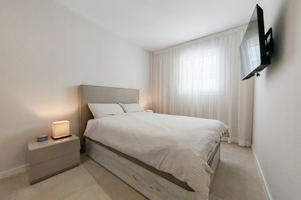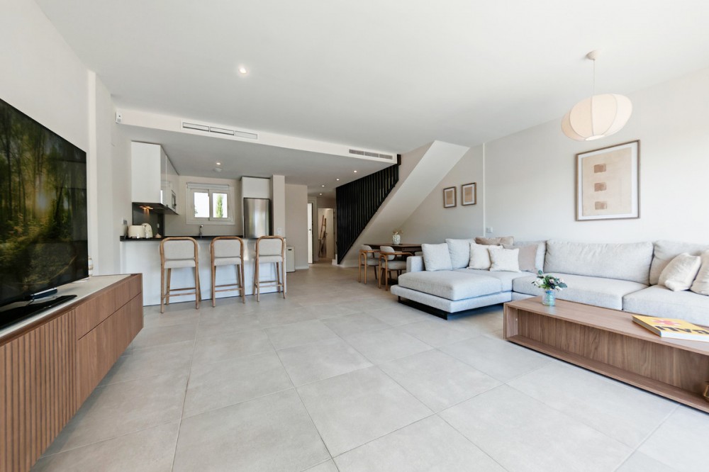 - Town House for sale in , Mijas Costa with 4 bedrooms, 2 bathrooms, 1 on suite bathroom, 1 toilet and with orientation south, with communal swimming pool, private garage and private garden. Regarding property dimensions, it has 150 m² built, 119 m² interior and 22 m² terrace. Has the following facilities transport near, air conditioning, fully fitted kitchen, jacuzzi, sauna, guest room, storage room, gym, alarm, solarium, security entrance, double glazing, video entrance, brand new, security service 24h, guest toilet, living room, study room, sea view, heated pool, automatic irrigation system, security shutters, smart home system, dolby stereo surround system, laundry room, internet - wi-fi, covered terrace, 24h service, electric blinds, fitted wardrobes, gated community, garden view, underfloor heating (bathrooms), underfloor heating (partial), close to children playground, close to sea / beach, close to golf, uncovered terrace, glass doors, balcony, optional furniture, spa, wheelchair-accessible, excellent condition, ceiling cooling system, close to shops, close to town, close to schools, surveillance cameras, office room and pets allowed.